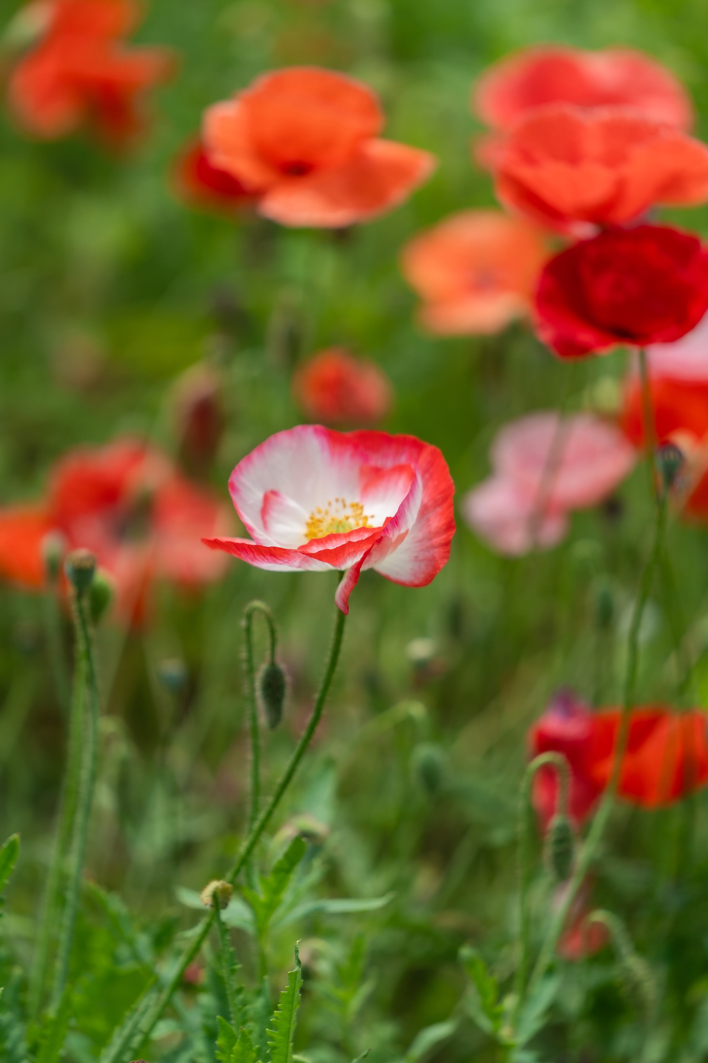 真っ赤に咲くポピーの中で仲良く手を繋ぐ姿が素敵ですね!