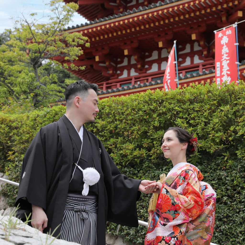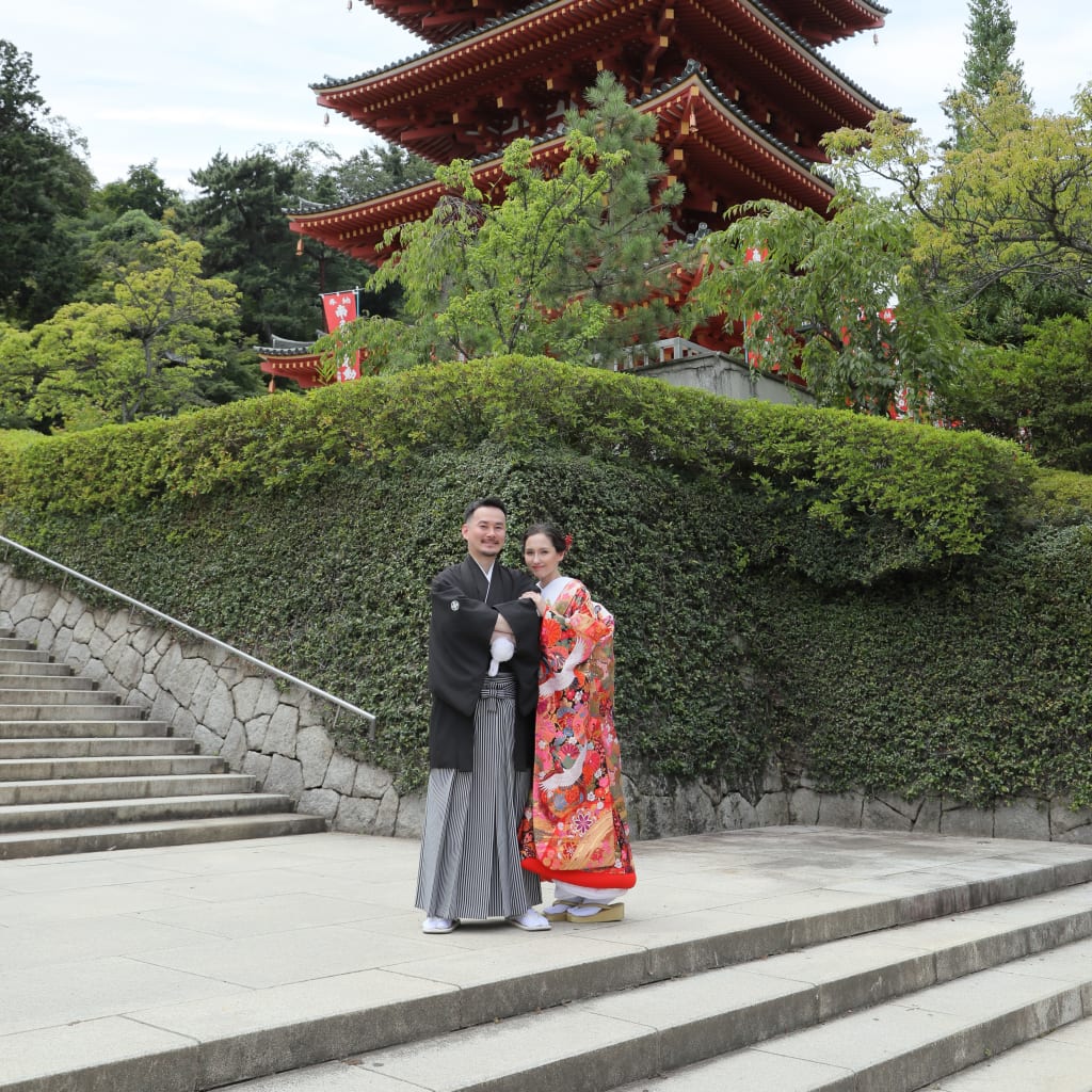 建物の前に立つお二人を後ろから撮ってみました!話の雰囲気がたくさん感じられますね!