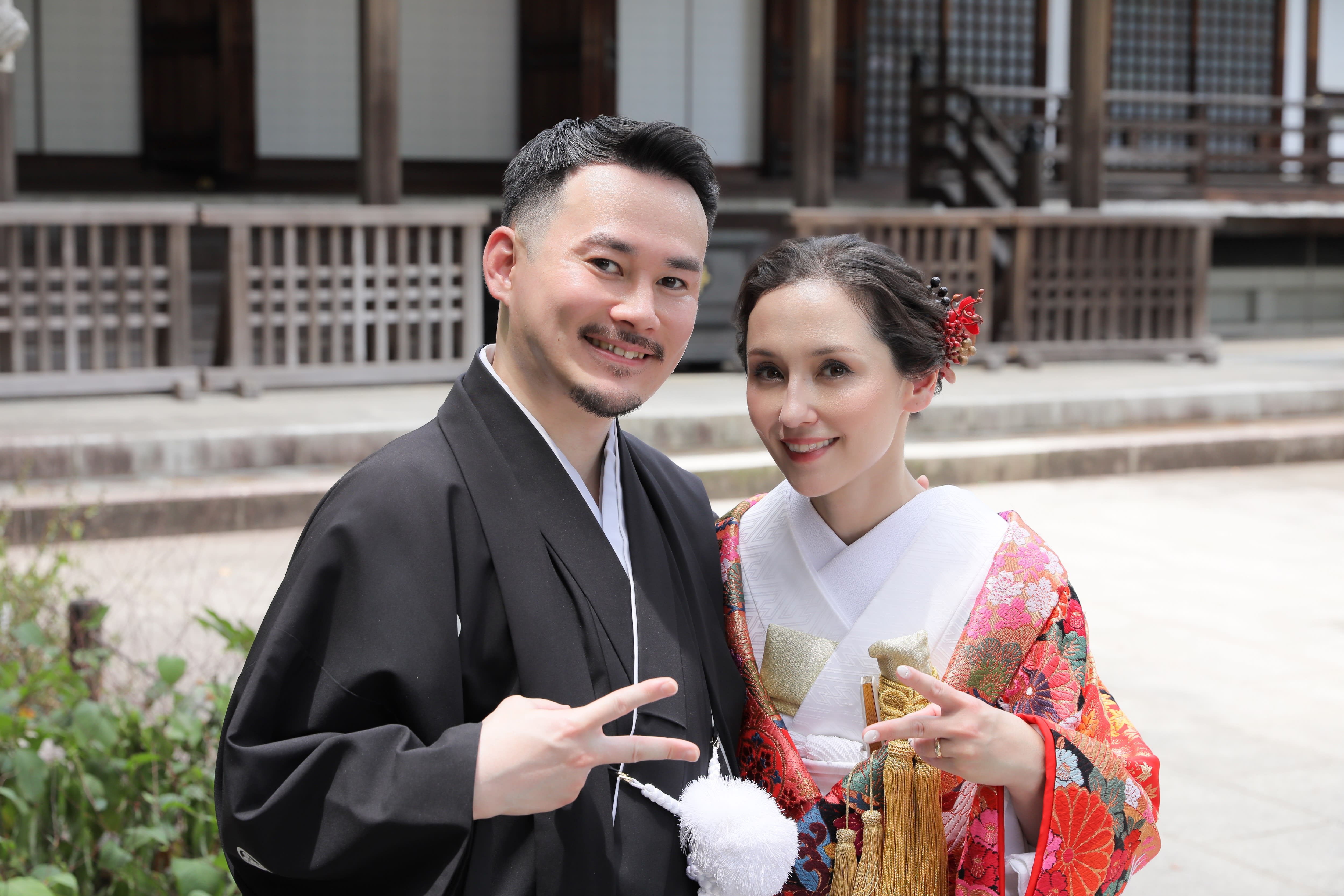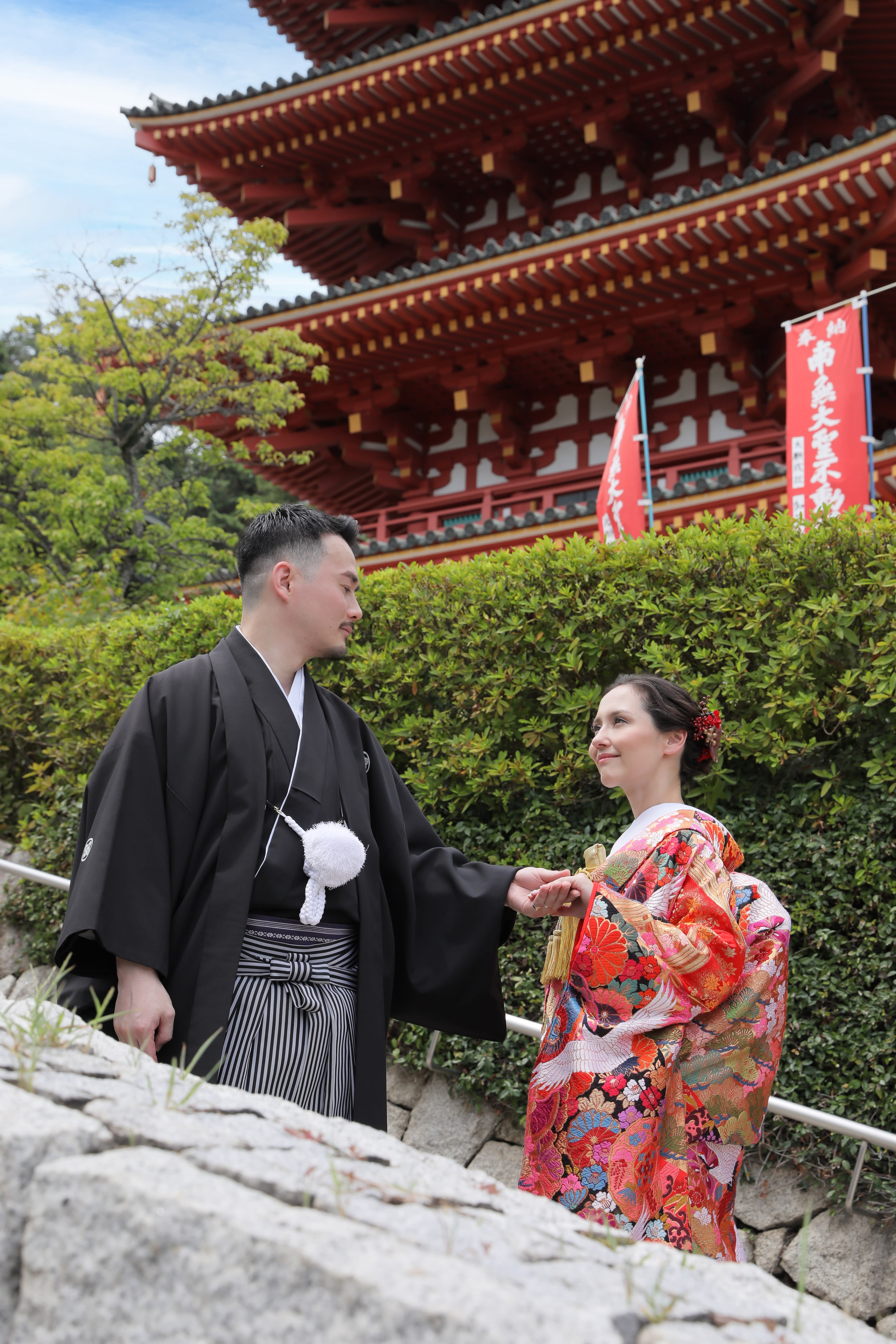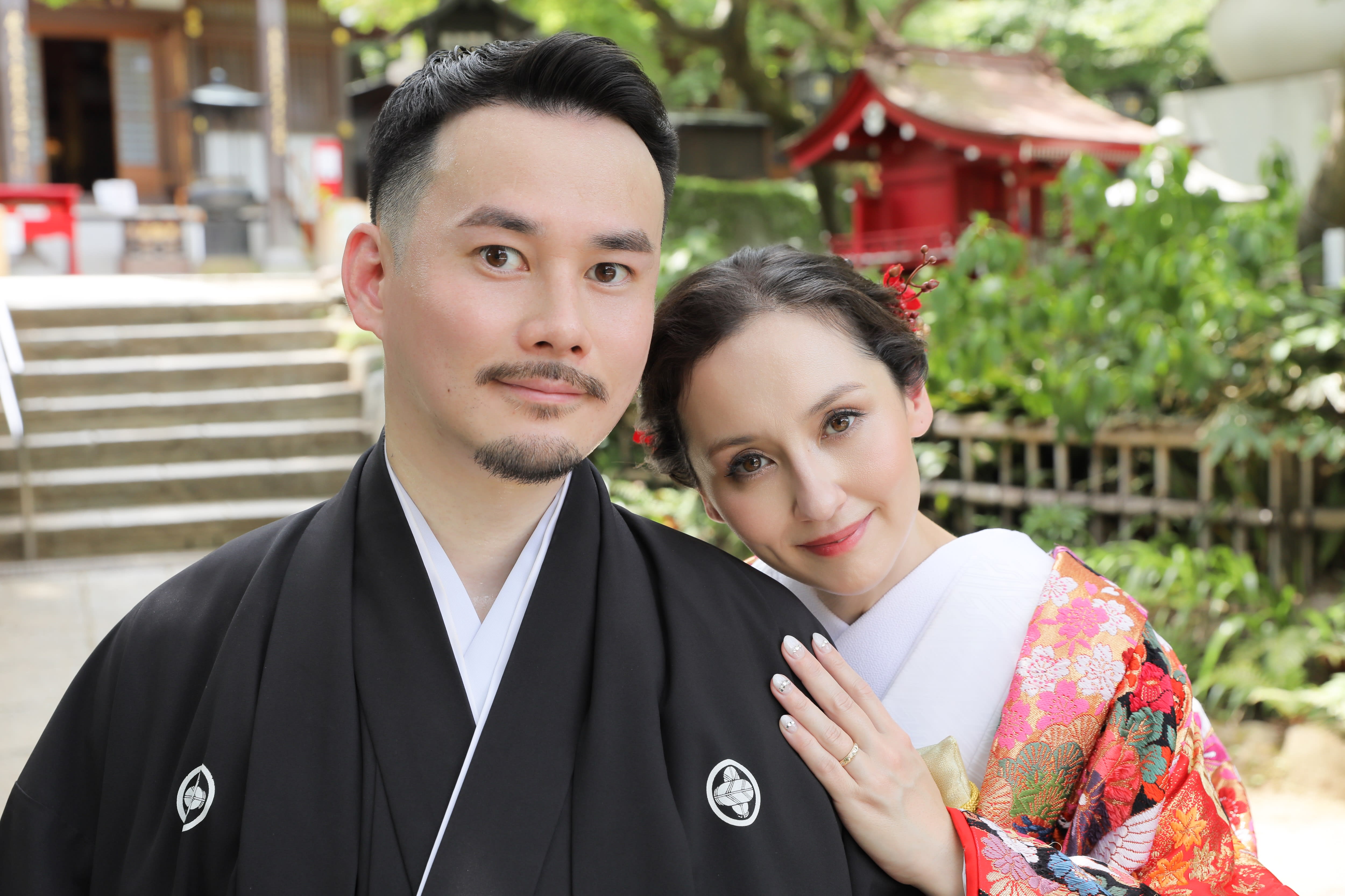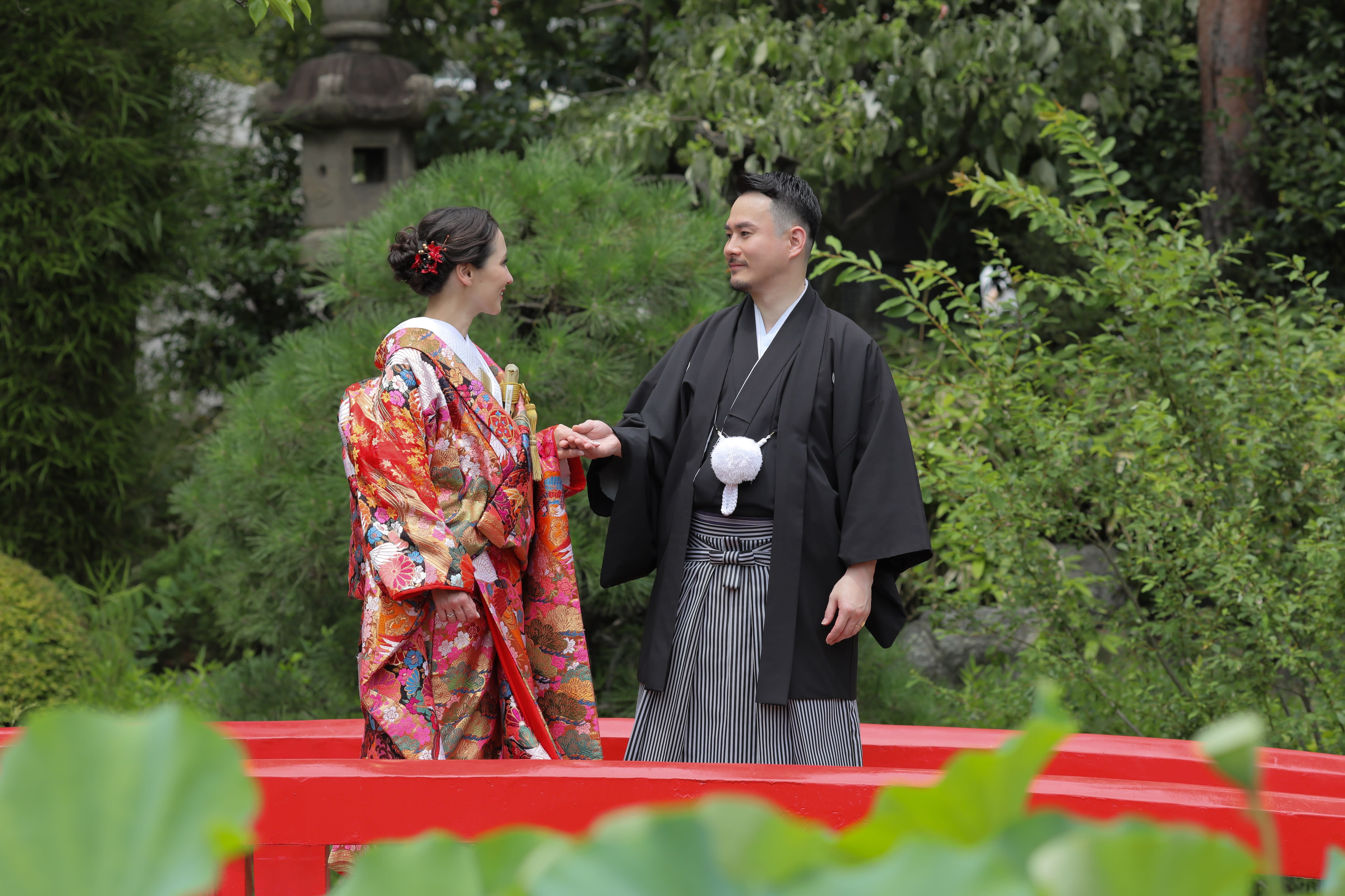 お着物に身を包んだお二人!緑と赤の組み合わせがgoodです!