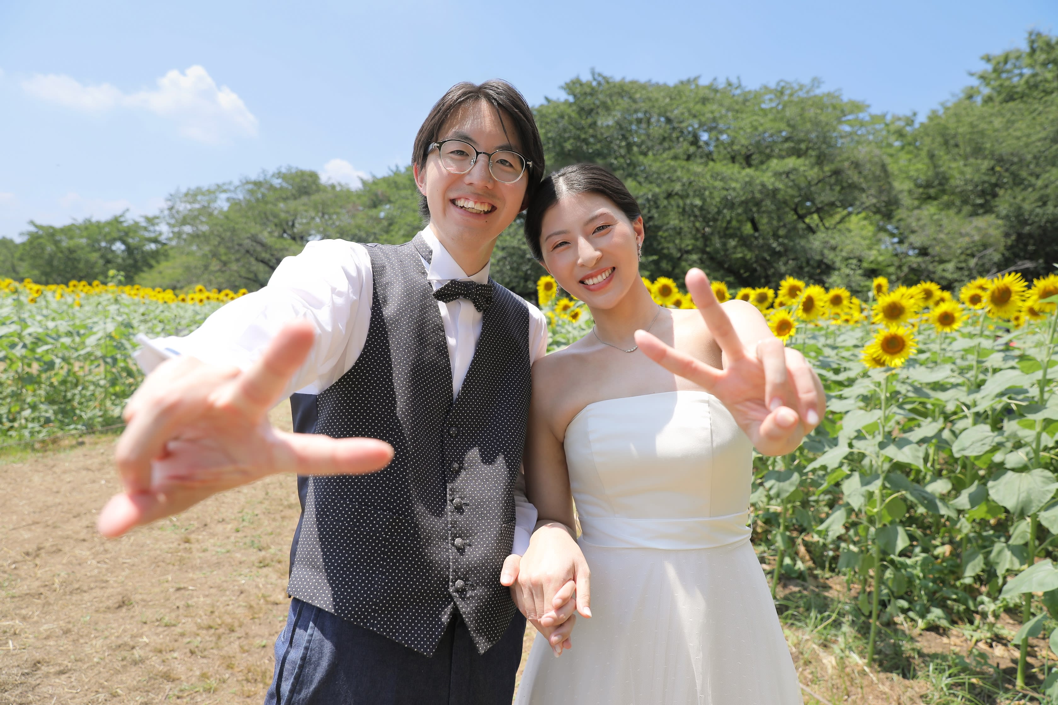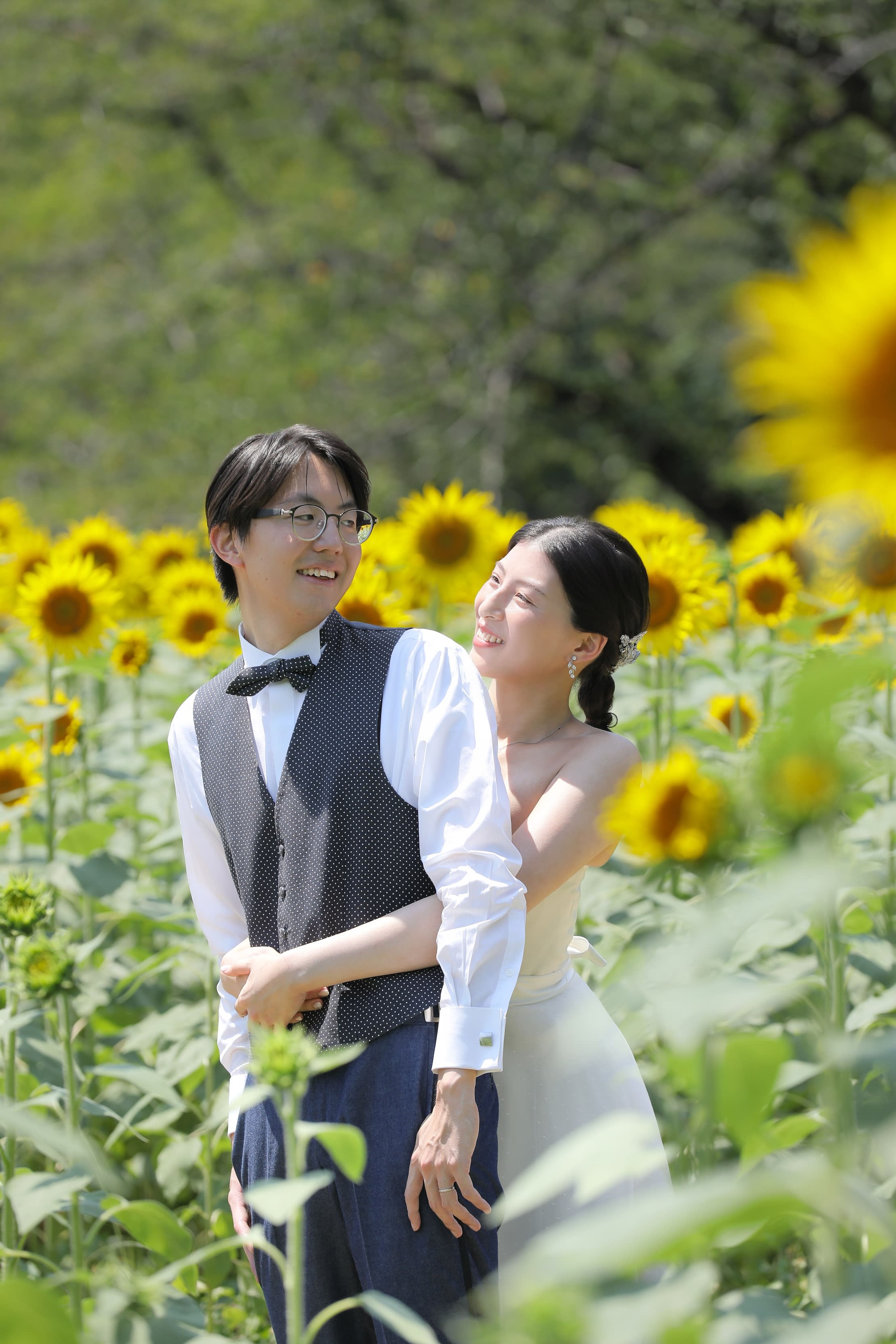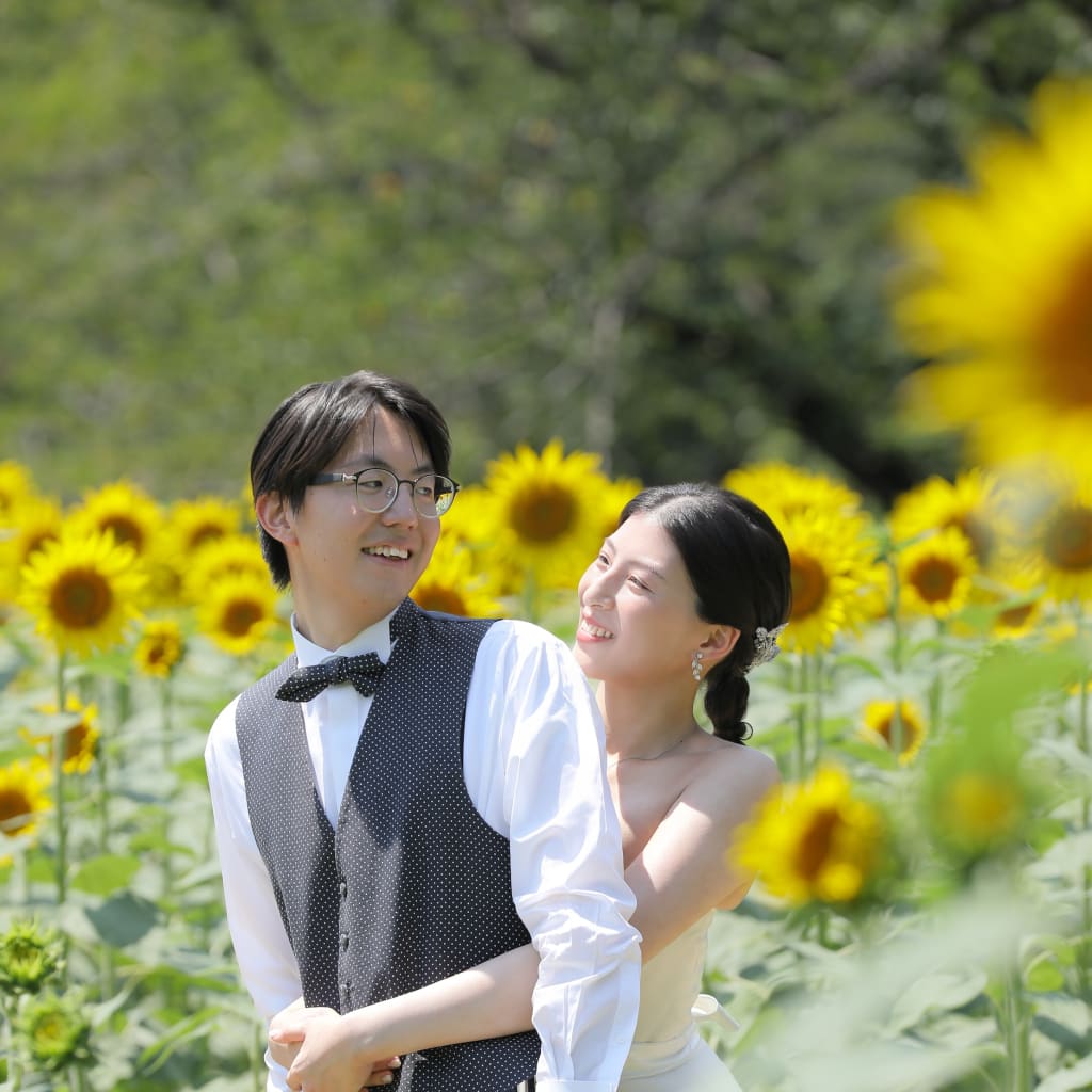 私たちの背と同じくらいまで成長したひまわり達に囲まれて二人だけの空間♡