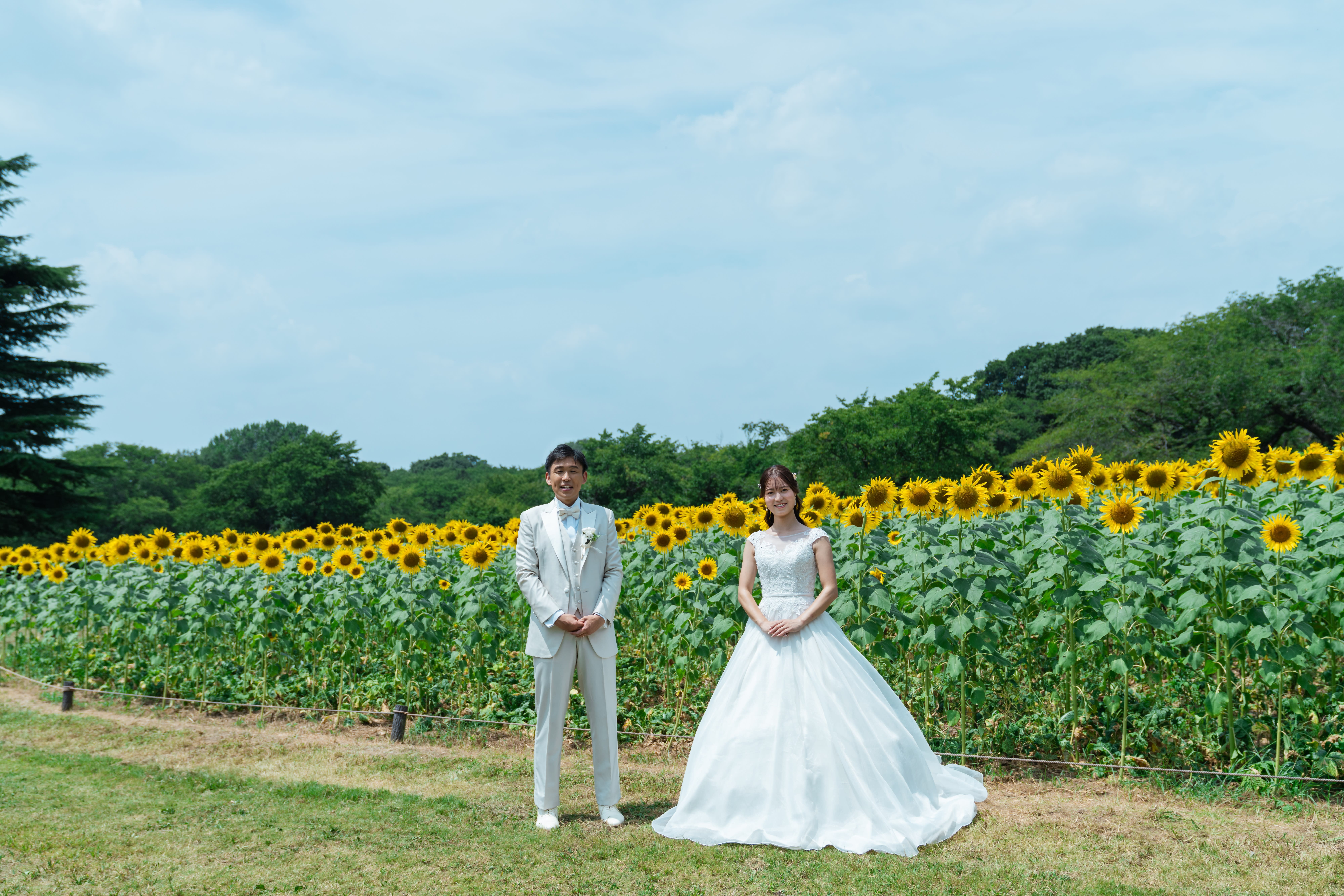 ひまわり畑をお散歩中の2人をパシャリ!優しく見つめ合う姿から仲の良さが滲み出ていますね!