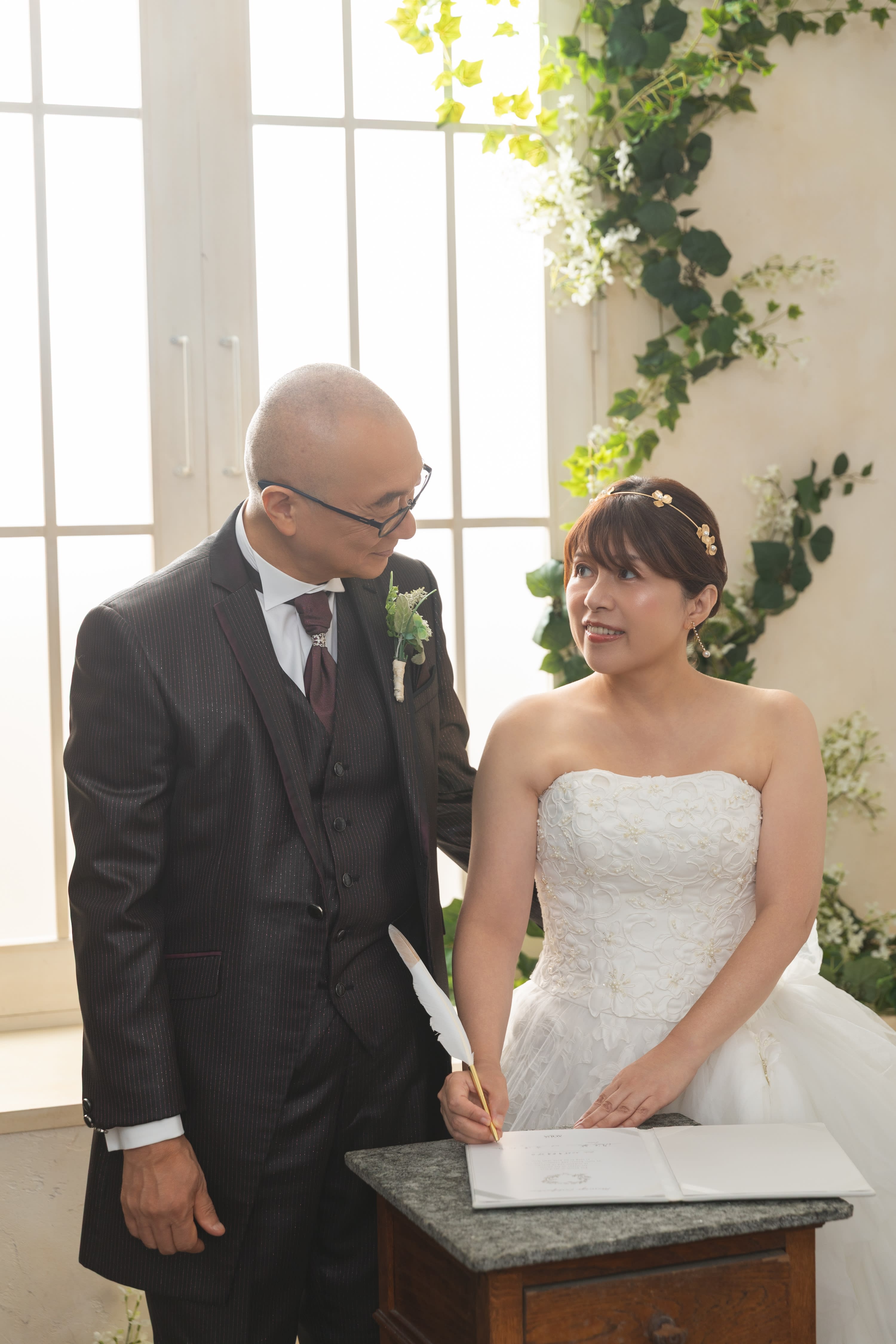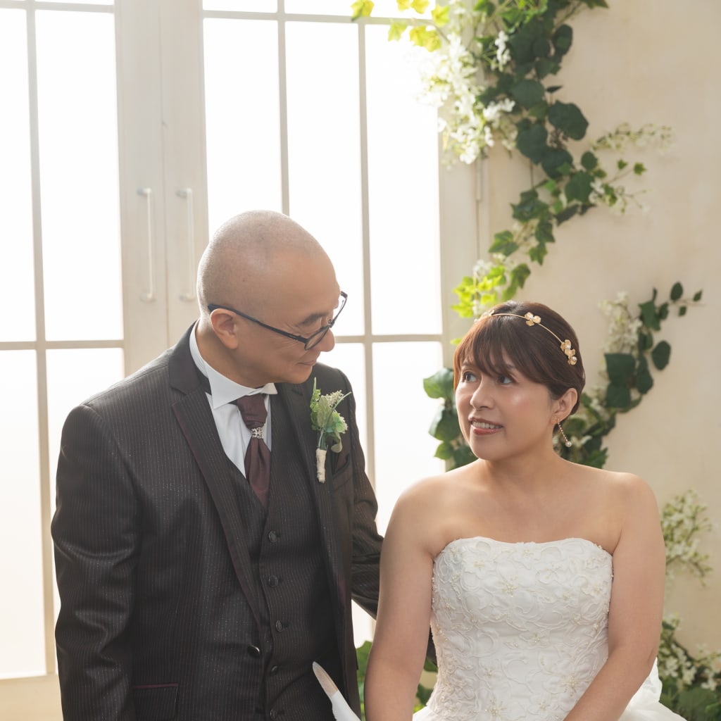 ボタニカルの窓の前に腰掛けて遠くを眺めるお二人!視線の先には何があるかは二人だけの秘密です♡