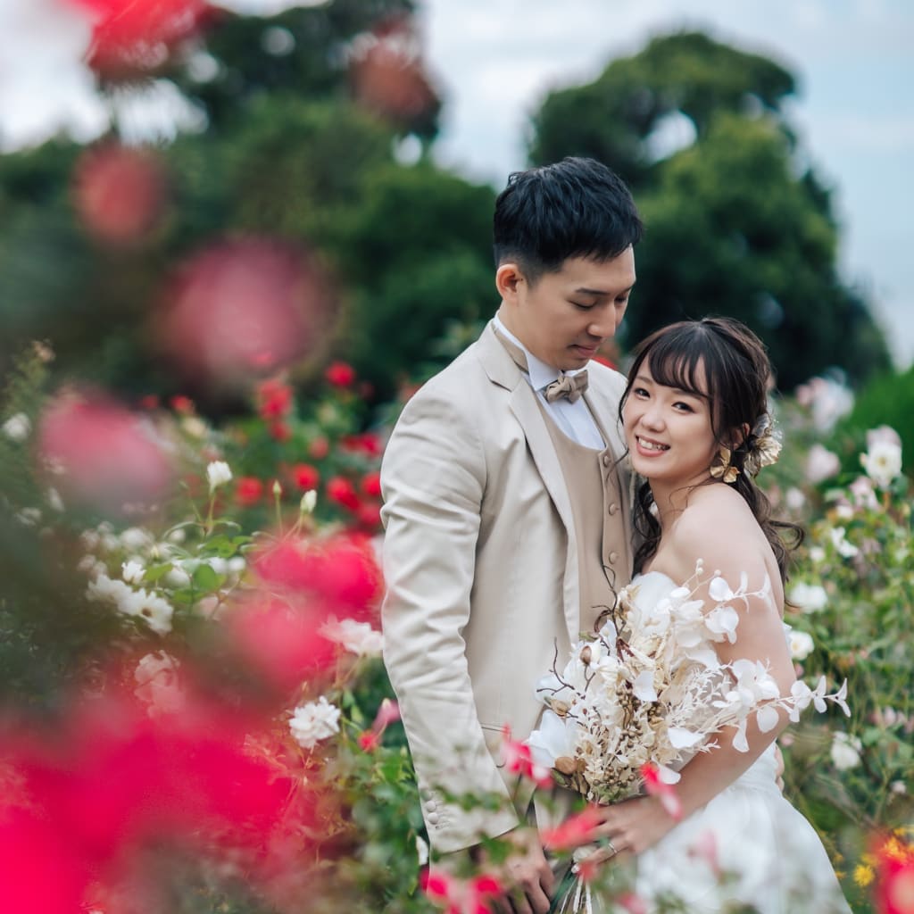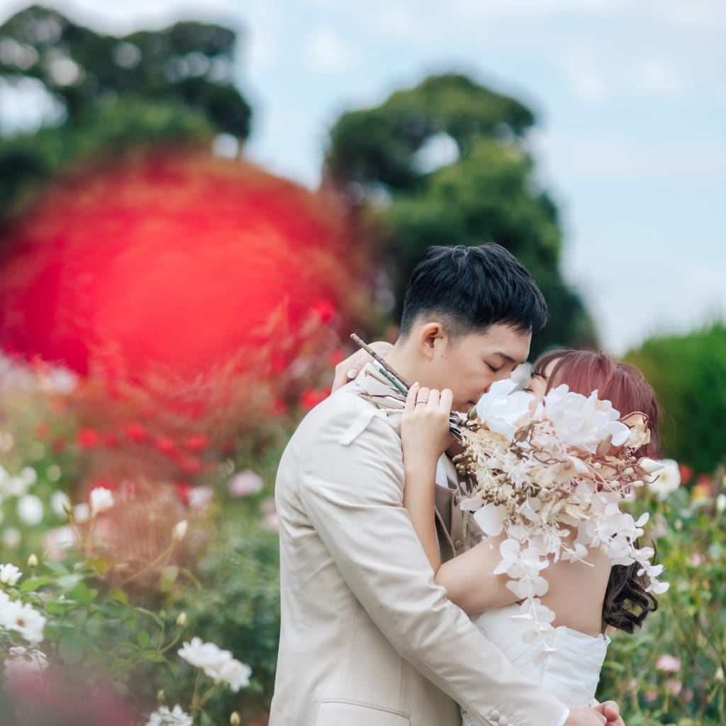 二人で撮影するバラもドラマチックで素敵な1シーンに。