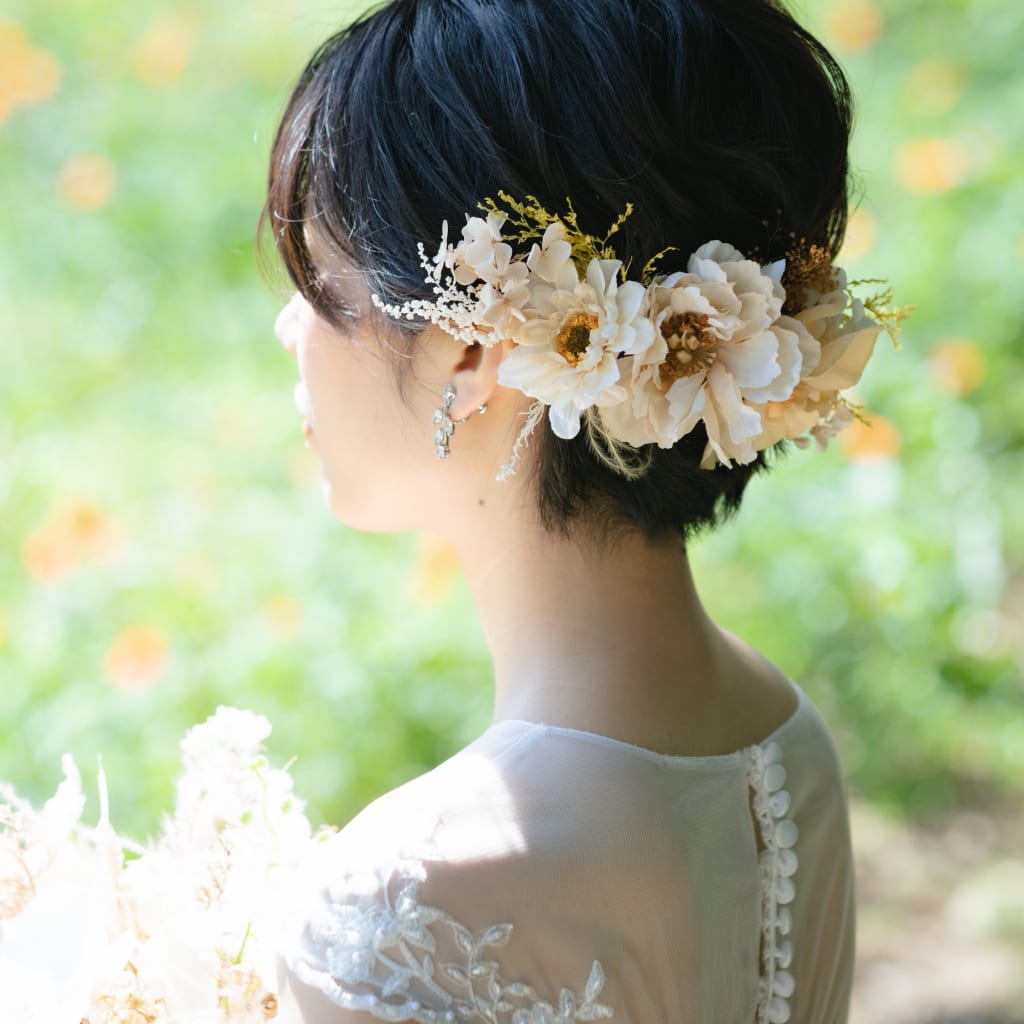 ご新婦様はショートヘアでしたがこんなにかわいくアレンジをしておりました!ショートヘアなのでよりイヤリングも映えますね✨