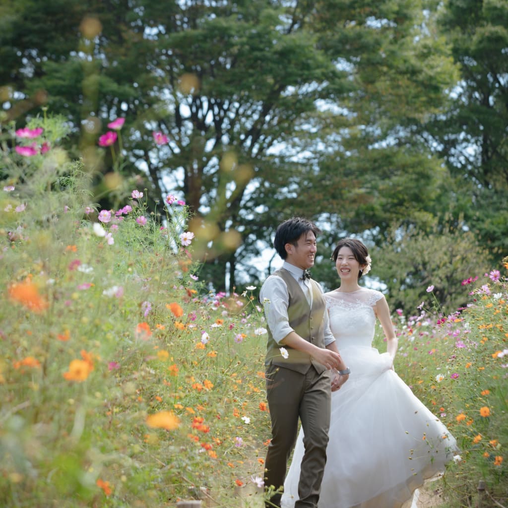 手を取り合ってお散歩しているような空気感で撮影をおこないました!お二人とも優しそうな表情がgoodです◎