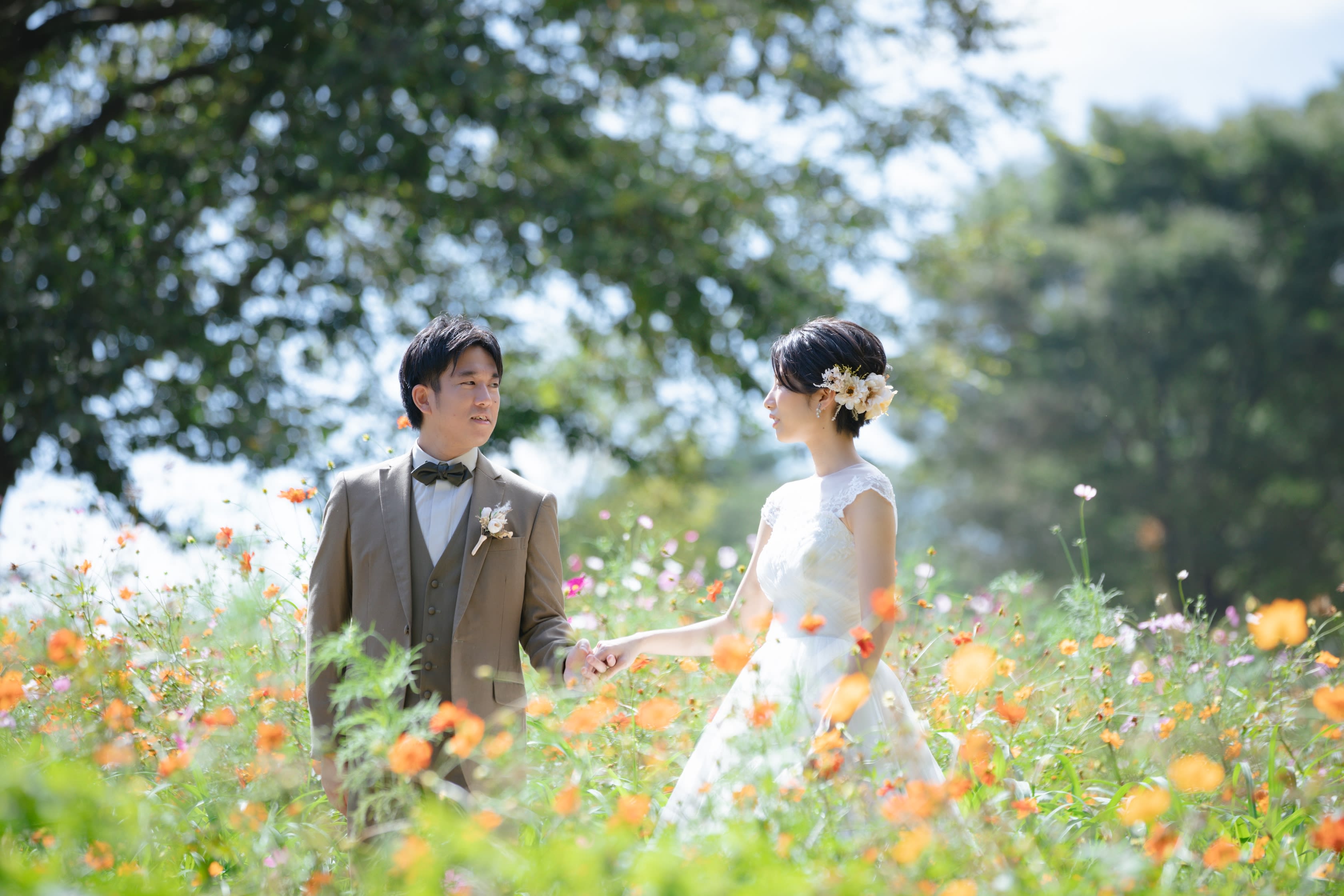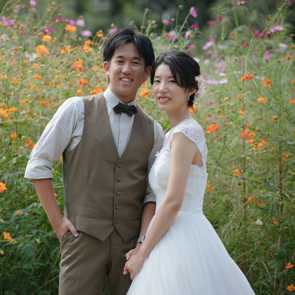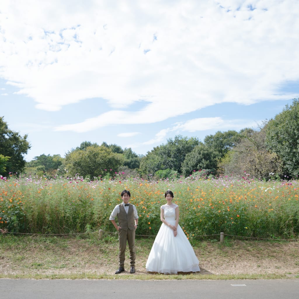 少ししゃがむとお二人と同じ位置にコスモスが写ってきます!ニコニコの笑顔がとってもよかったです◎