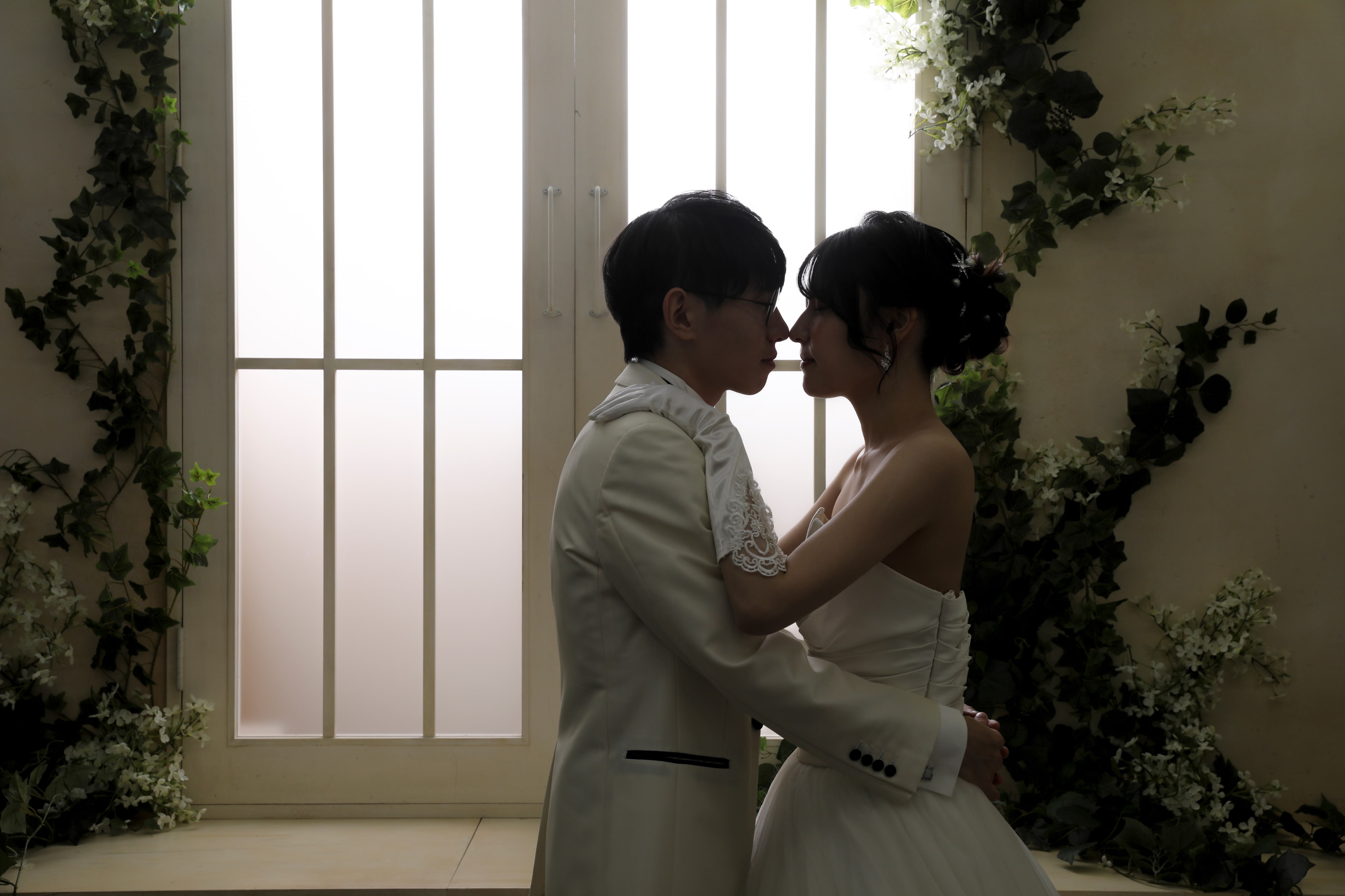 ふわふわチュールに囲まれて寄り添うお二人!爽やかな印象の中にお二人の甘い空気が漂っています♡