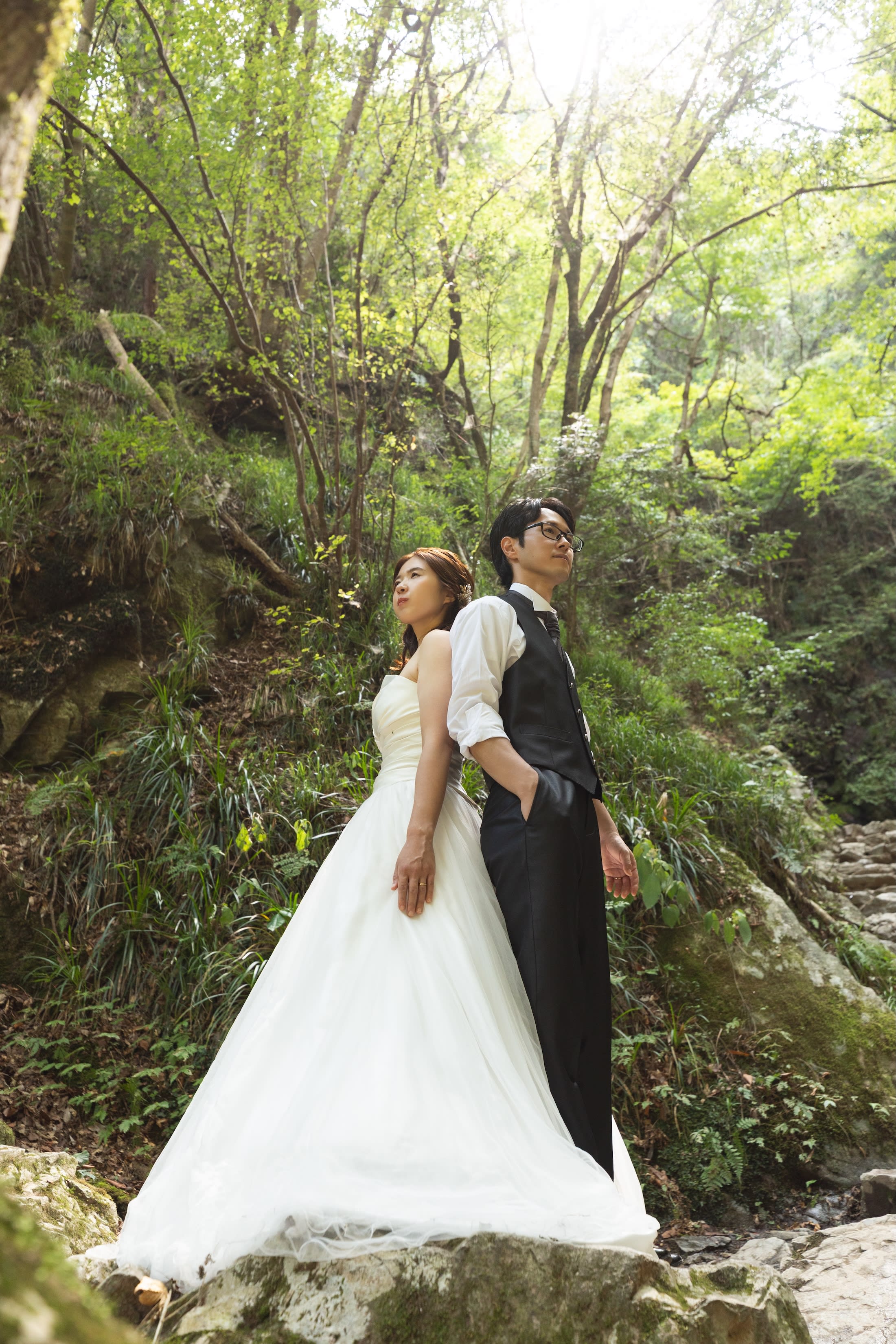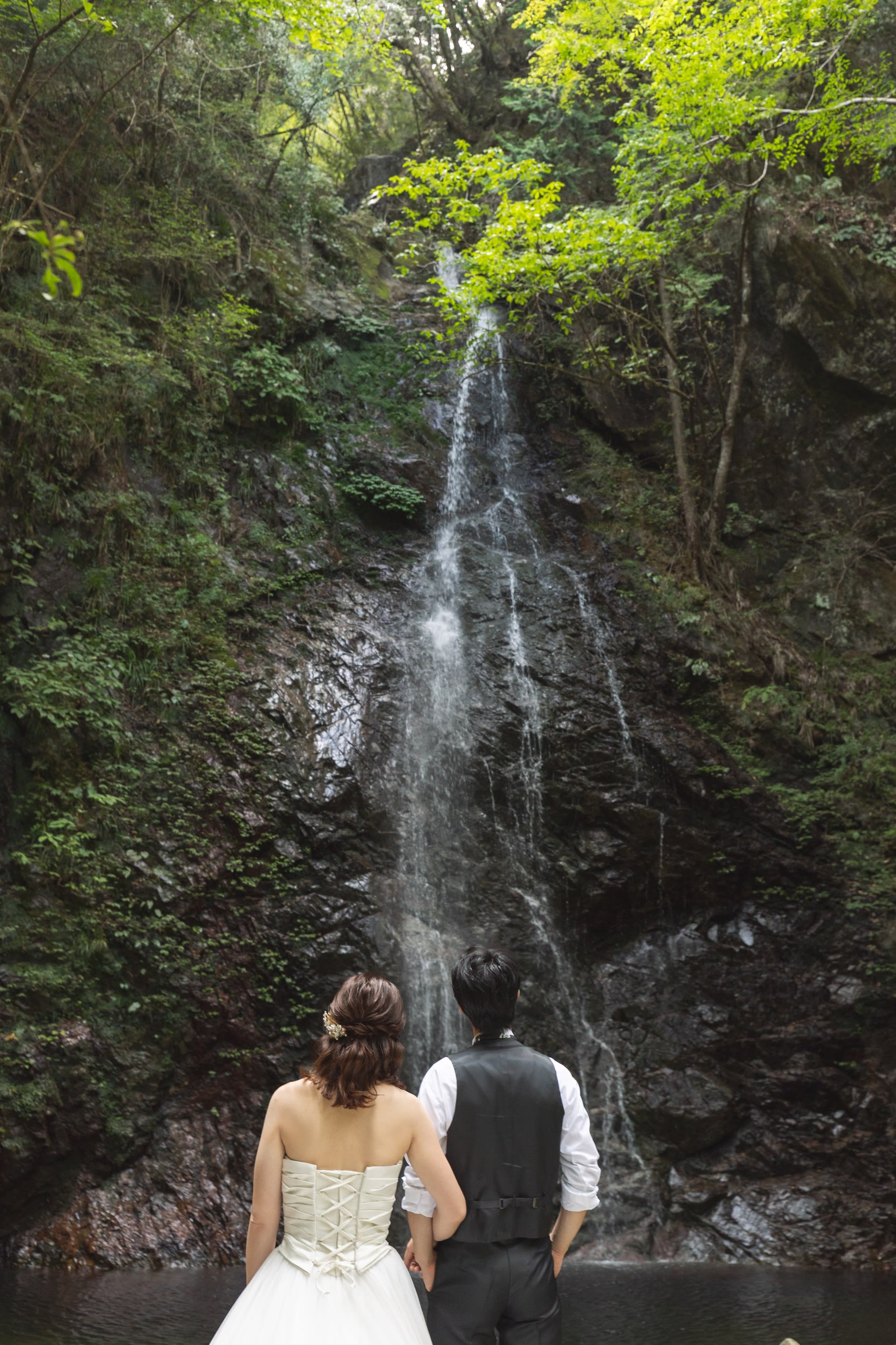 こちらは滝の横にある岩の階段。 運動靴でも登るのが大変な場所なのですが、 頑張って登ってくださったおかげで迫力ある1枚が撮れました◎