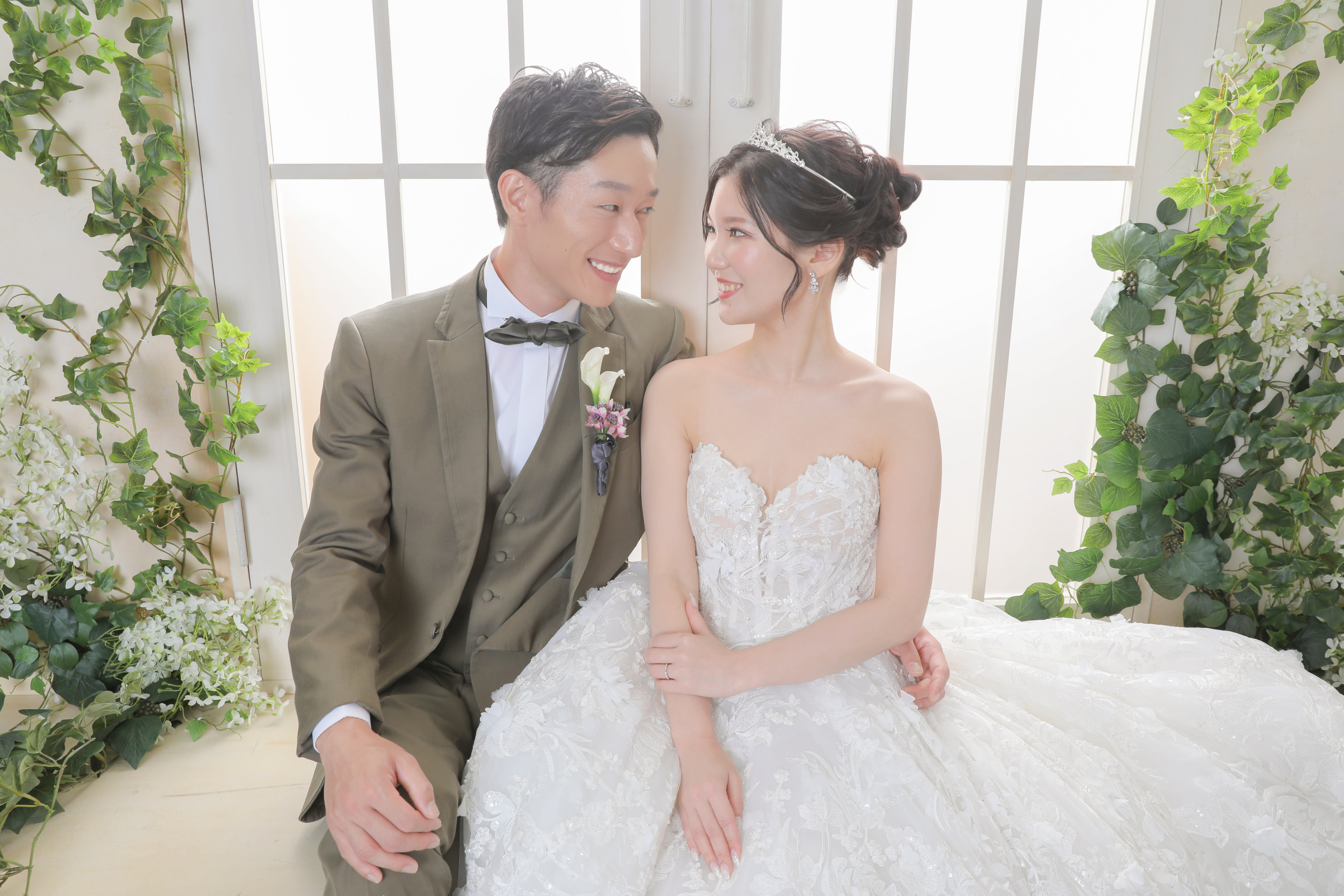 緑の葉っぱ越しから、素敵なご新婦様の笑顔が見れました!