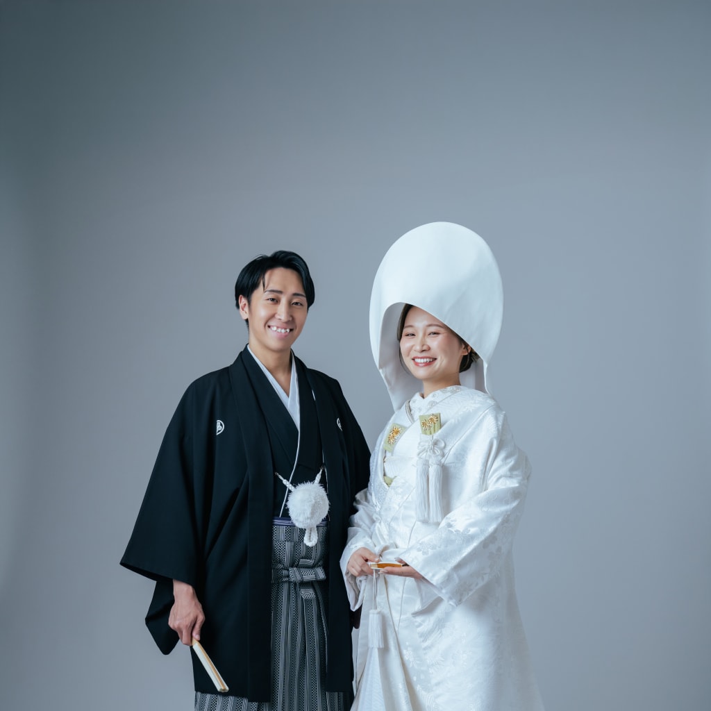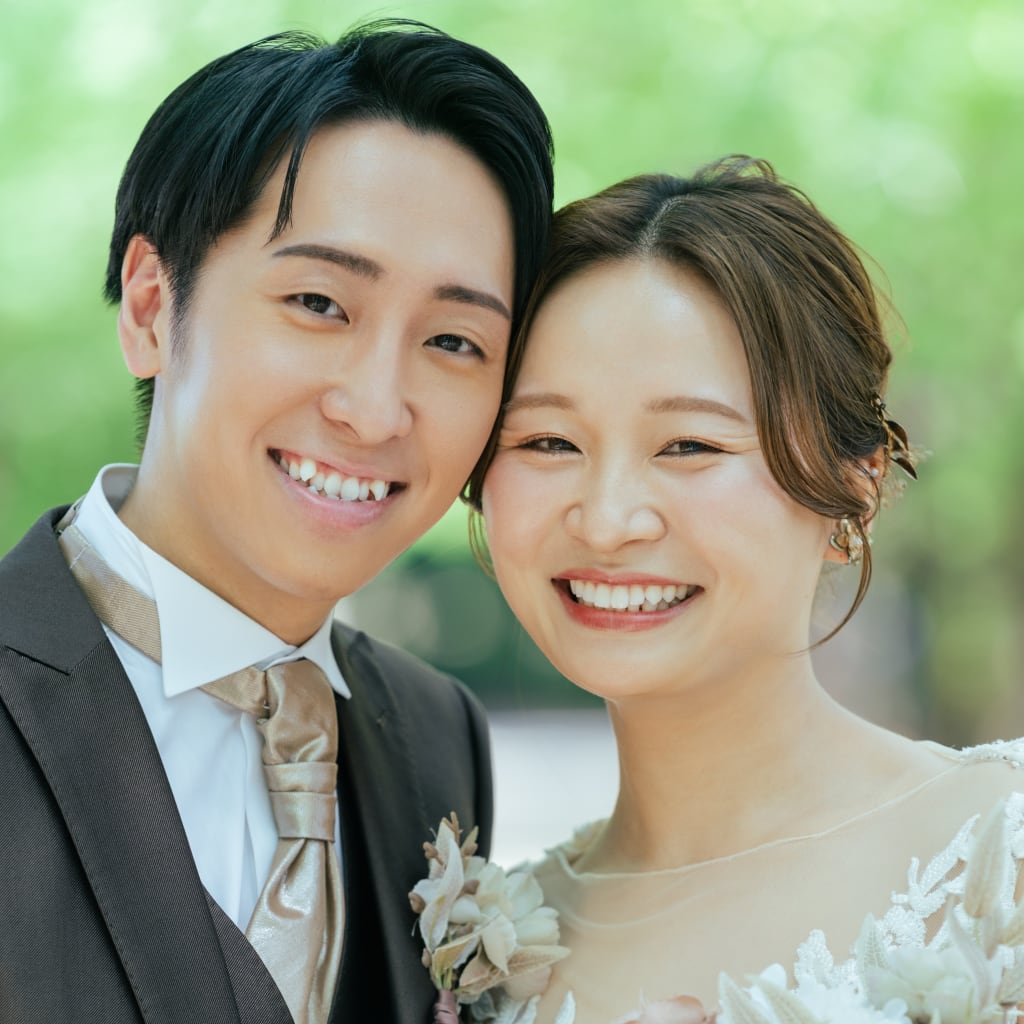 後ろからギュッと包み込む新郎様!お二人の幸せそうな表情に注目です!