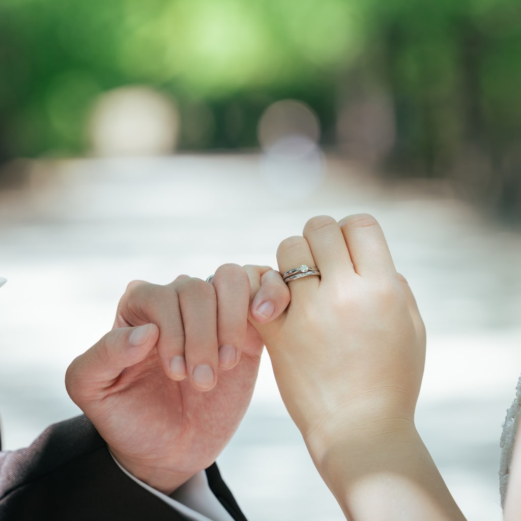 手を繋いで歩くお二人!新郎様のお顔を笑顔で覗き込む新婦様が可愛らしいですね!