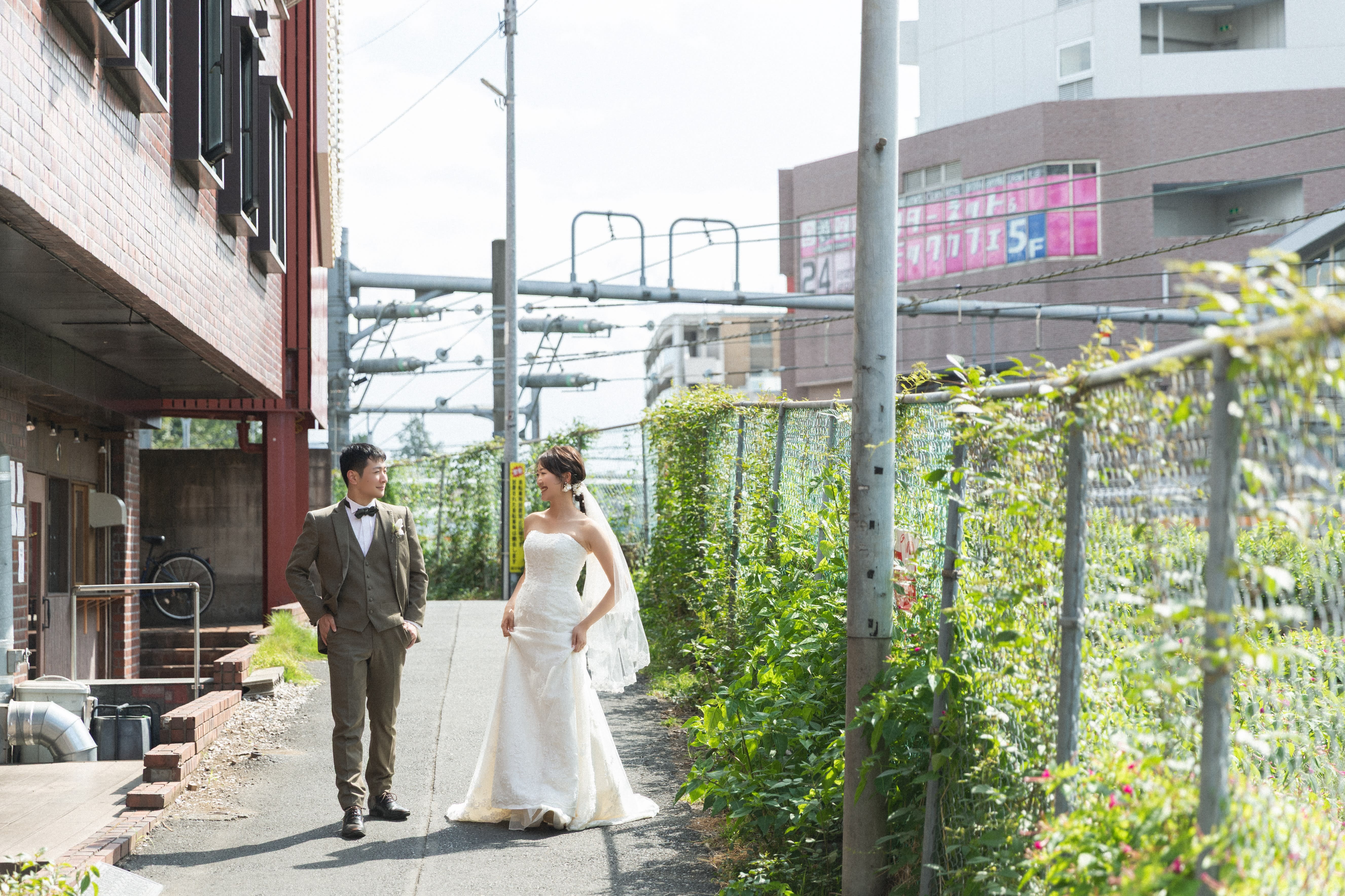白線の上を慎重に渡るお二人!ひょっこりお顔を見せる新郎様でした!