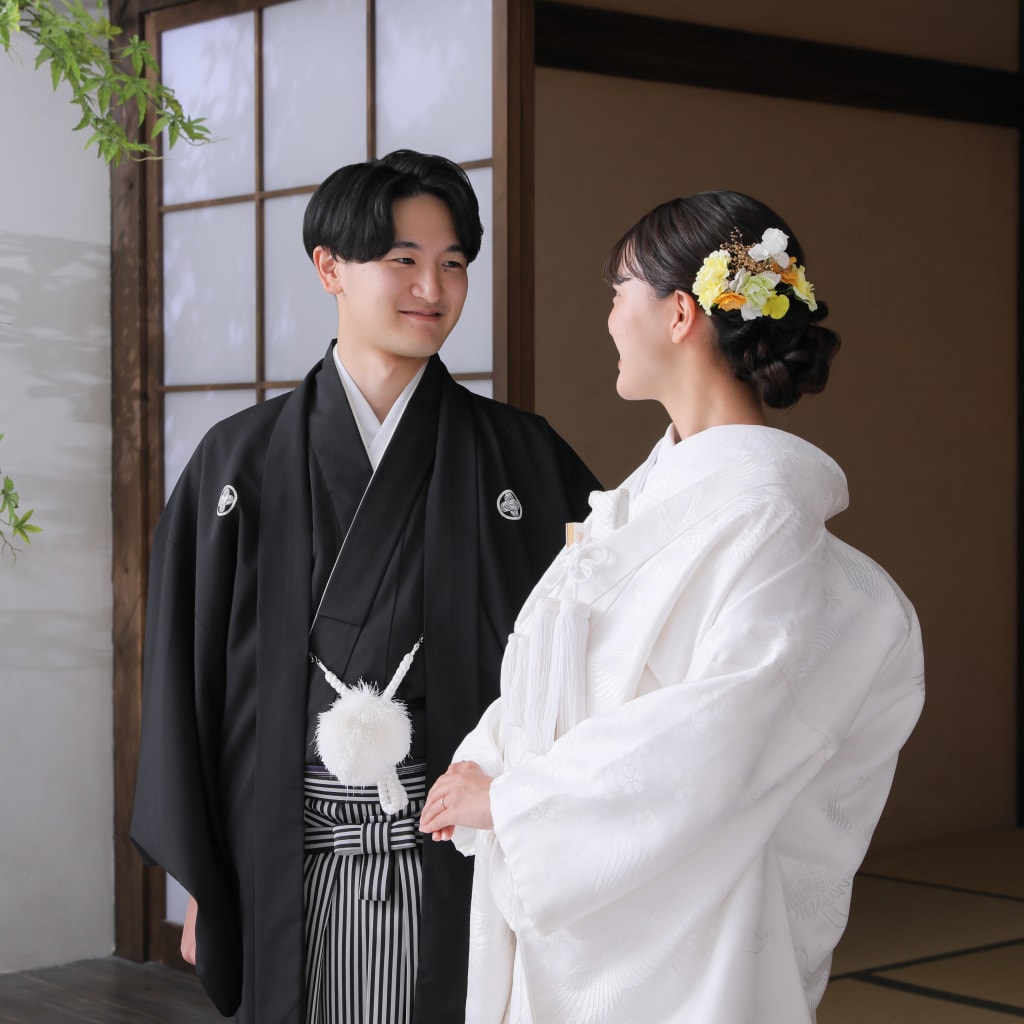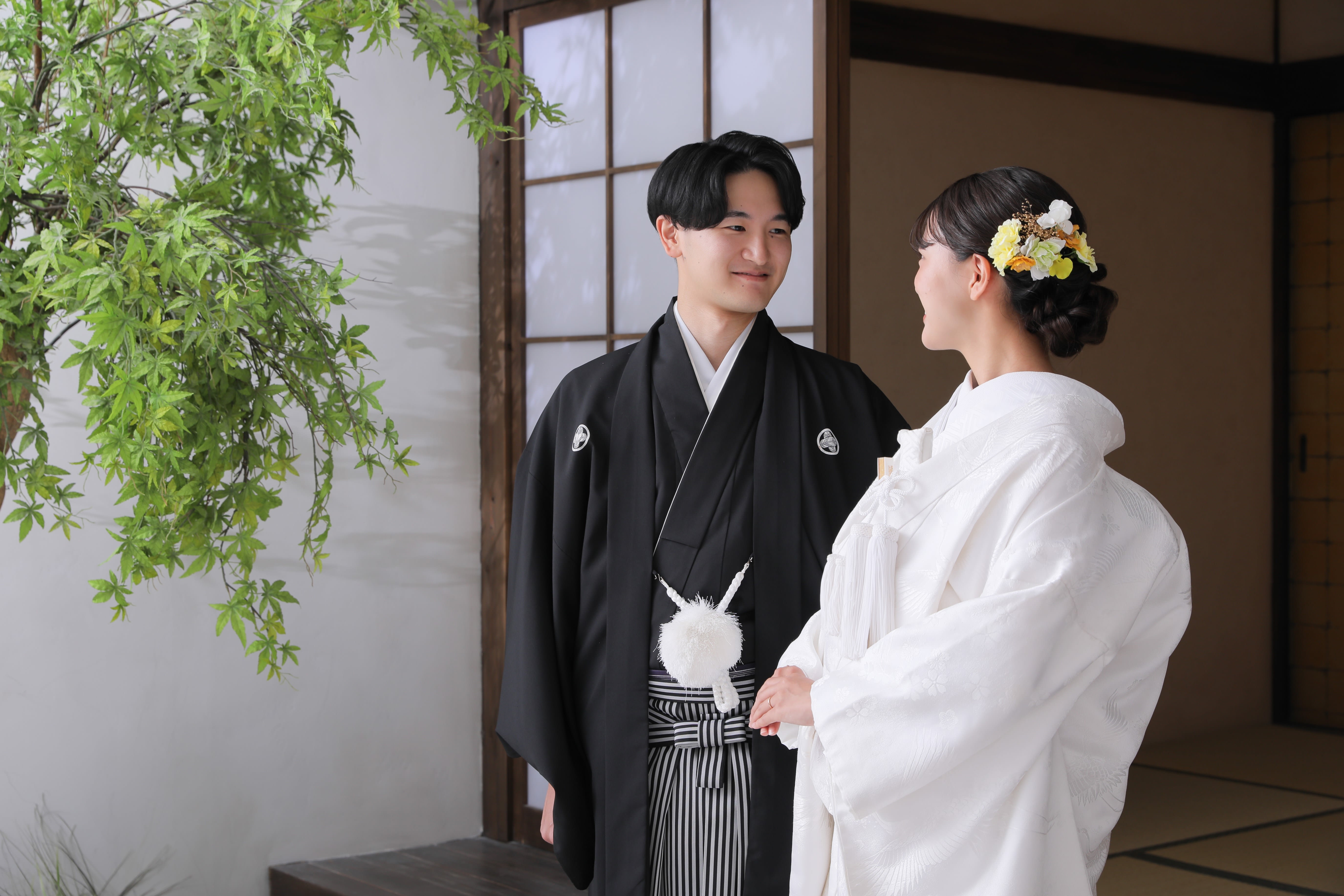 まず初めに縁側の前で立ち姿をお撮りしました!お二人とも和装が似合いますね!