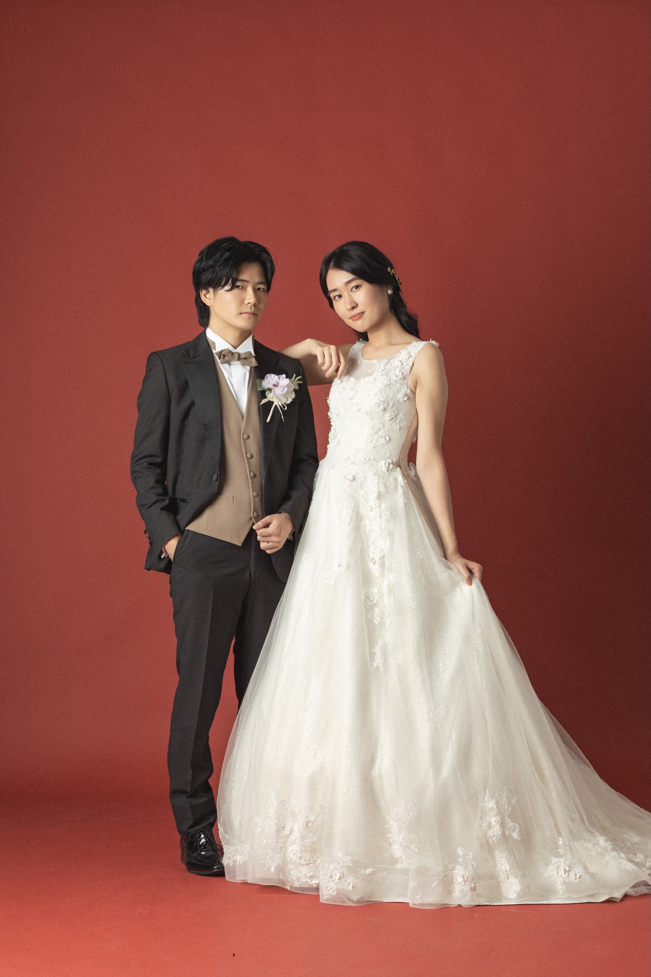 赤の背景では、お二人にたくさんポーズを考案してもらいました!