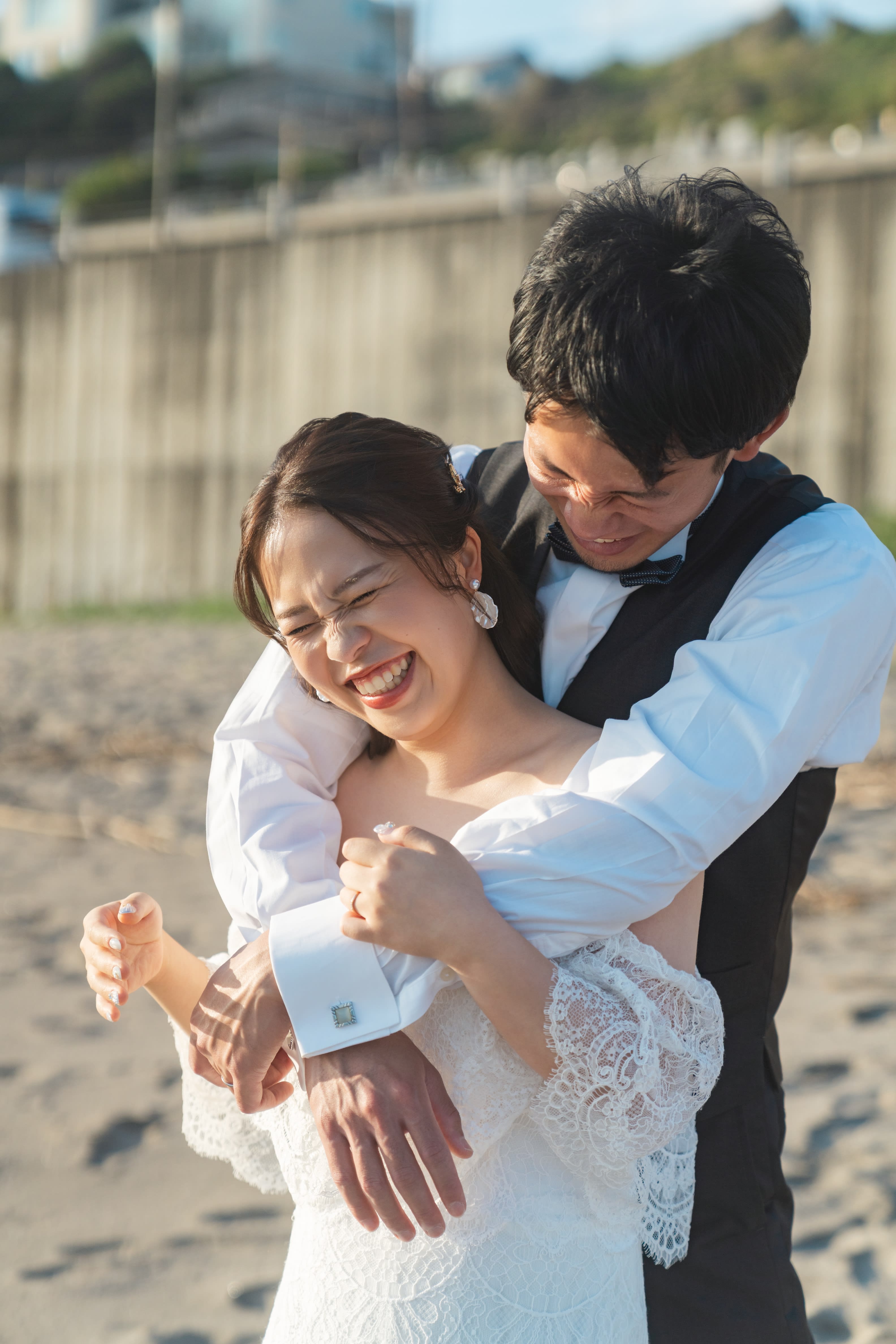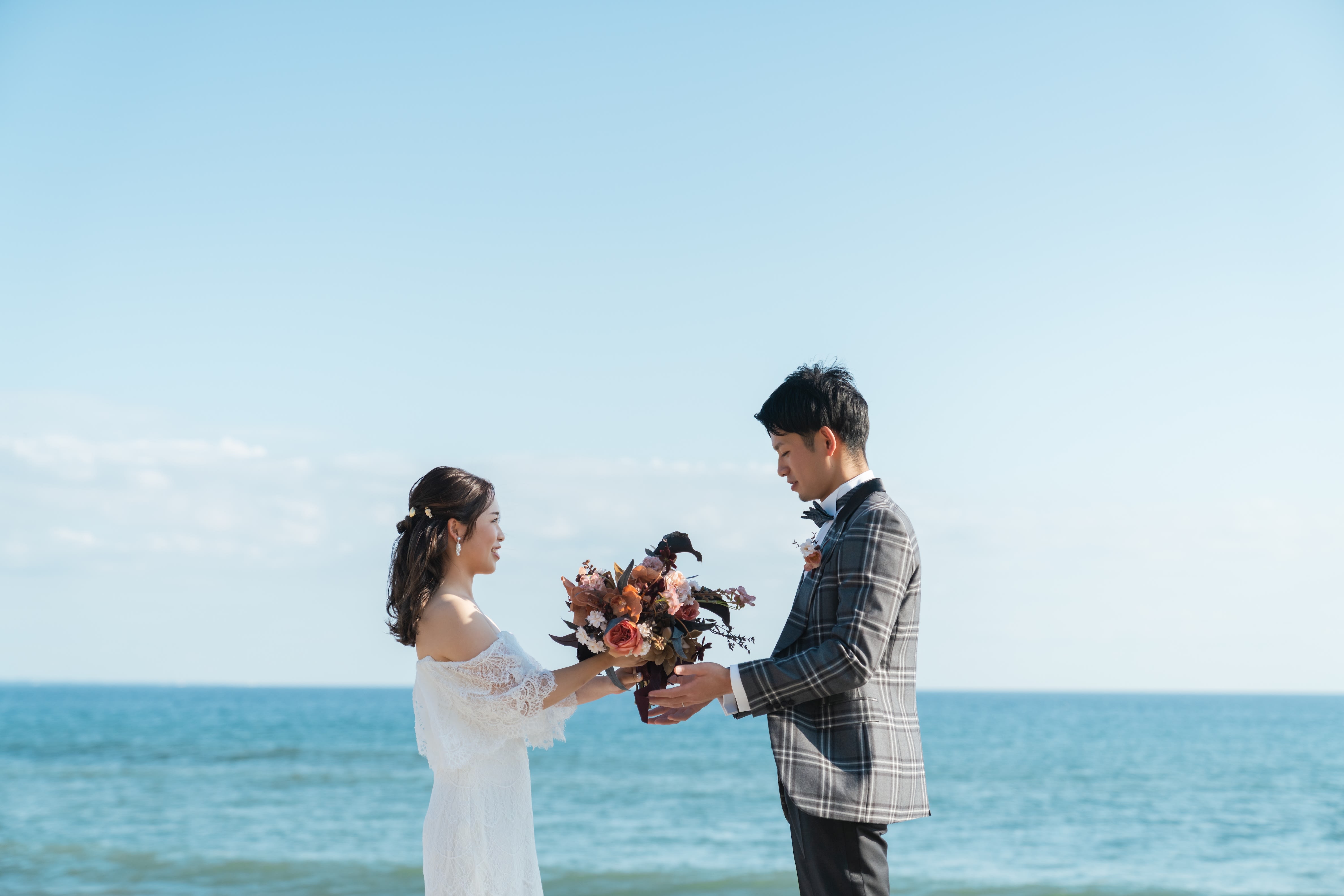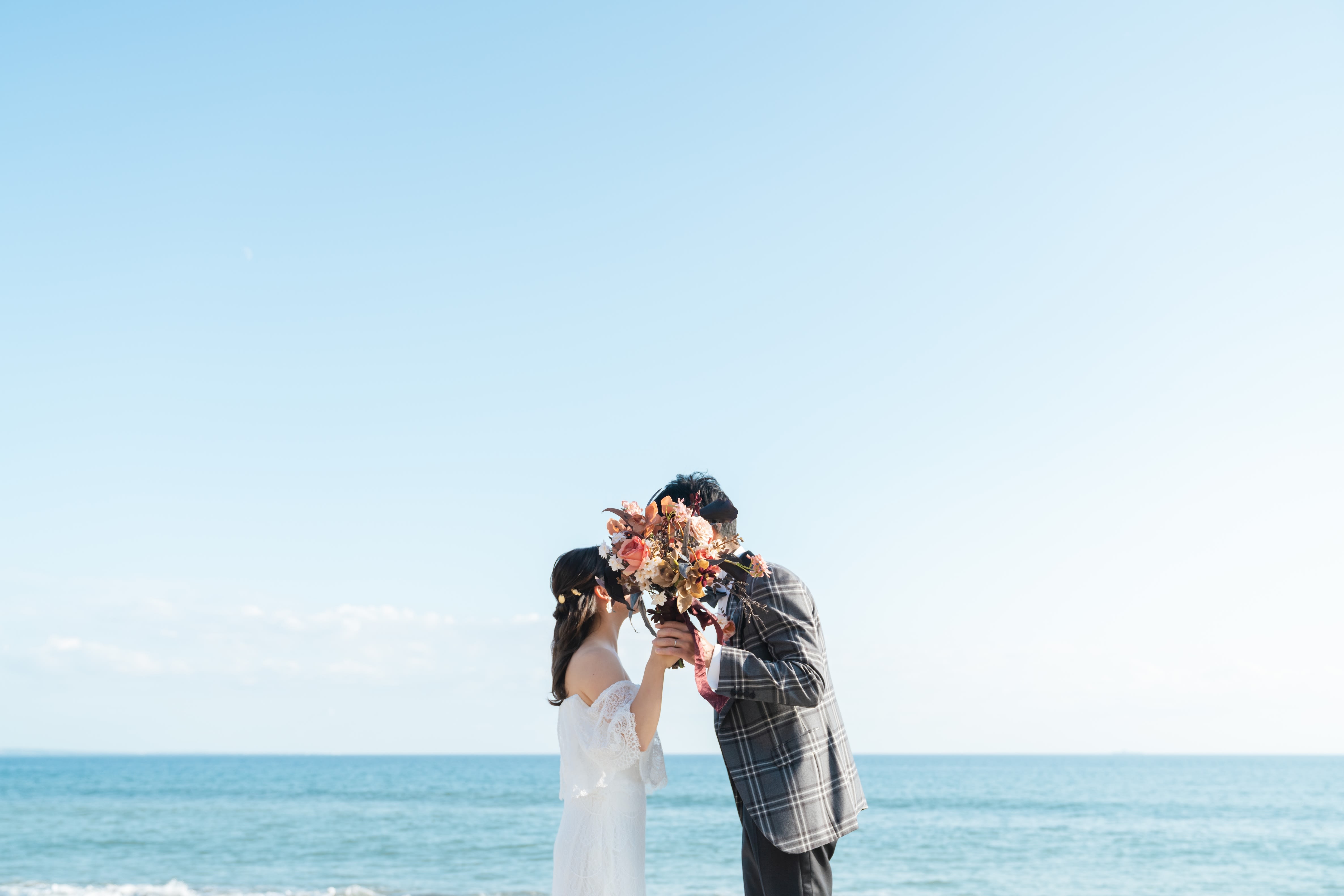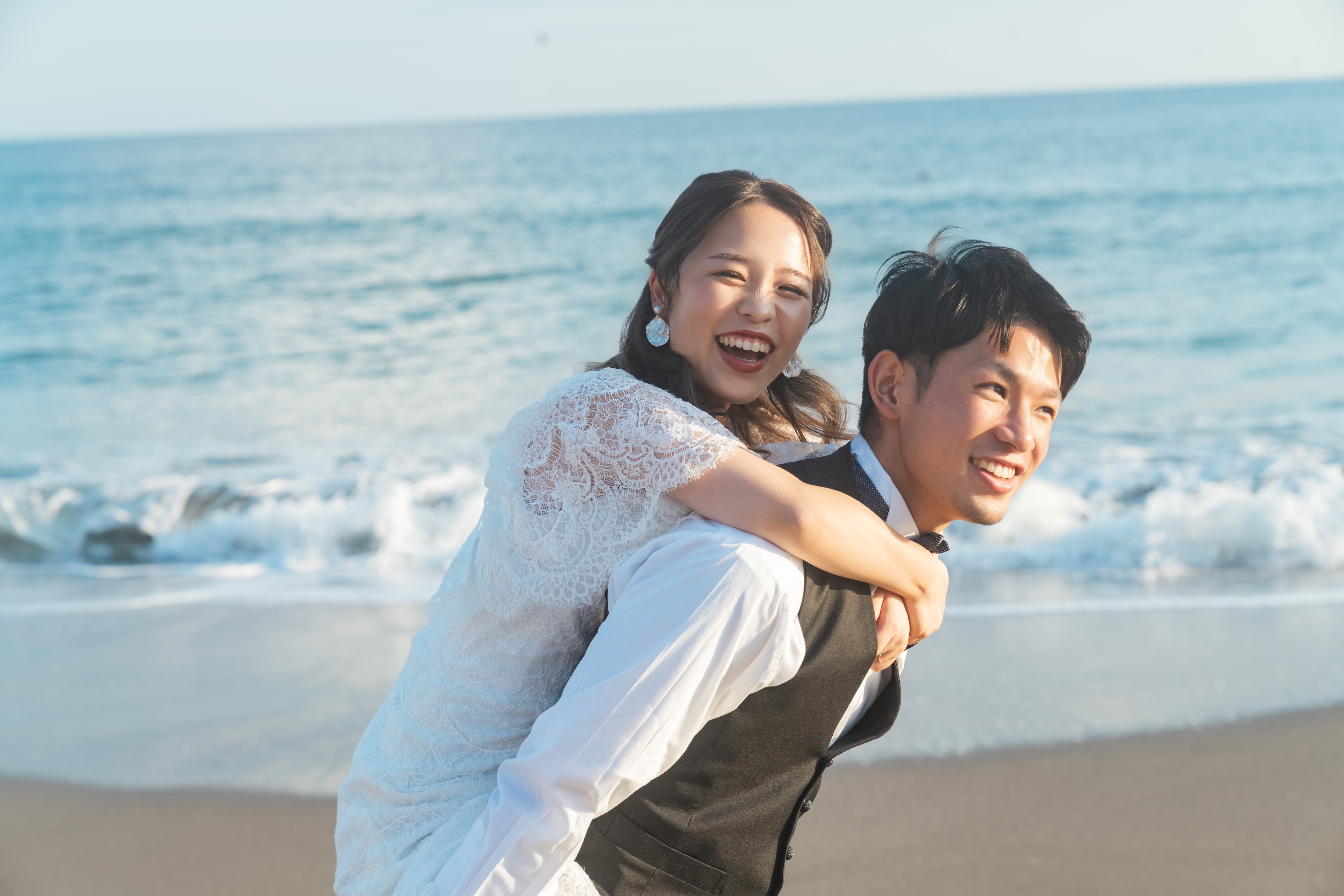 海に向かうお二人の姿も残していきます!ドキドキ感が伝わってきますね!