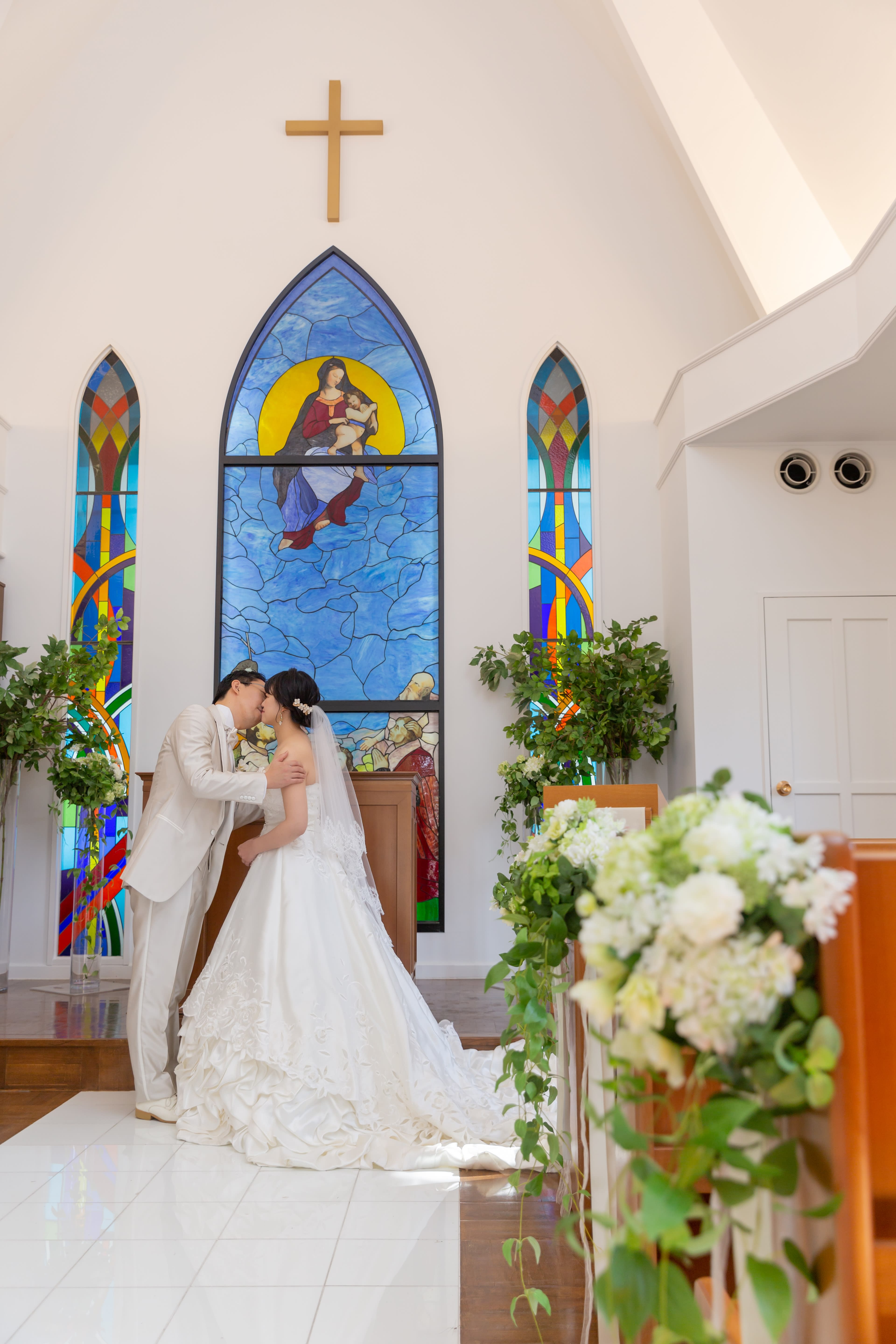 ヴァージンロードに腰掛けて。可愛い写真で締めくくり!
