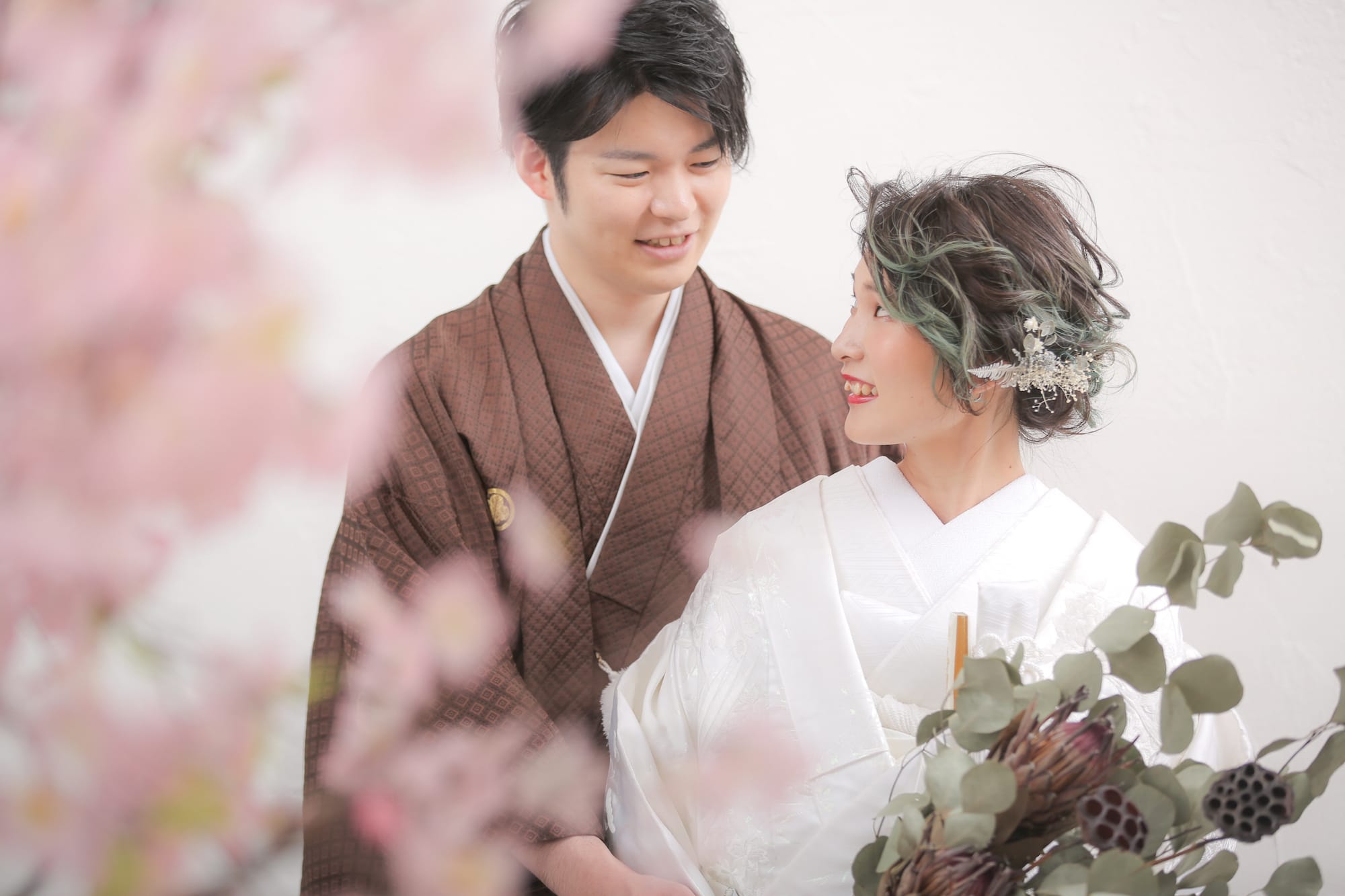 ご家族にも参加していただき、白無垢・色打掛・ウエディングドレスの3着撮影!