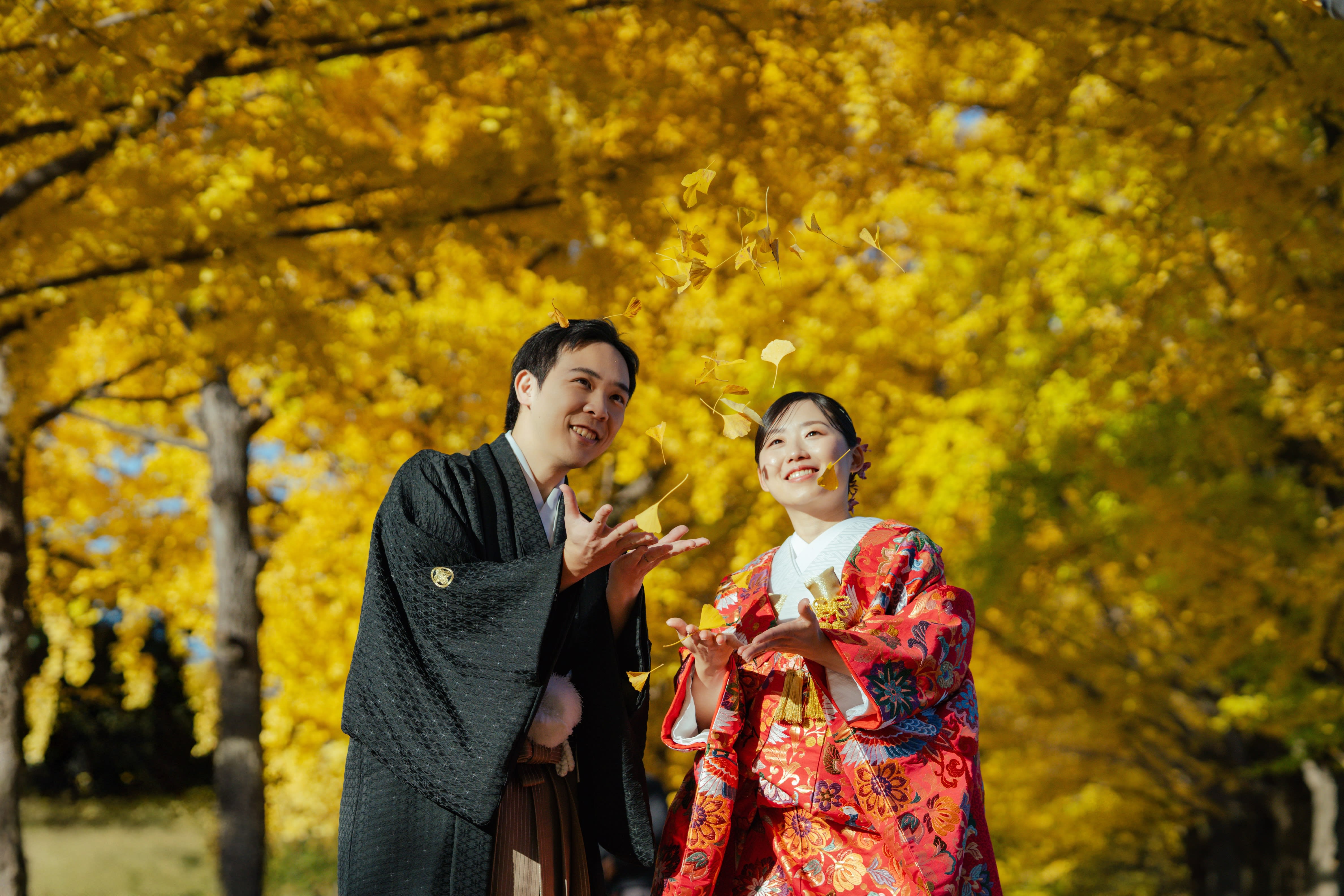 たくさんのもみじが落ちていてかわいらしいスポットに◎お二人で歩いているような雰囲気になるようにお撮りしました!