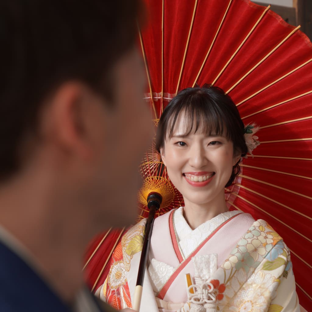 和装と番傘の組み合わせは、より和の雰囲気が出ます。