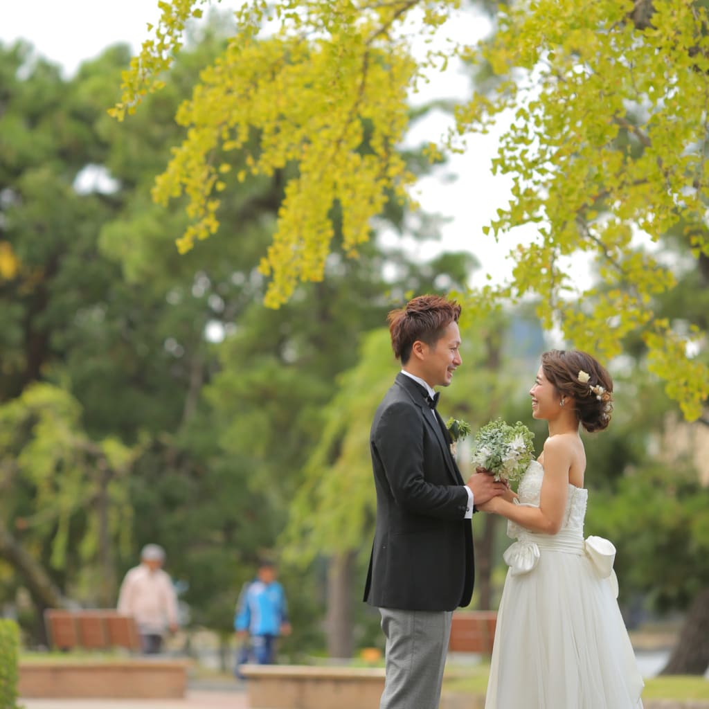 スタジオANから一番近いロケスポット。自然豊かな公園でウェディングフォトを。