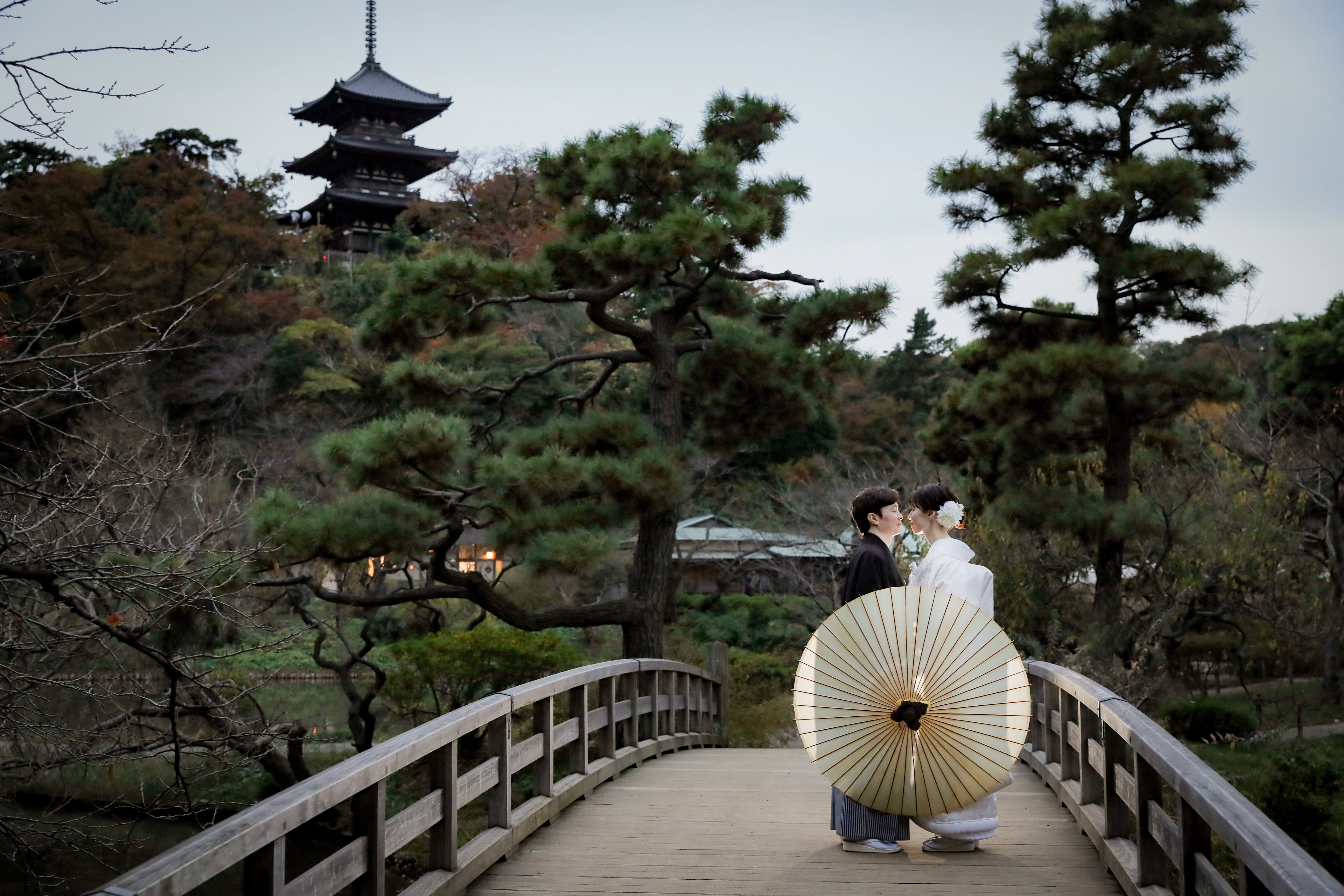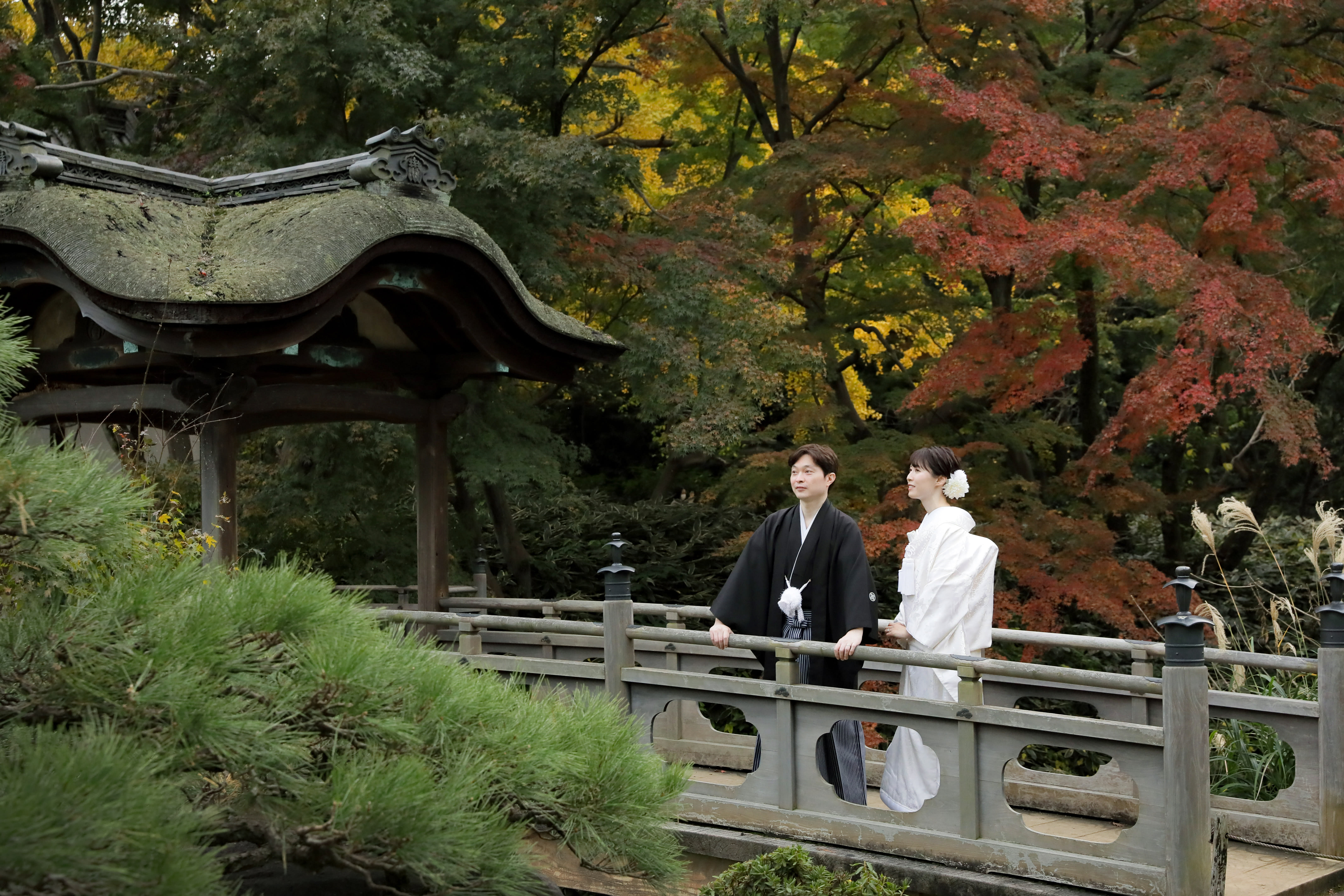 【横浜で記念日】本格的な日本庭園で、和装の結婚写真を