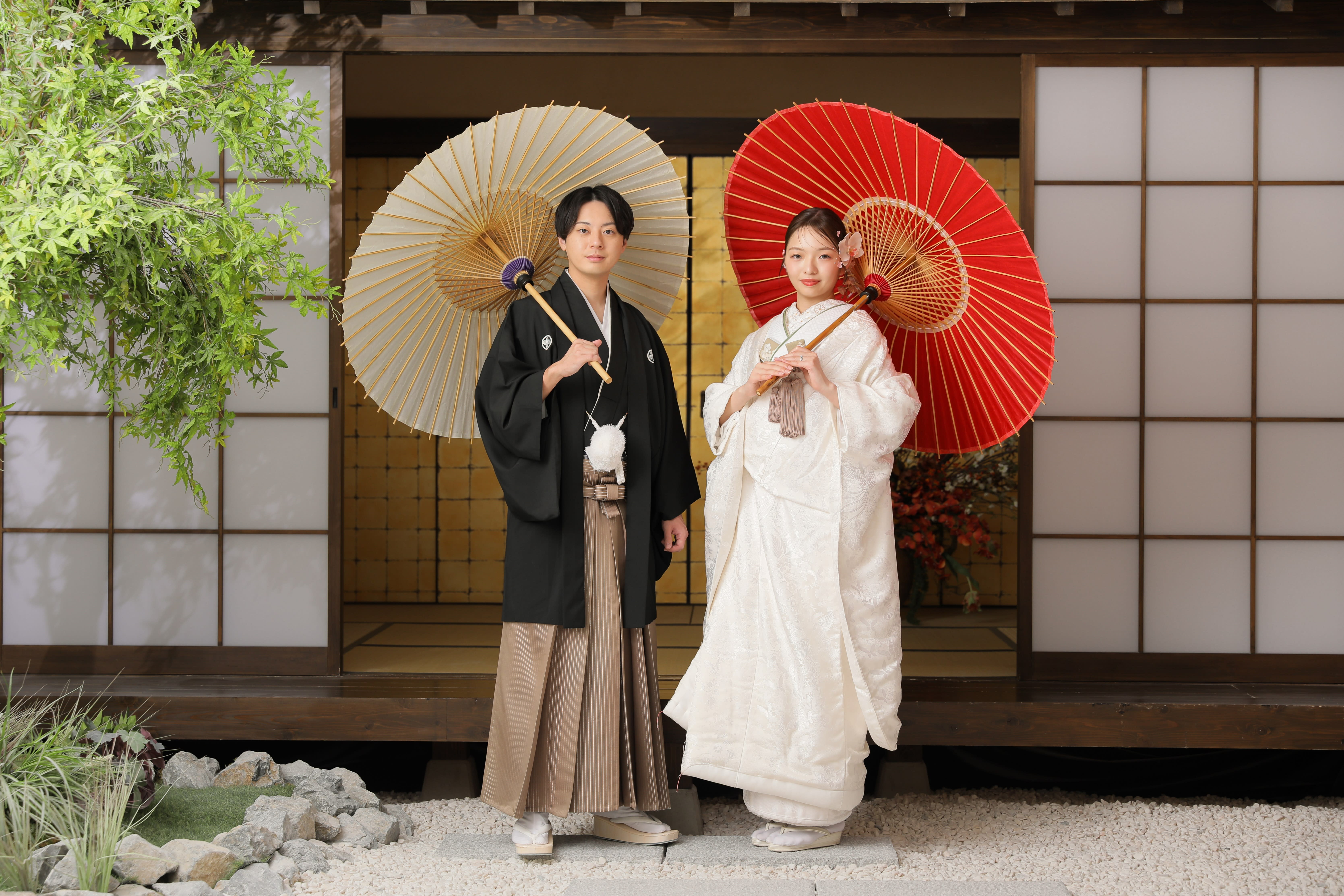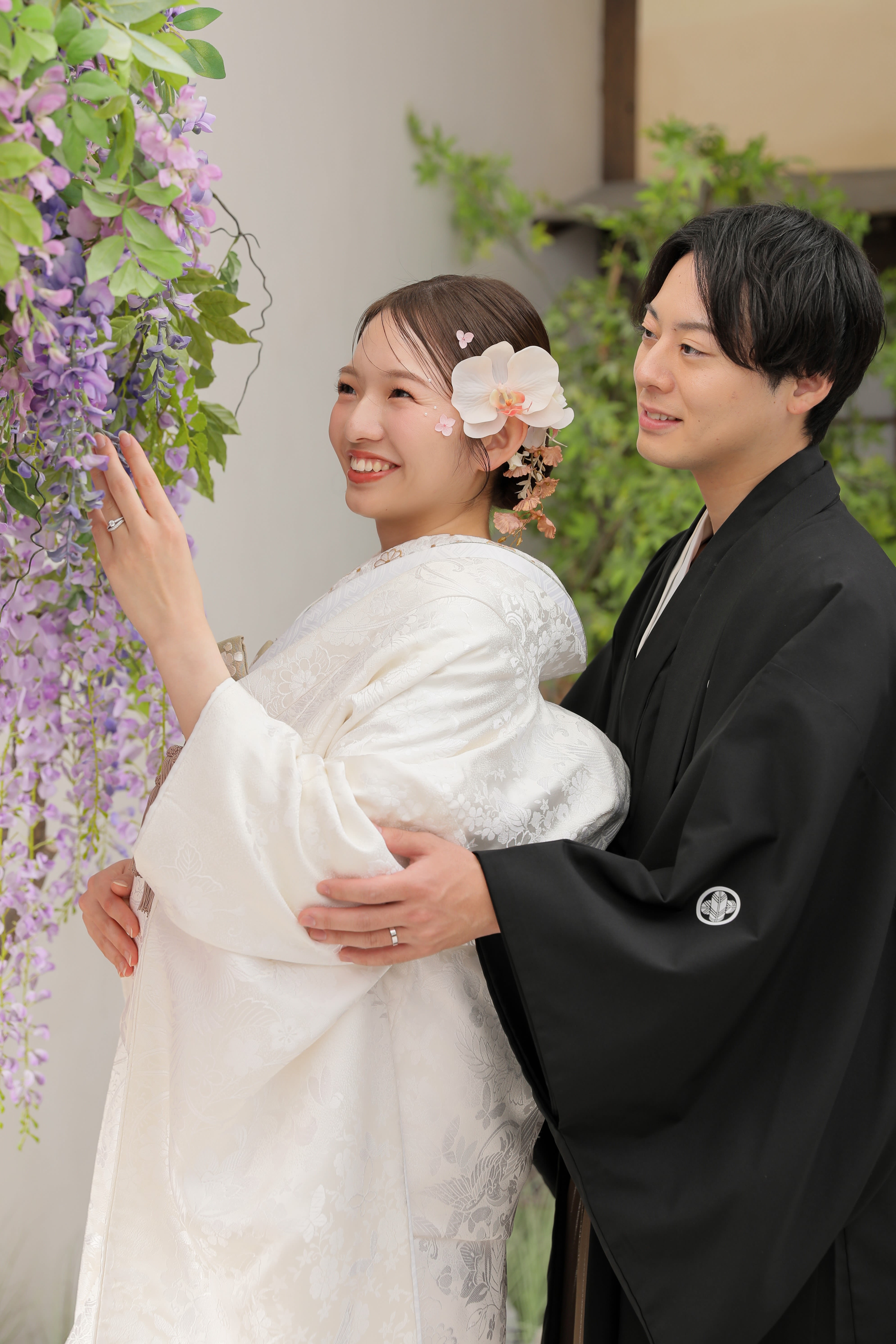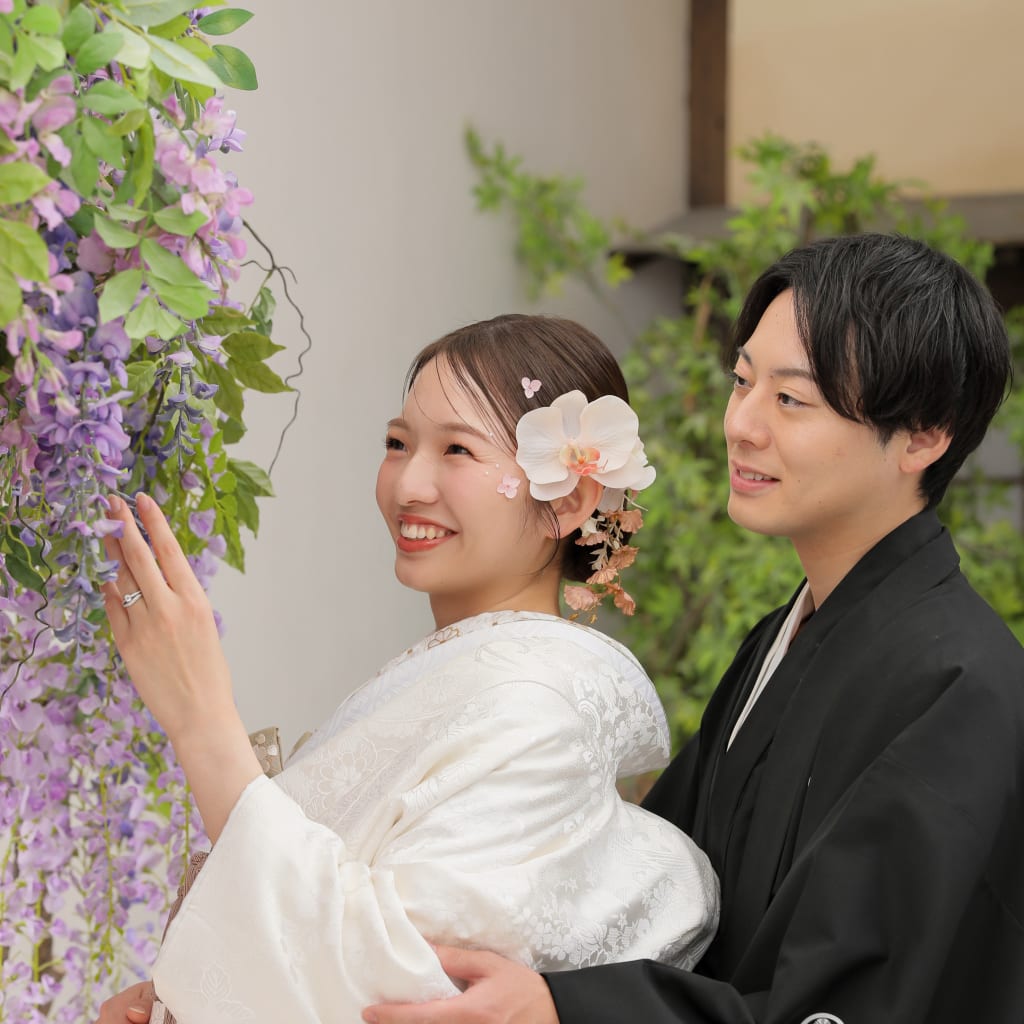縁側でお花見をするお二人!ゆったりとした空間のお写真ですね♡