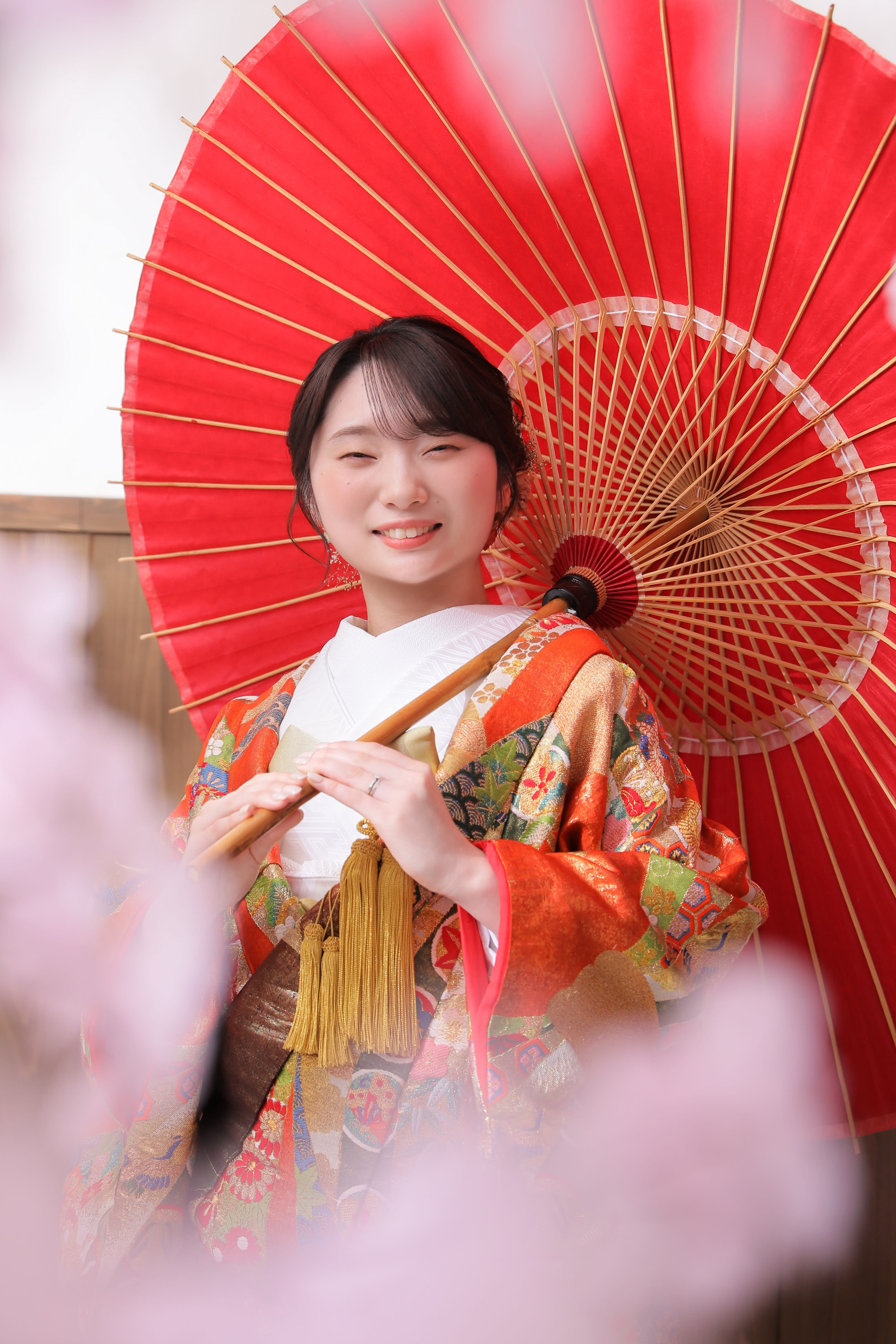 桜のお花と和傘であたたかな雰囲気で撮影いたしました!!