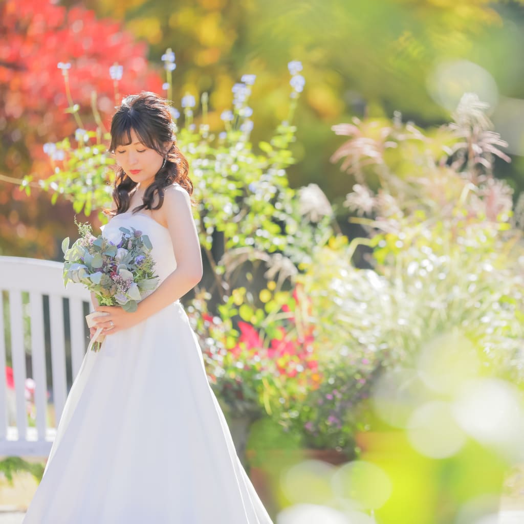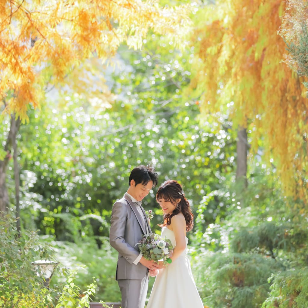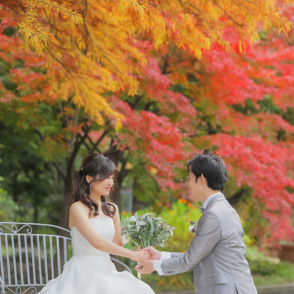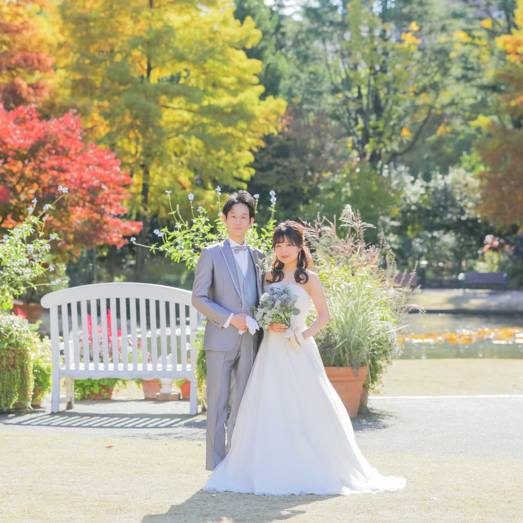 秋の色に染まった背景と一緒におふたりの立ち姿をお撮りました。