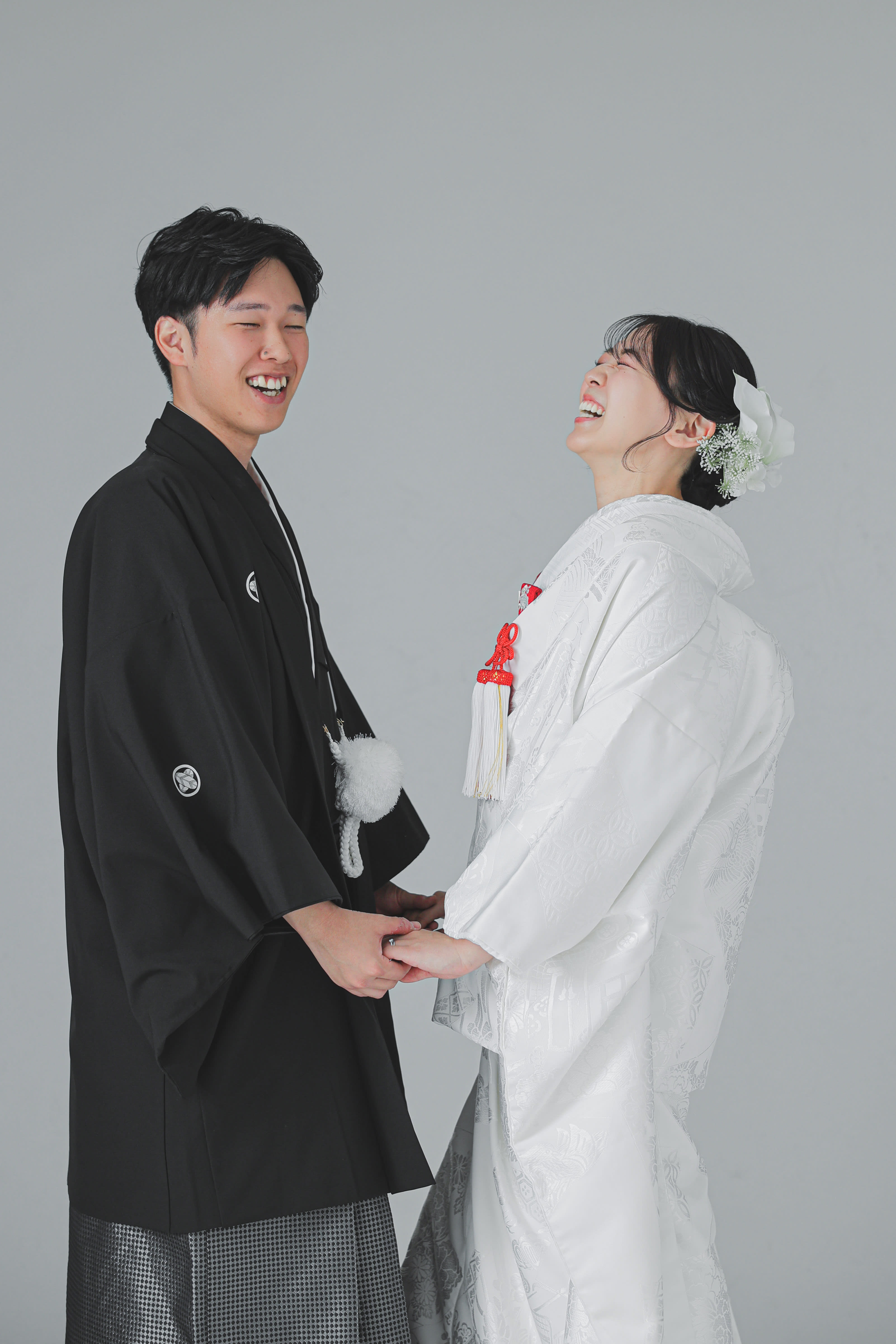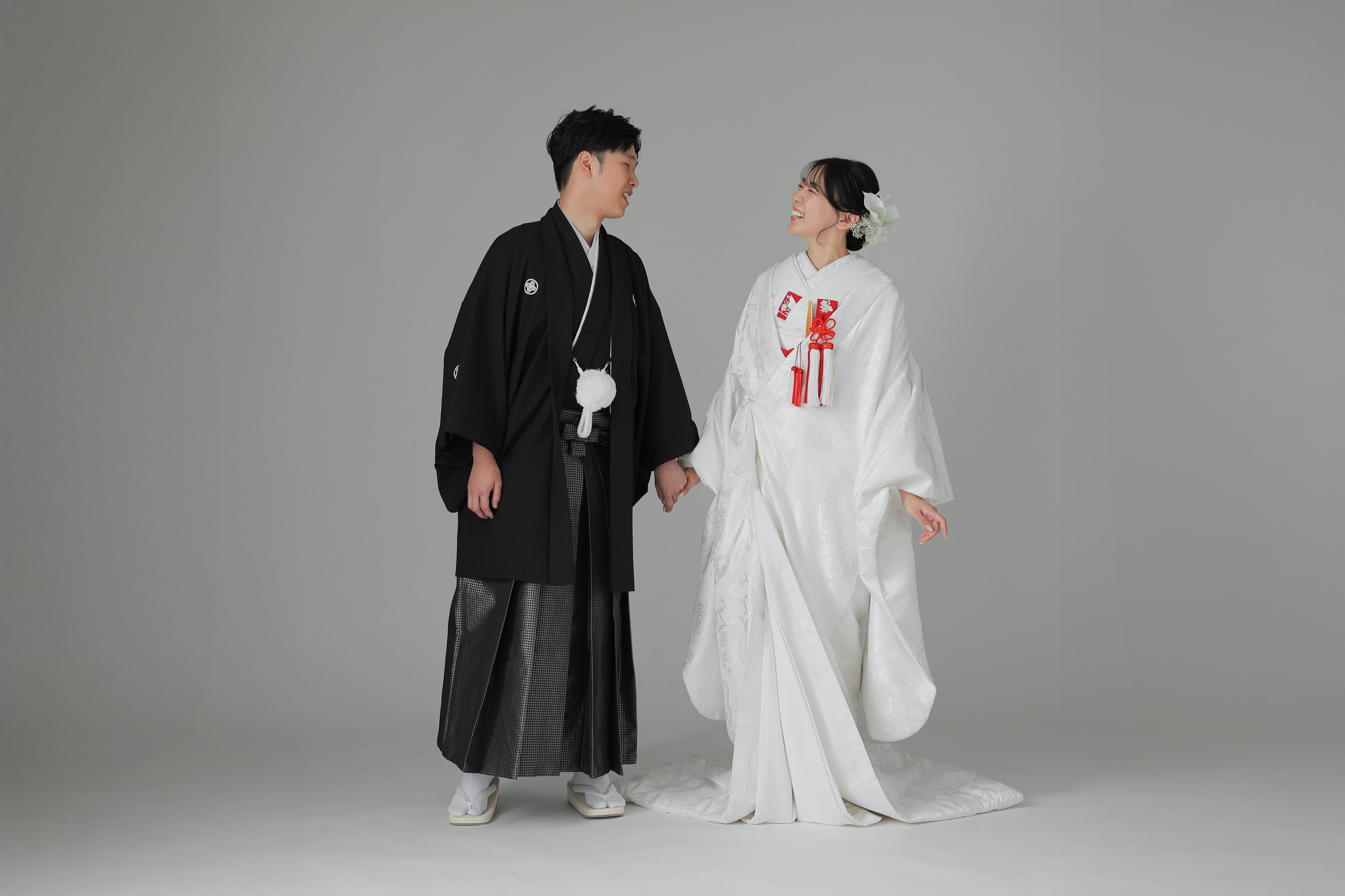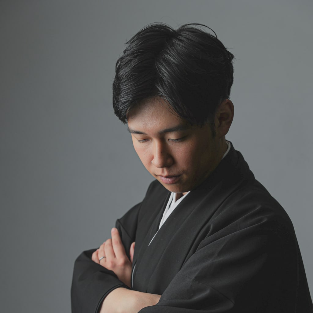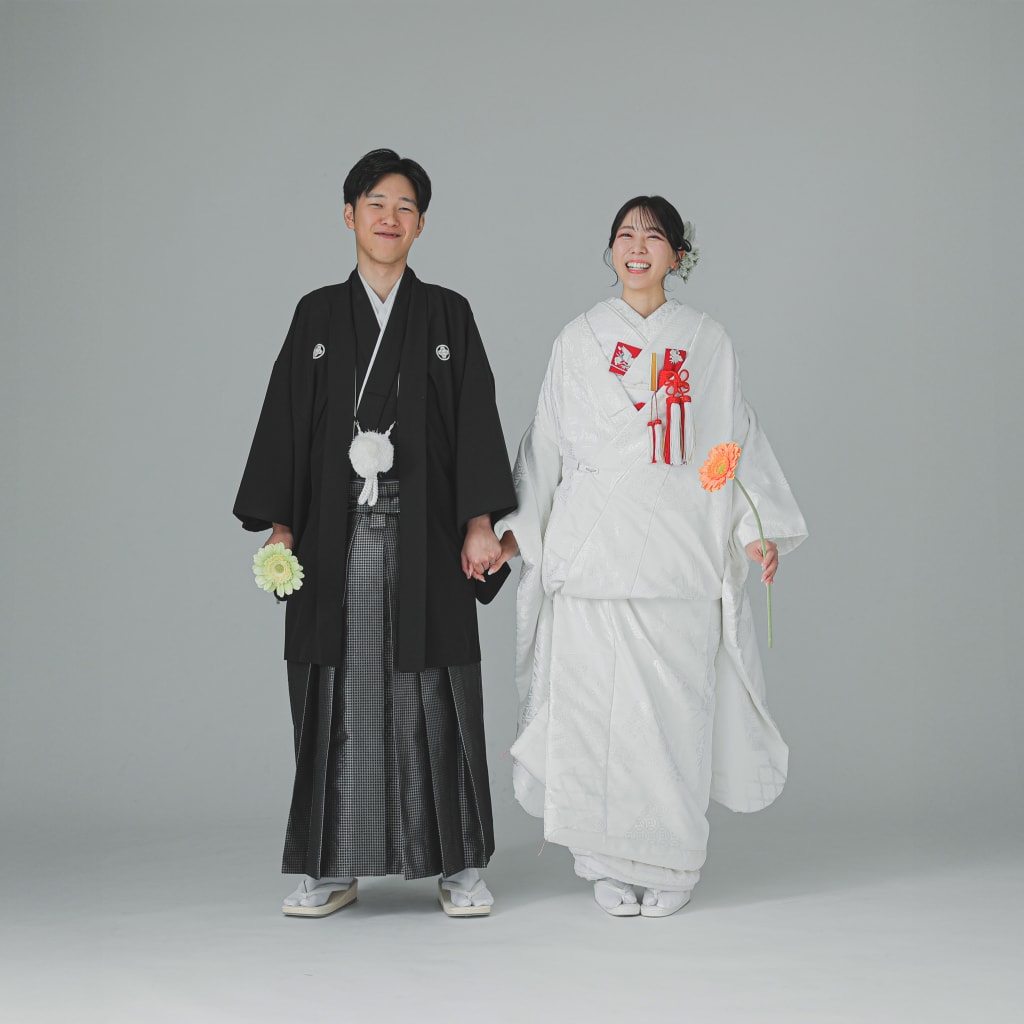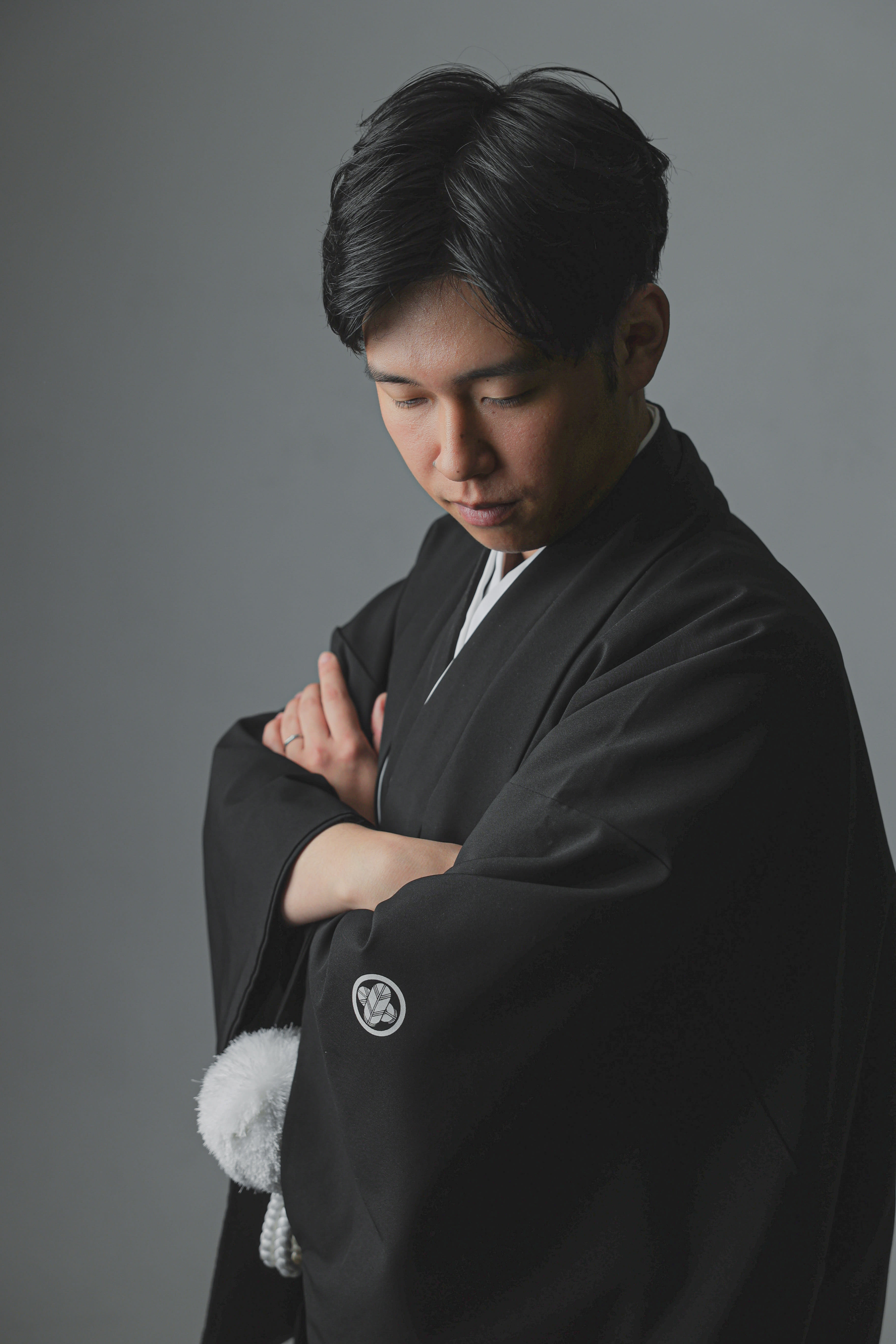 シンプルな白い背景の中で正座姿。スタイリッシュですよね。