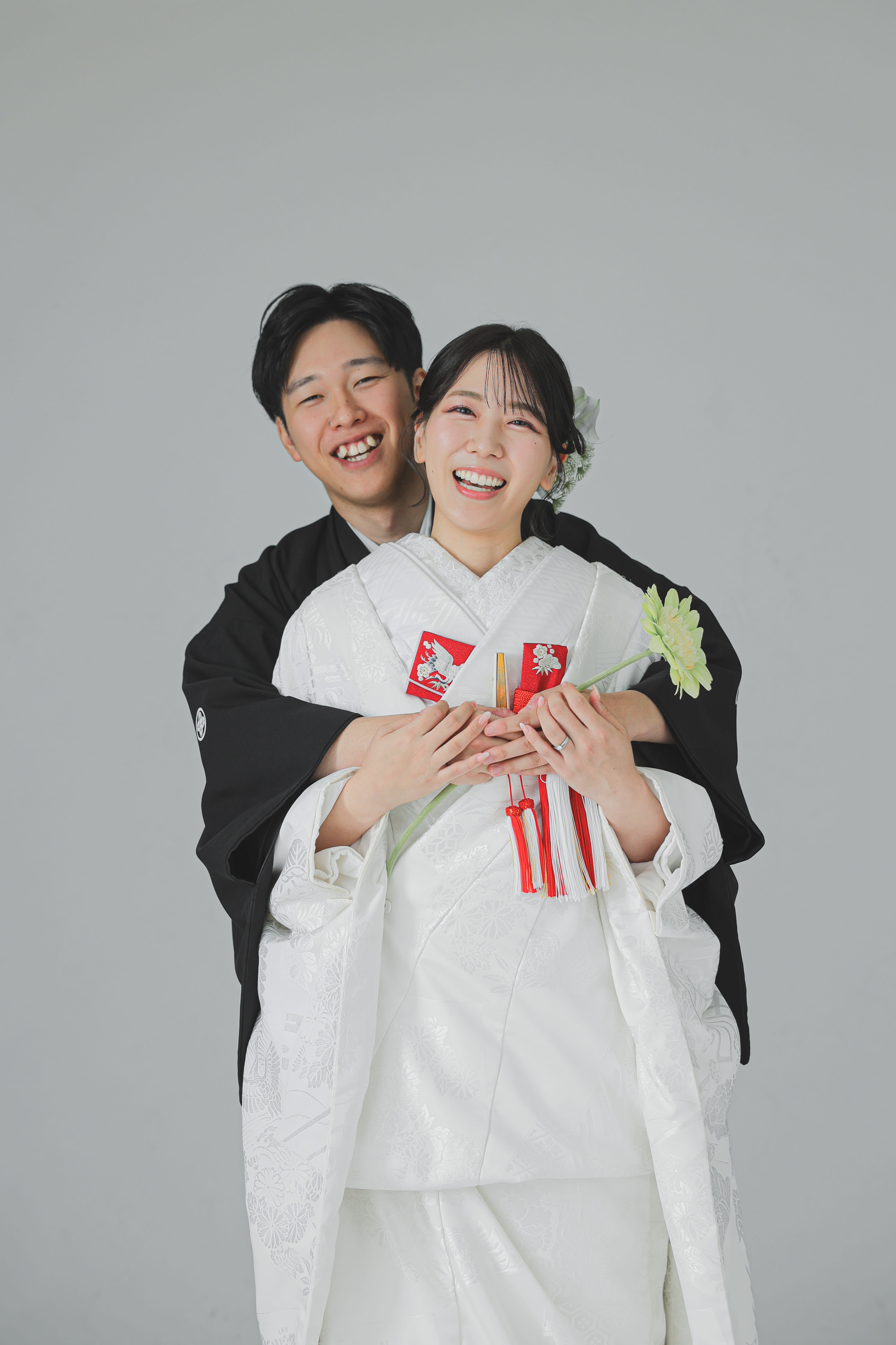 とてもいい感じなバックハグショット!ちょっと照れた感じの新郎様が良い感じです!