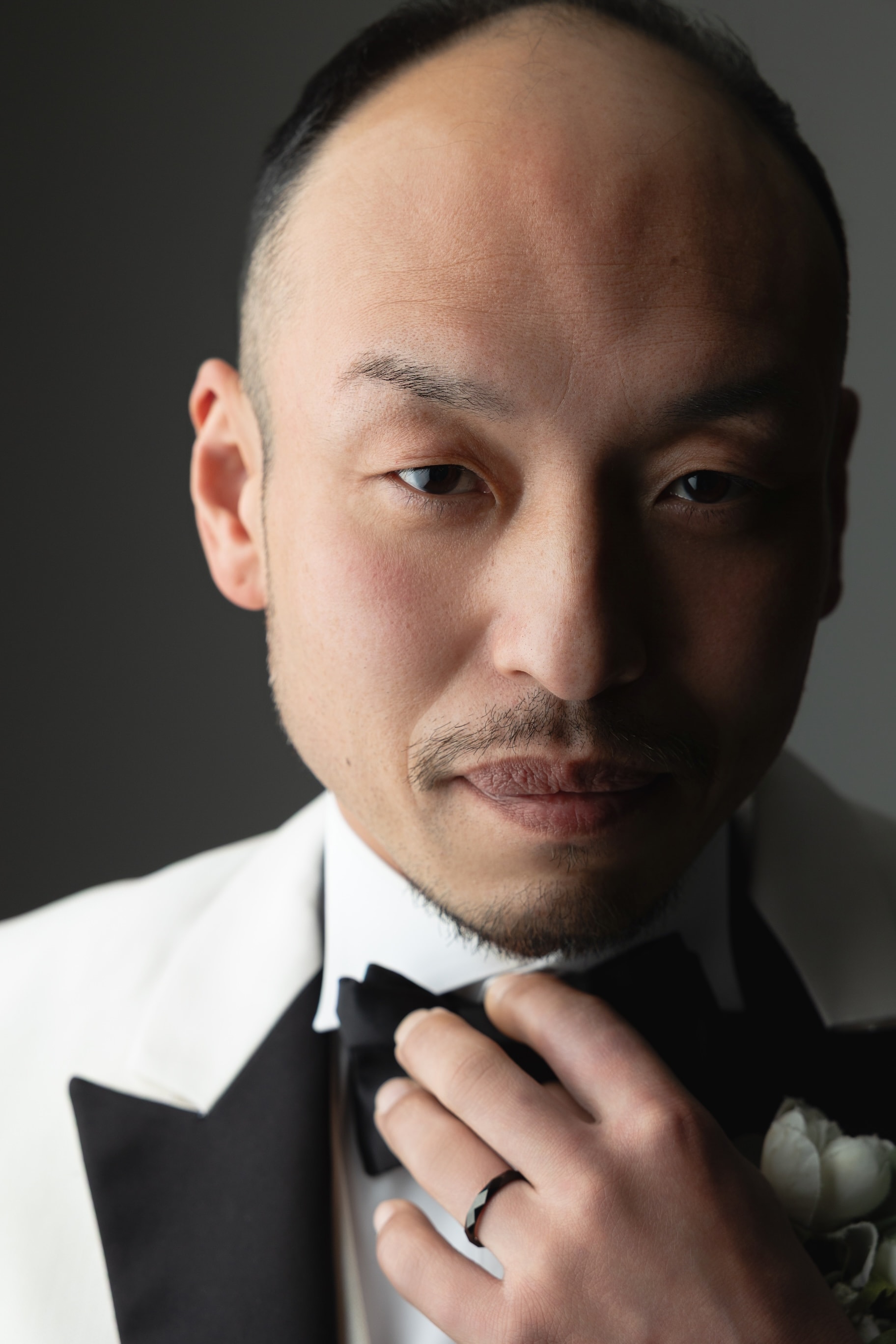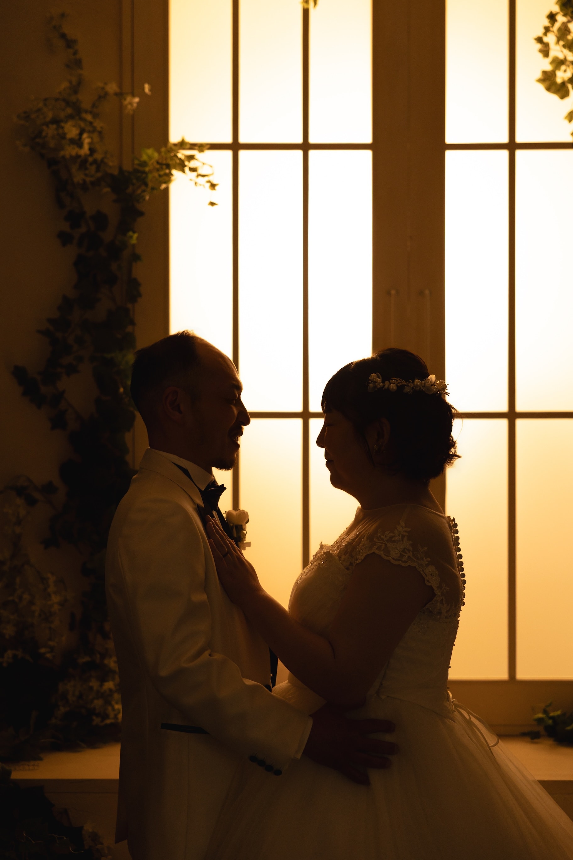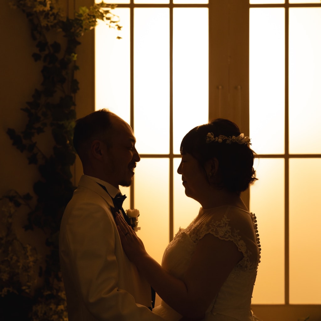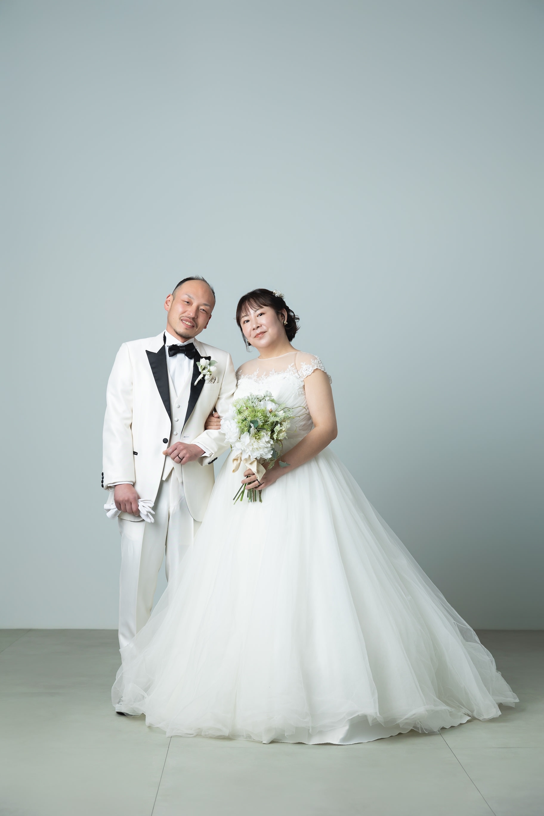 楽しい雰囲気をご希望のお二人。 ブーケを掲げて、キュッと寄り添って表現してみました♫