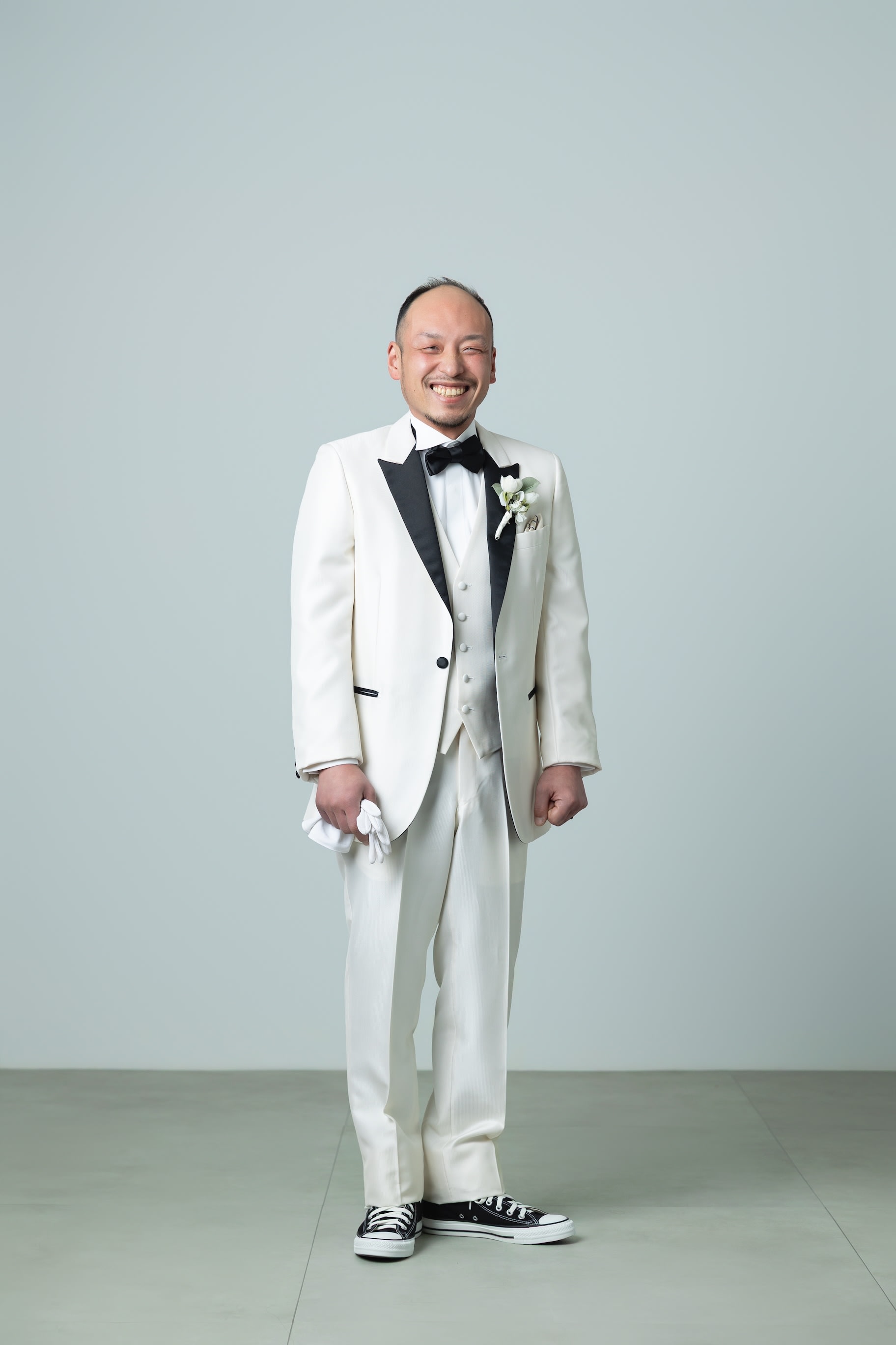 スニーカーを見せるために、カジュアルに楽しく♫ お二人らしい1枚になりました!