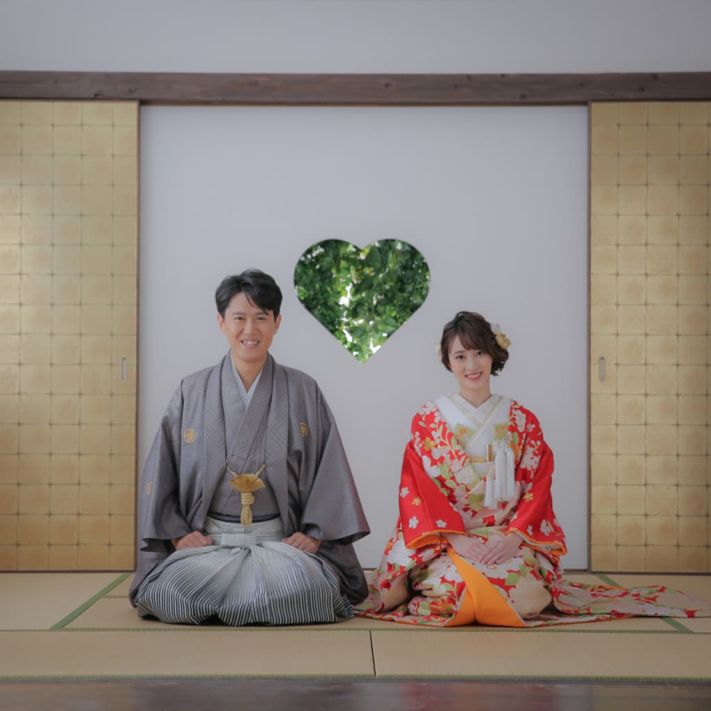 本格的な茶室スタジオで撮影する、和装の結婚写真