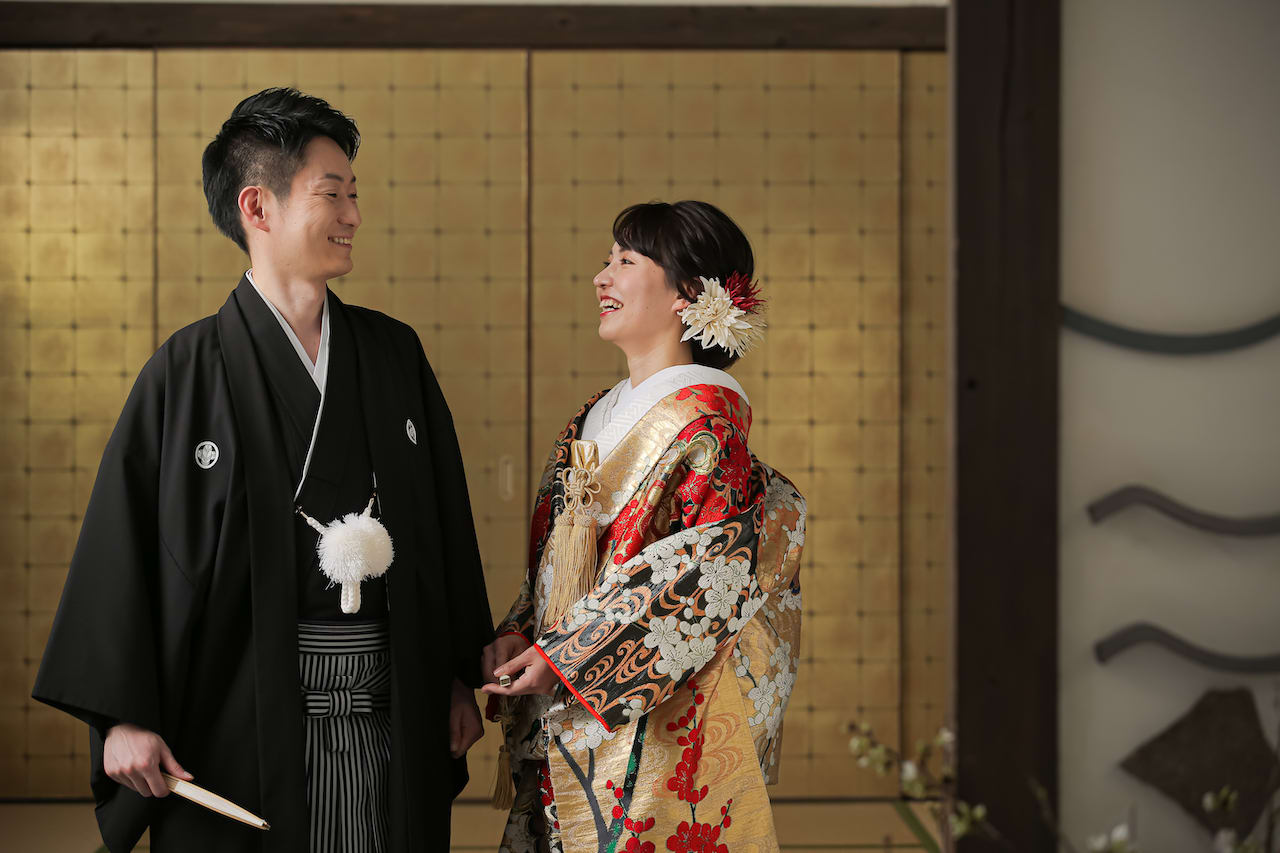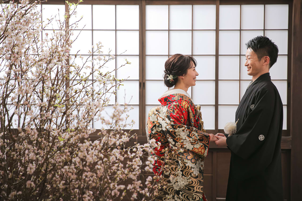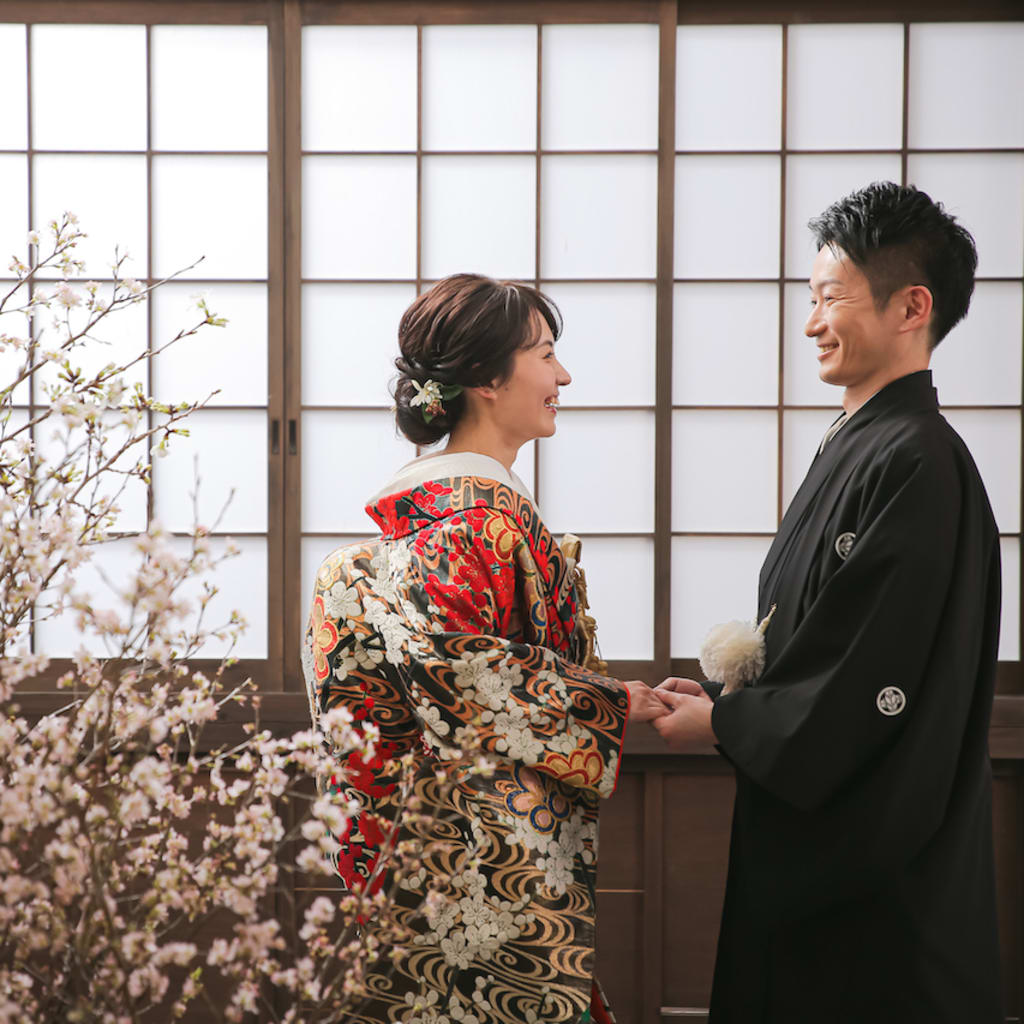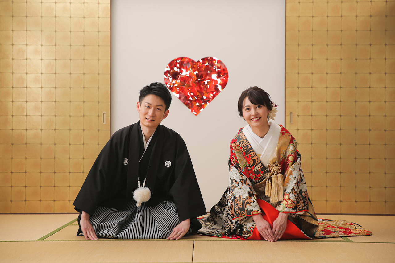 本格的な茶室スタジオで撮影する、和装の結婚写真
