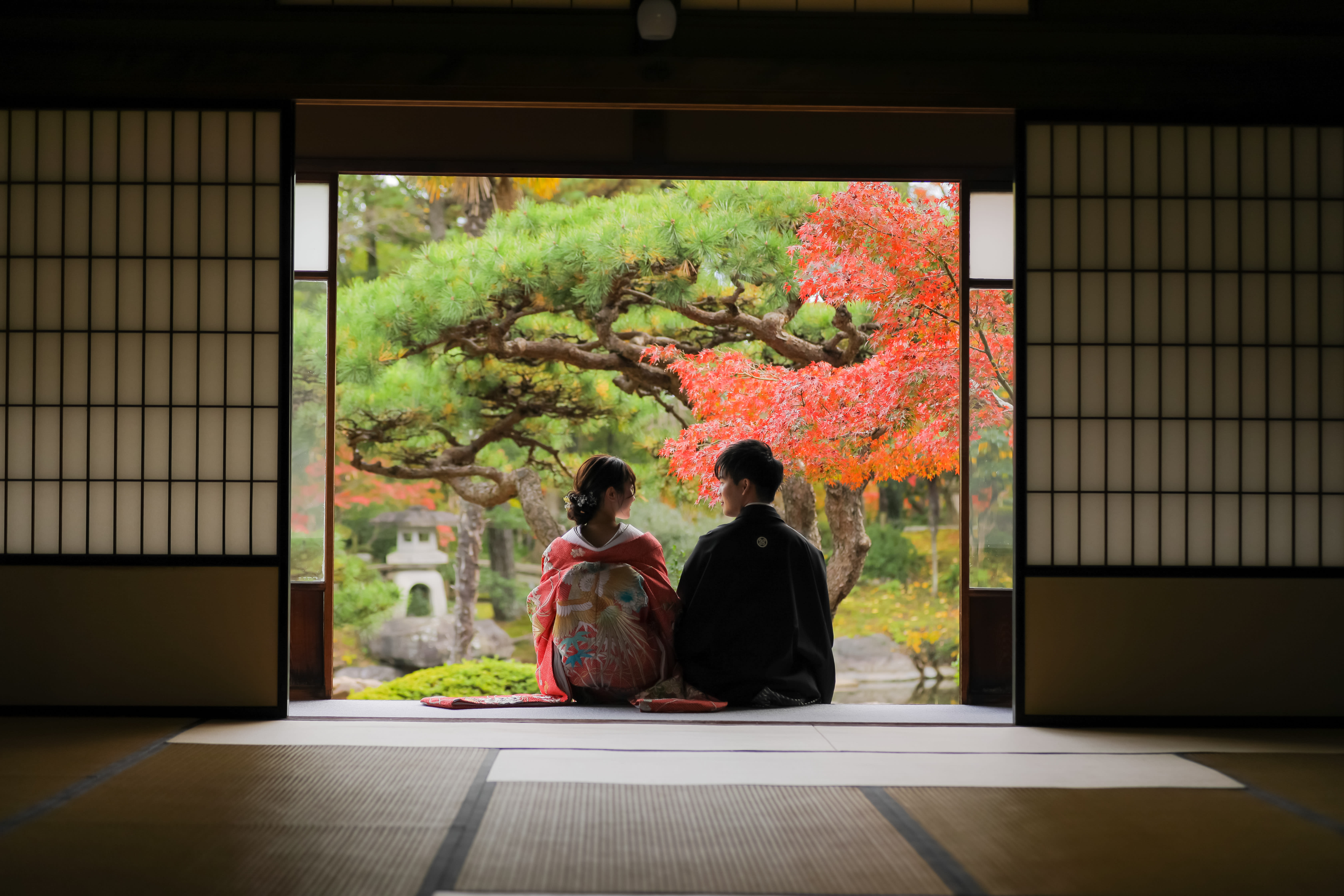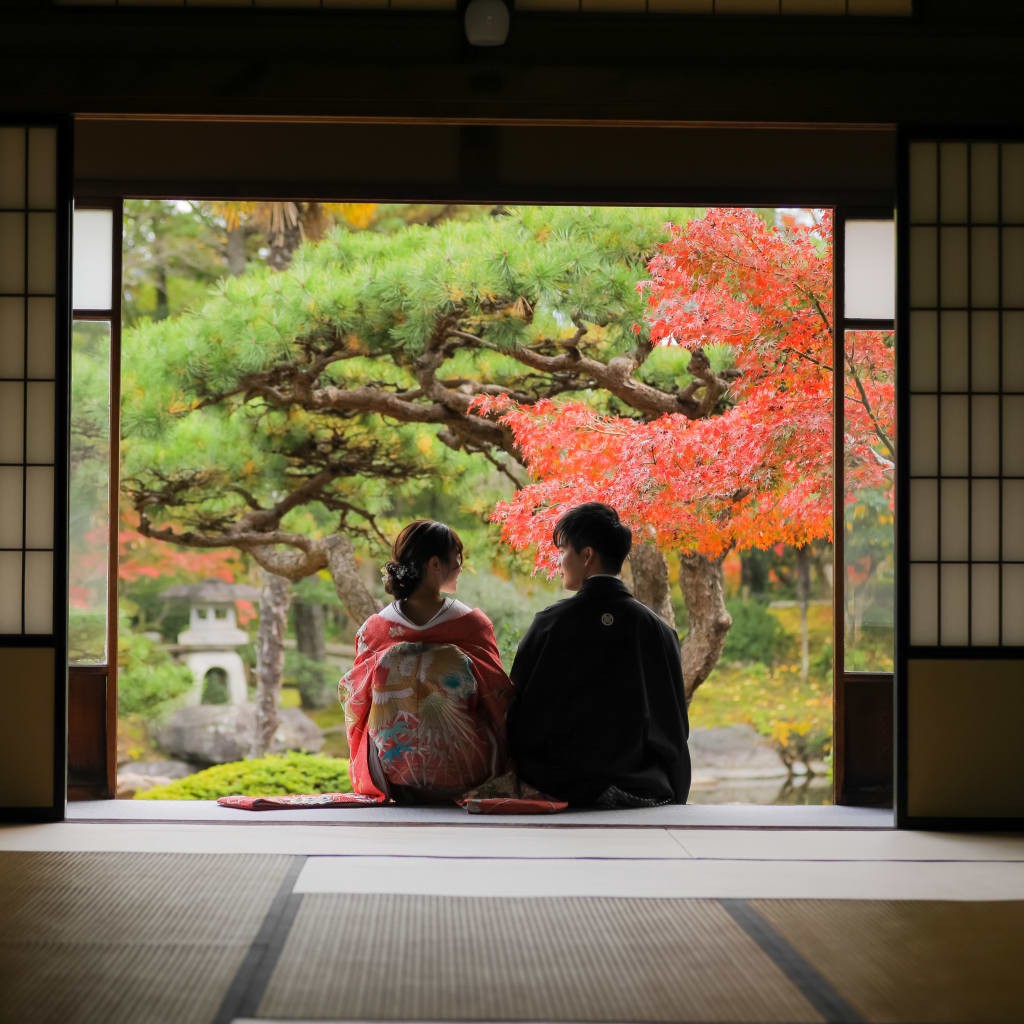 庭園の綺麗な景色に和装の衣装がとっても映えました。
