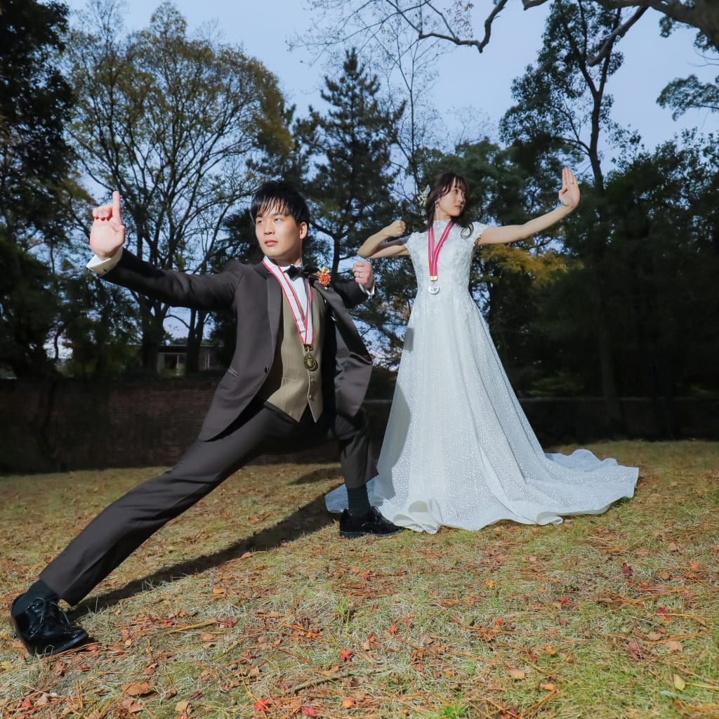 おふたりの出会われたサークルのスポーツを表現してもらいました。決まってます!!