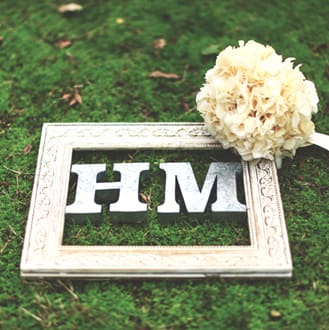 手づくりのアニバーサリーアイテムを準備して、ナチュラルなブーケと花冠とドレス。