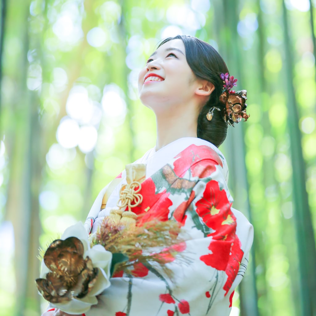 竹林の中での撮影は竹の緑と、和装がとっても合います!