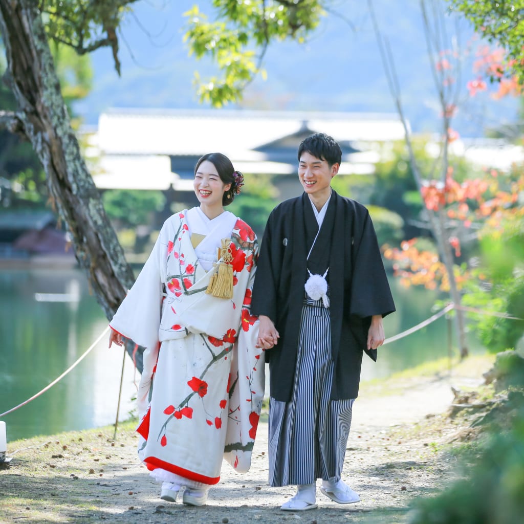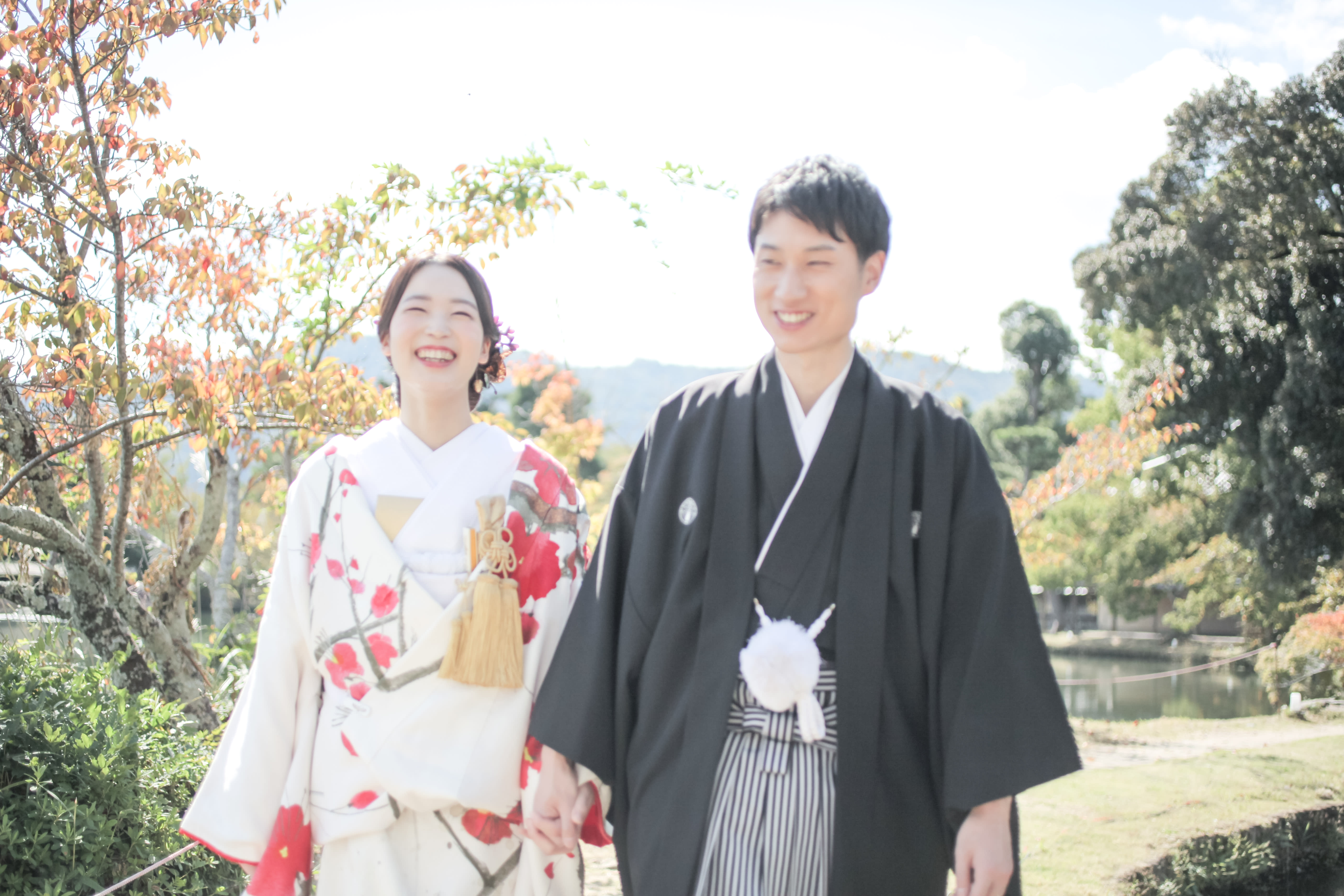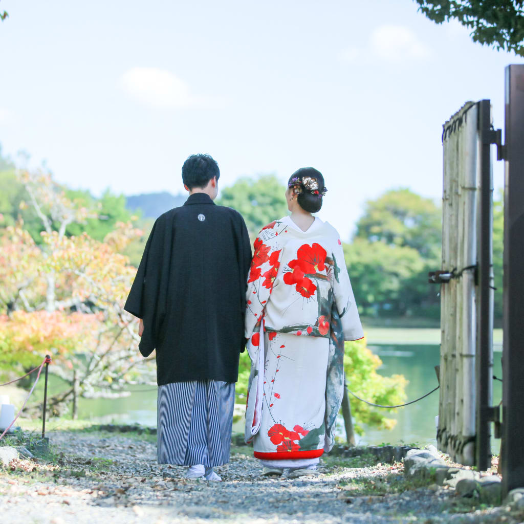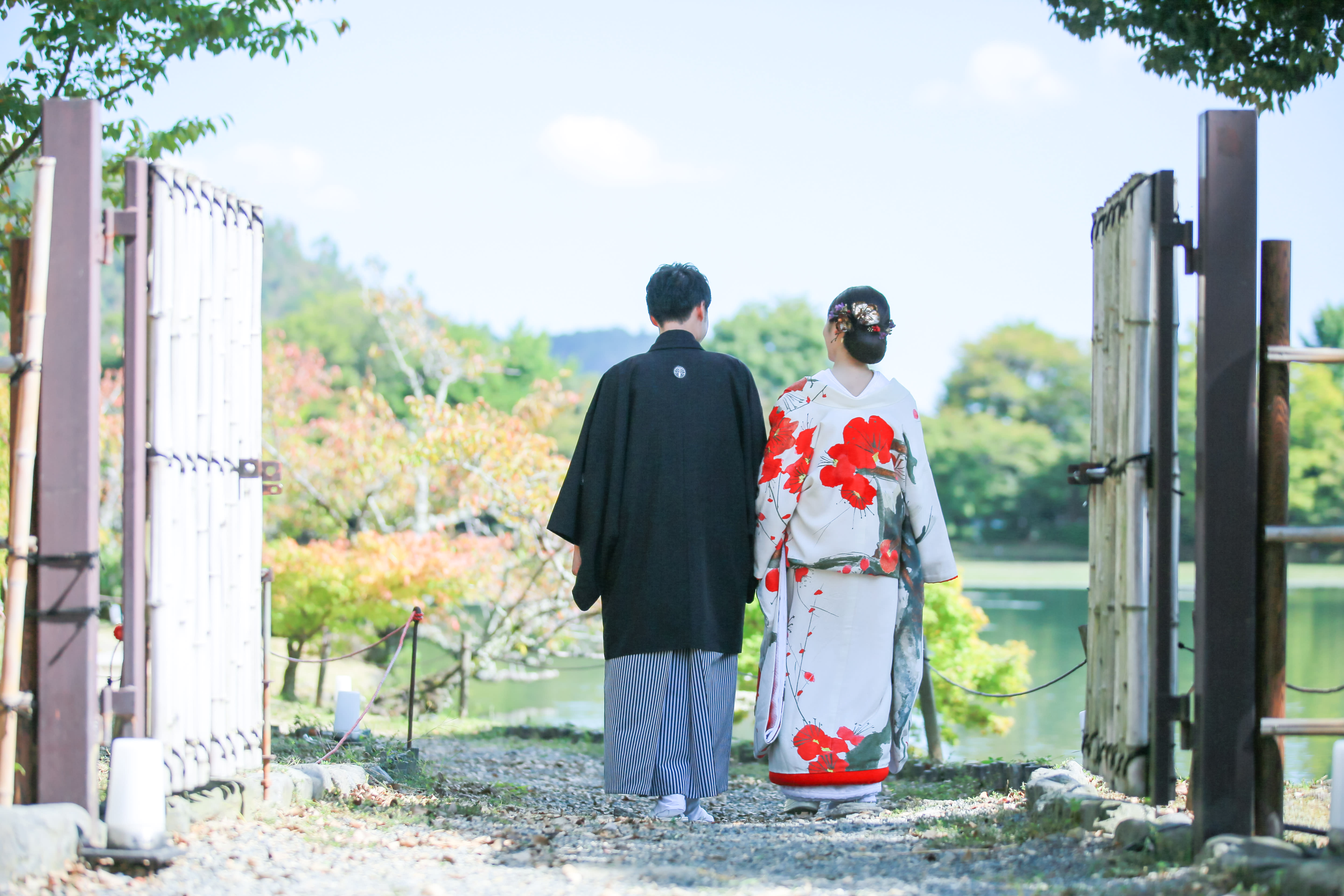 秋がはじまりかけた大覚寺で和装でのロケーションフォトです。
