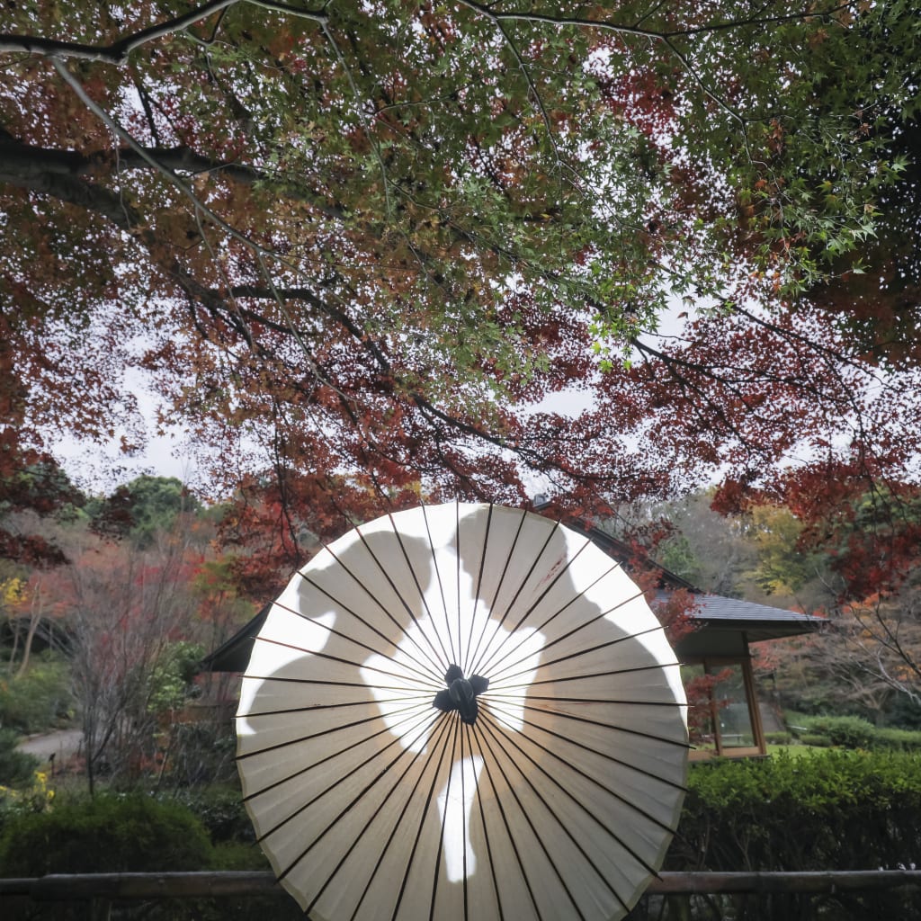 公園内にあるお茶室にて縁側ショット。茶室と紅葉が良い感じでした。