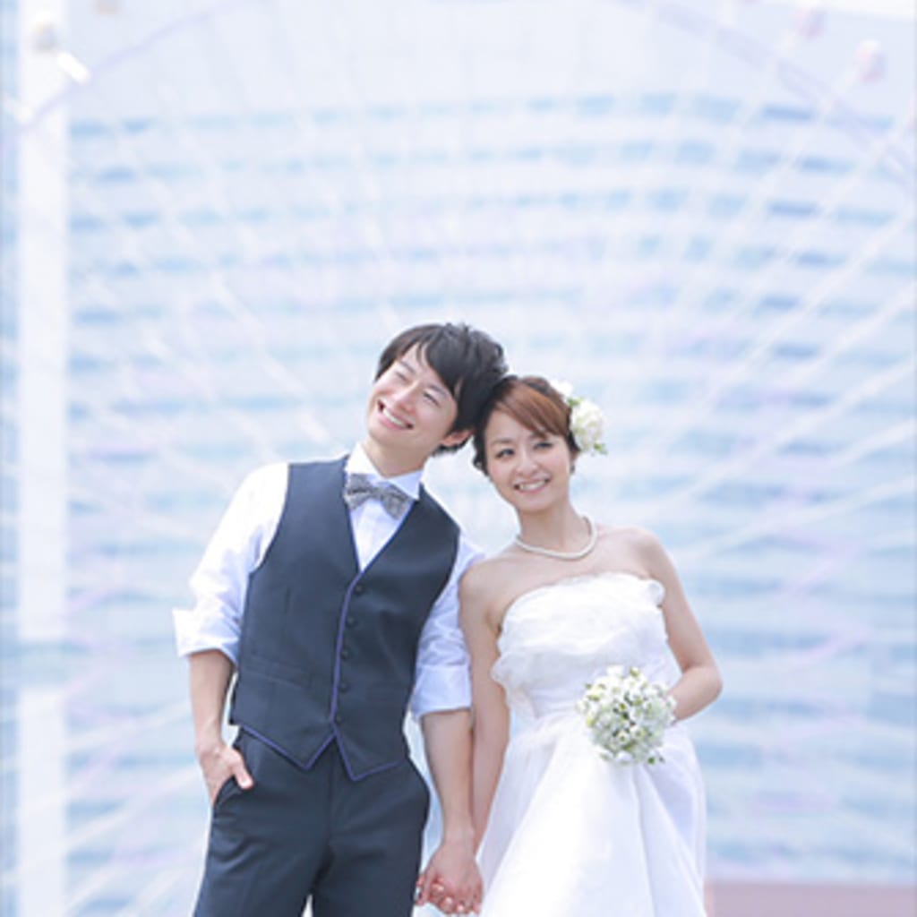 【横浜で記念日】汽笛が二人のスタートを祝う横浜のロケーションで美しい一枚を