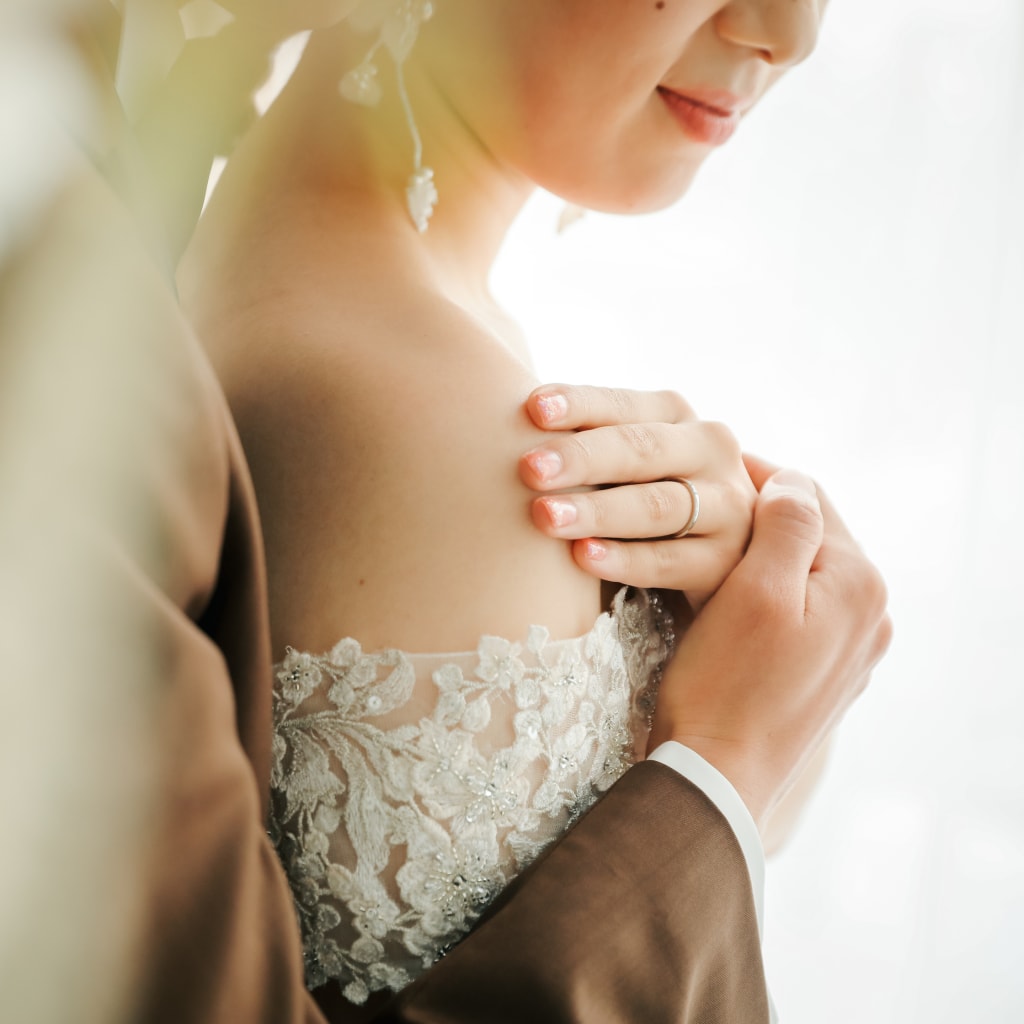ご新婦様の指にはきらりと光る指輪が。ネイルも優しいピンク色で、とても可愛らしかったです♡