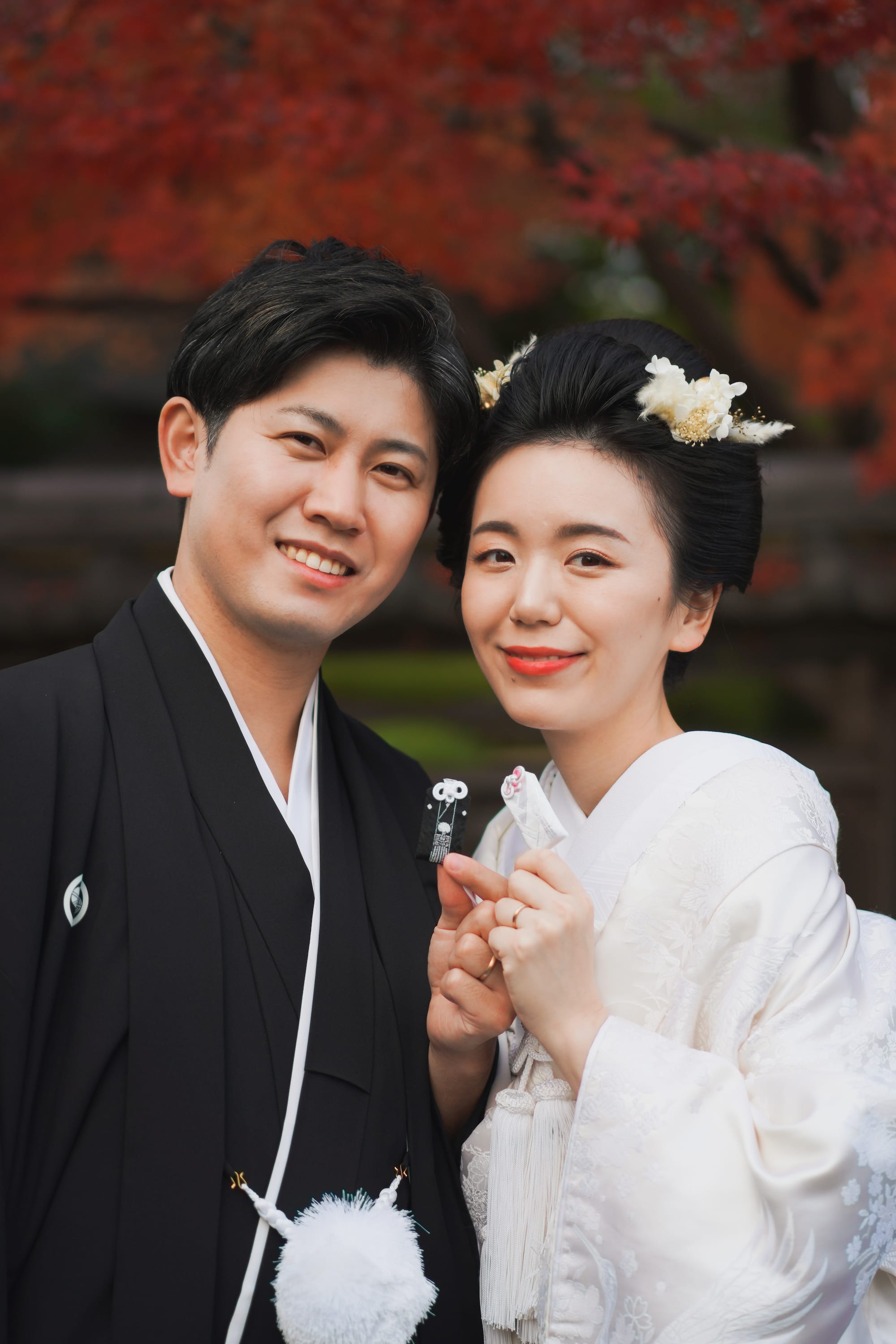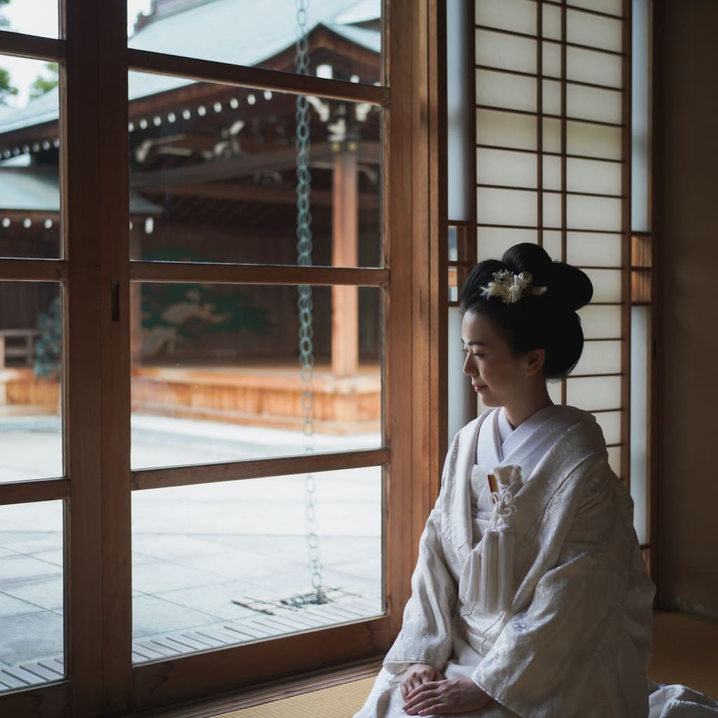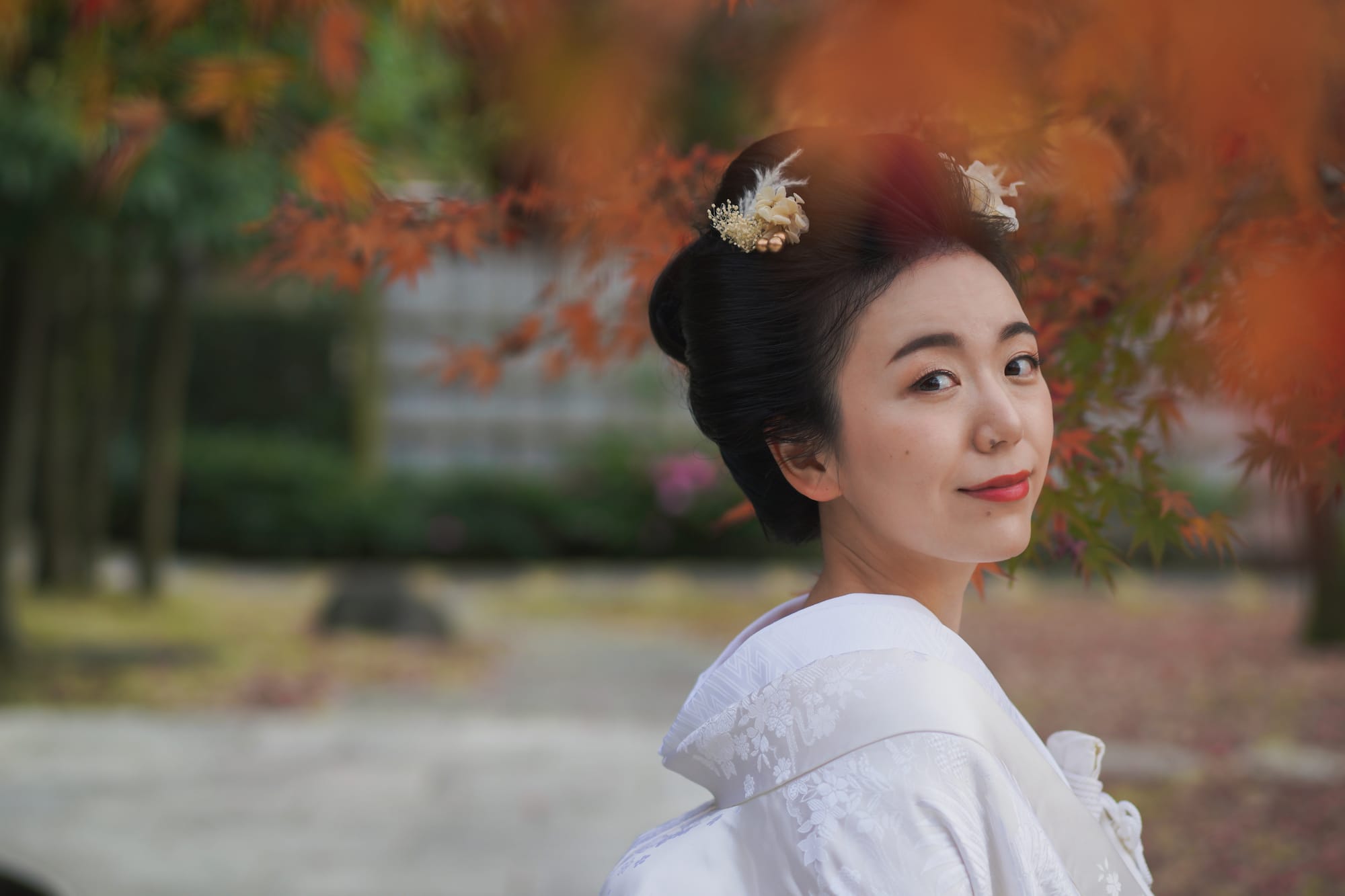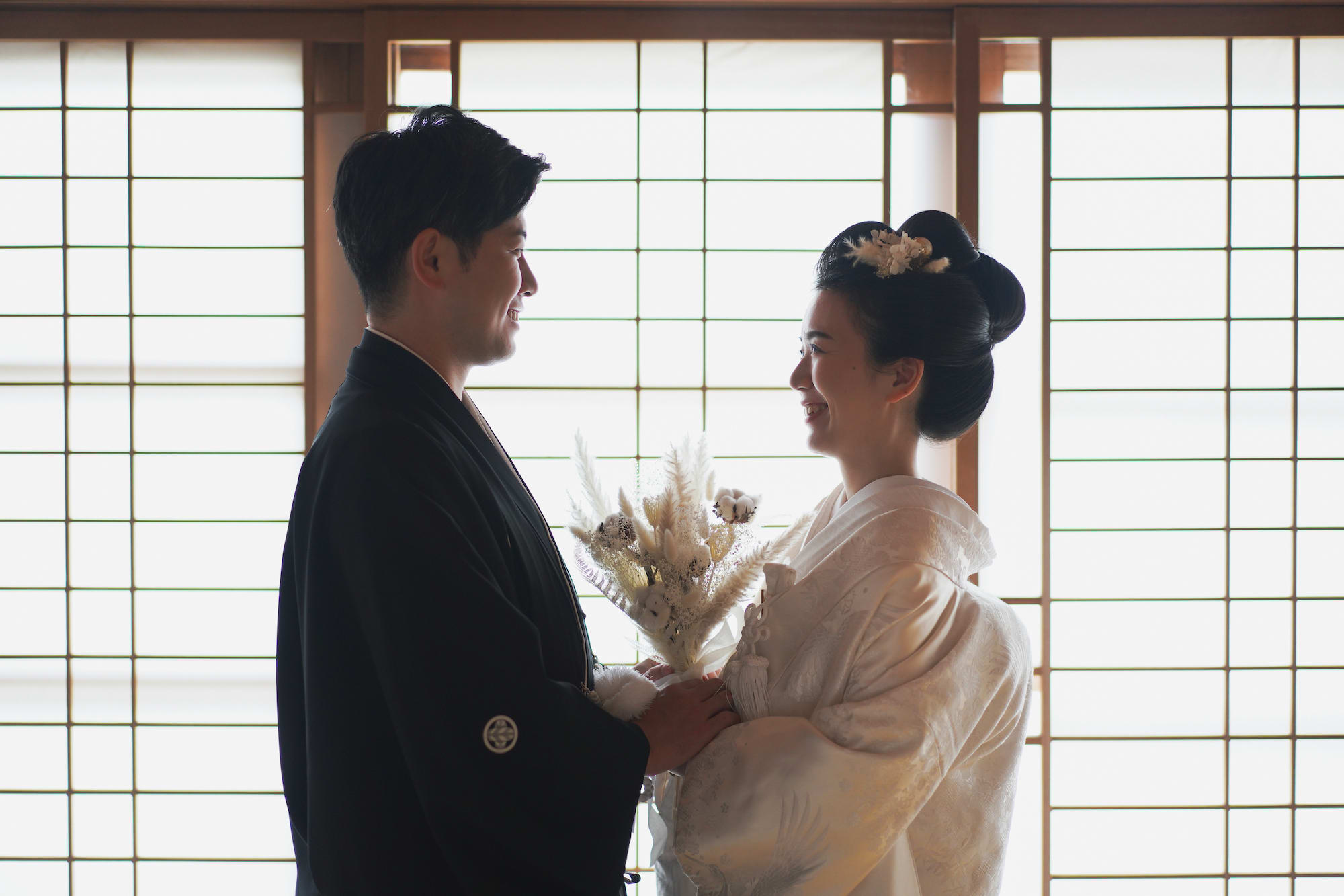 白無垢に日本髪を結って、ドライフラワーを髪飾りに。