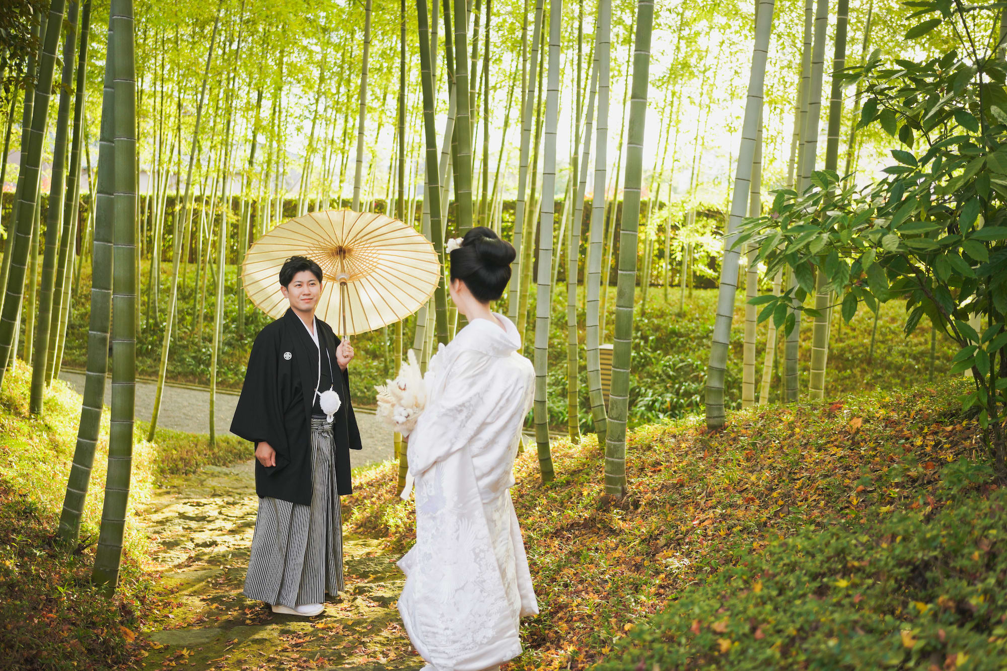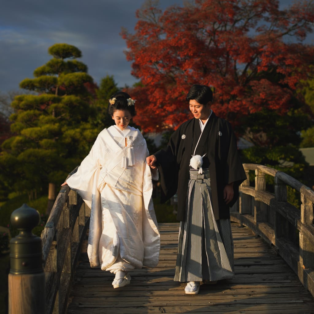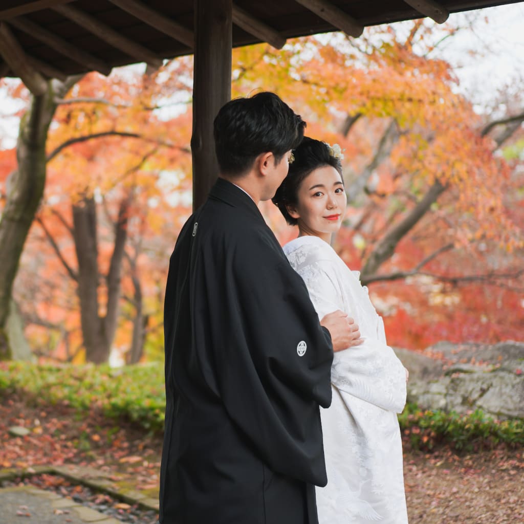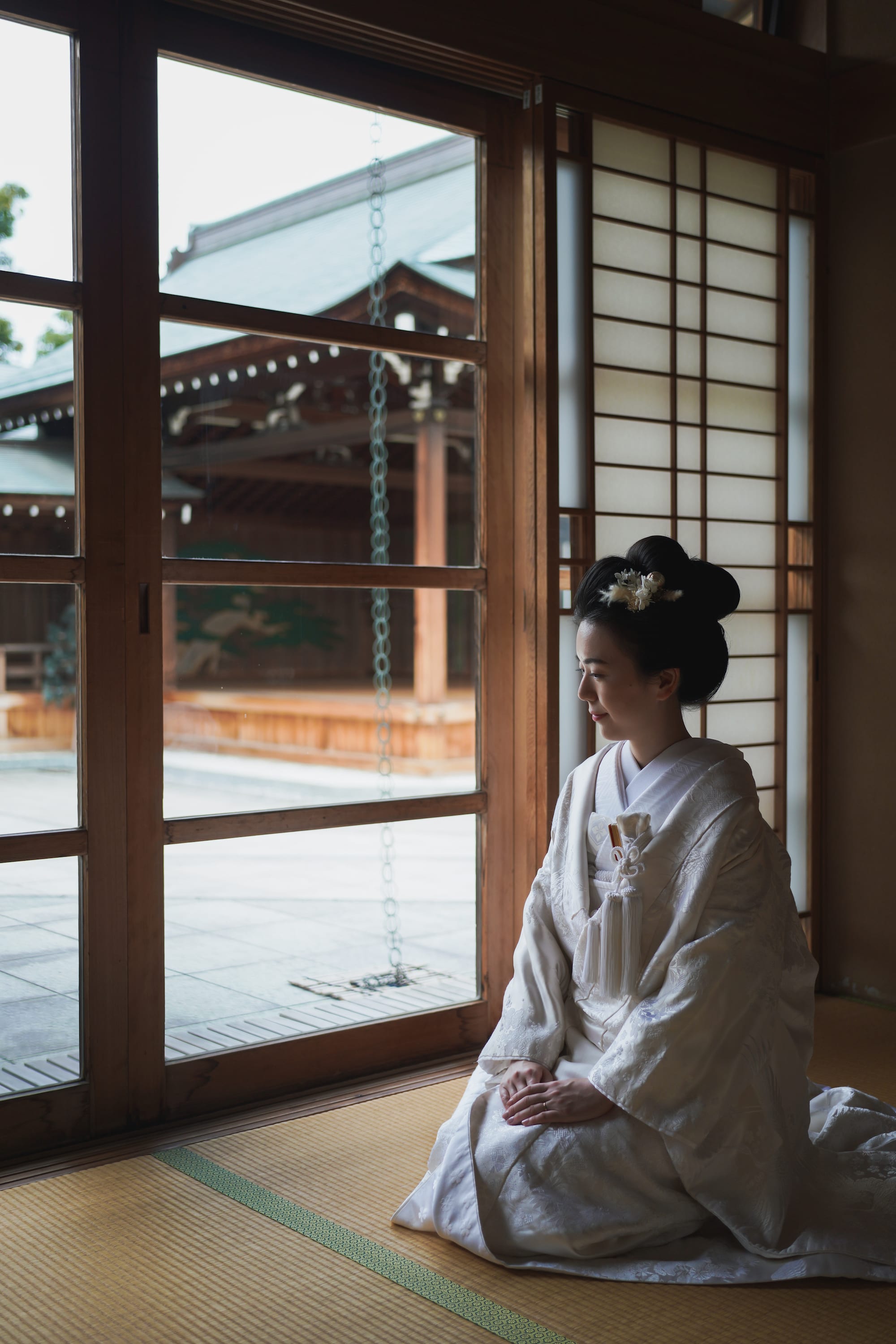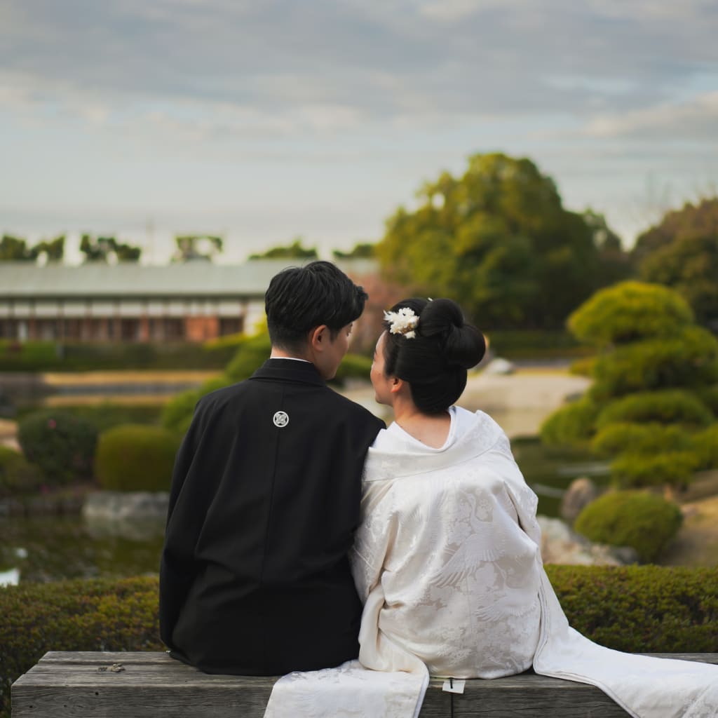 白無垢に日本髪を結って、ドライフラワーを髪飾りに。