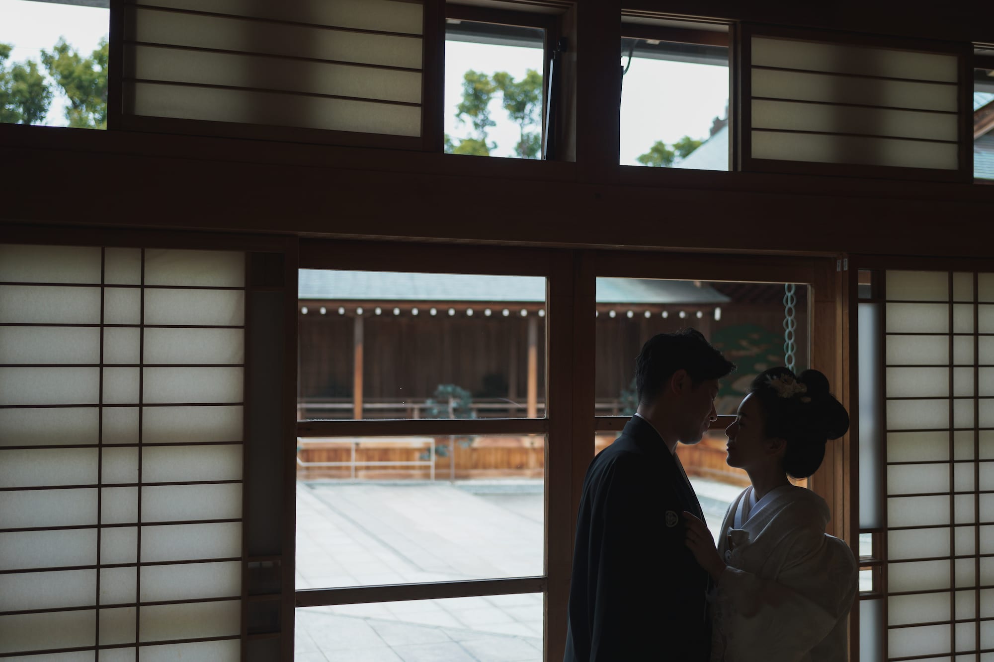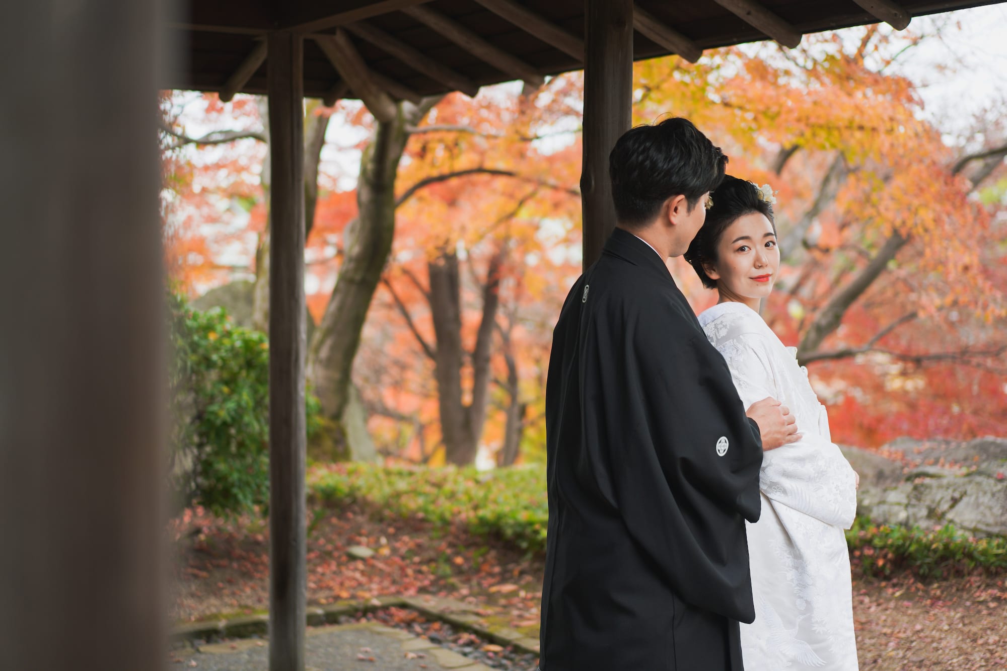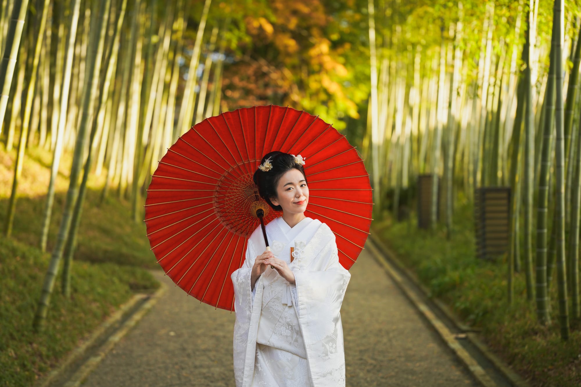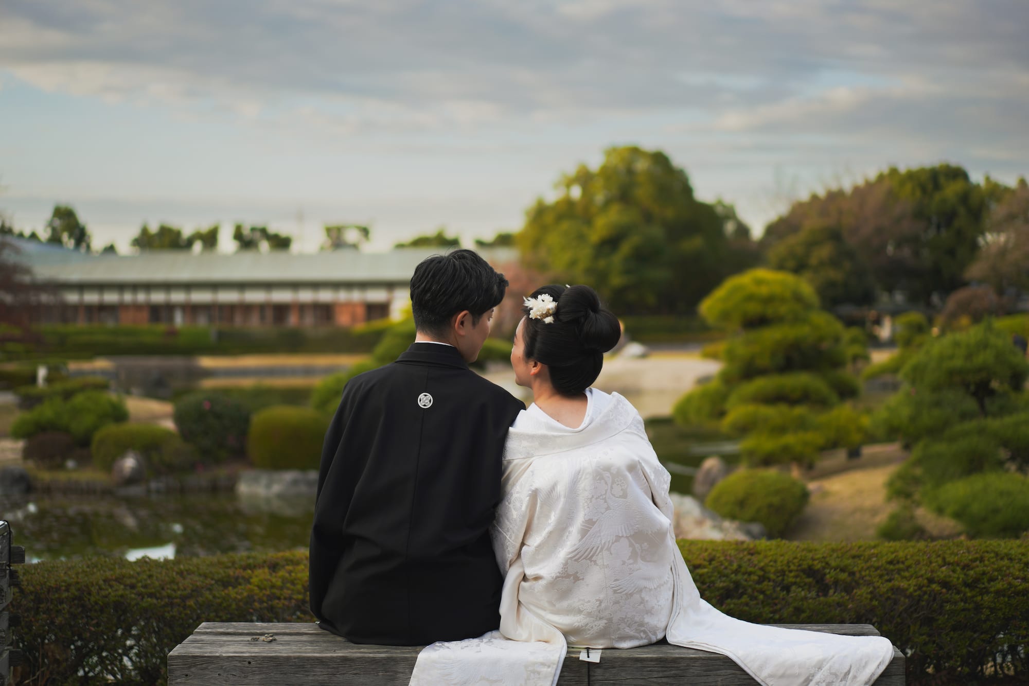 白無垢に日本髪を結って、ドライフラワーを髪飾りに。