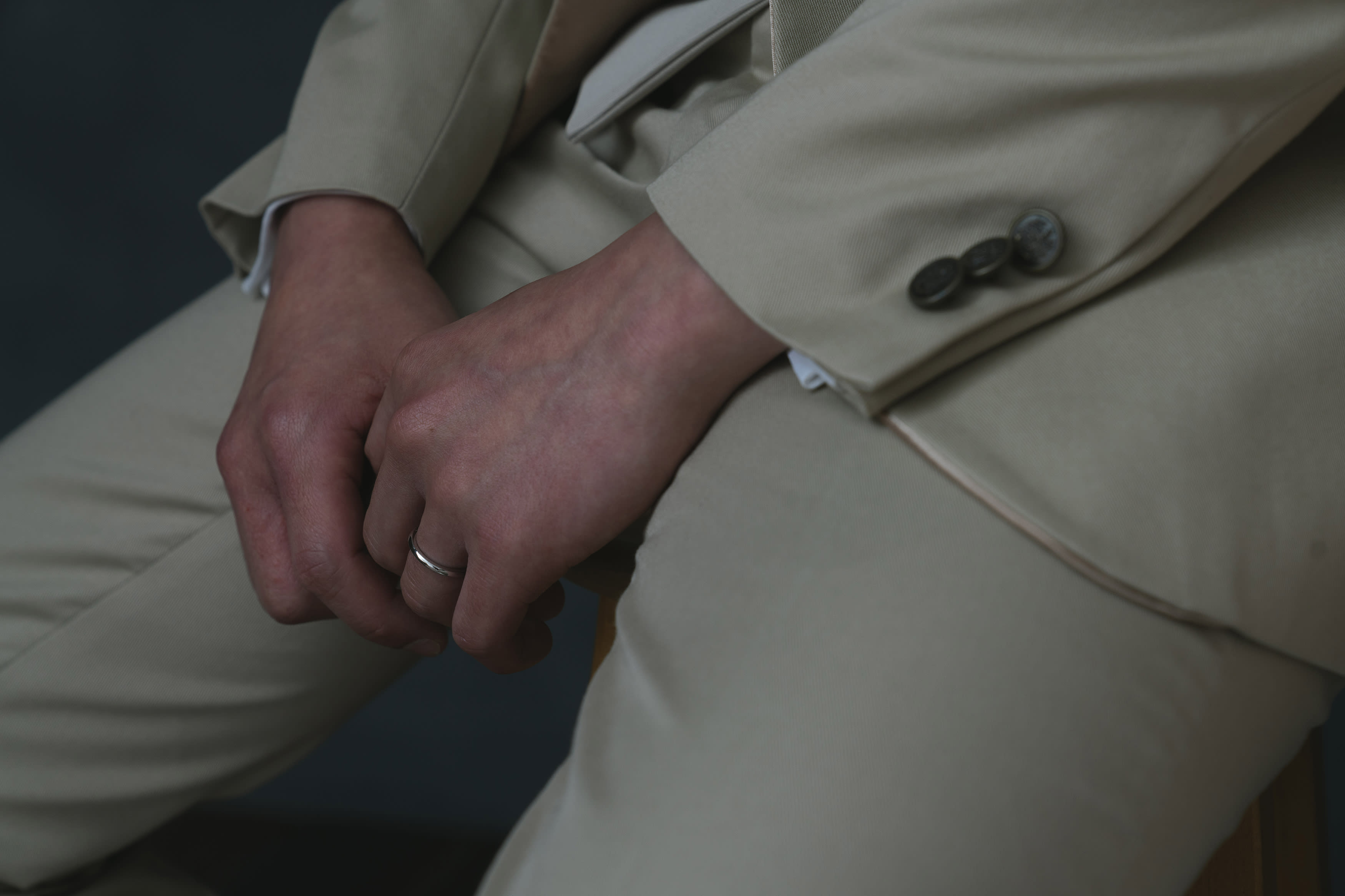 洋装に着替えて撮っていきます!まずは窓の前に座ってお話をしていただきました!