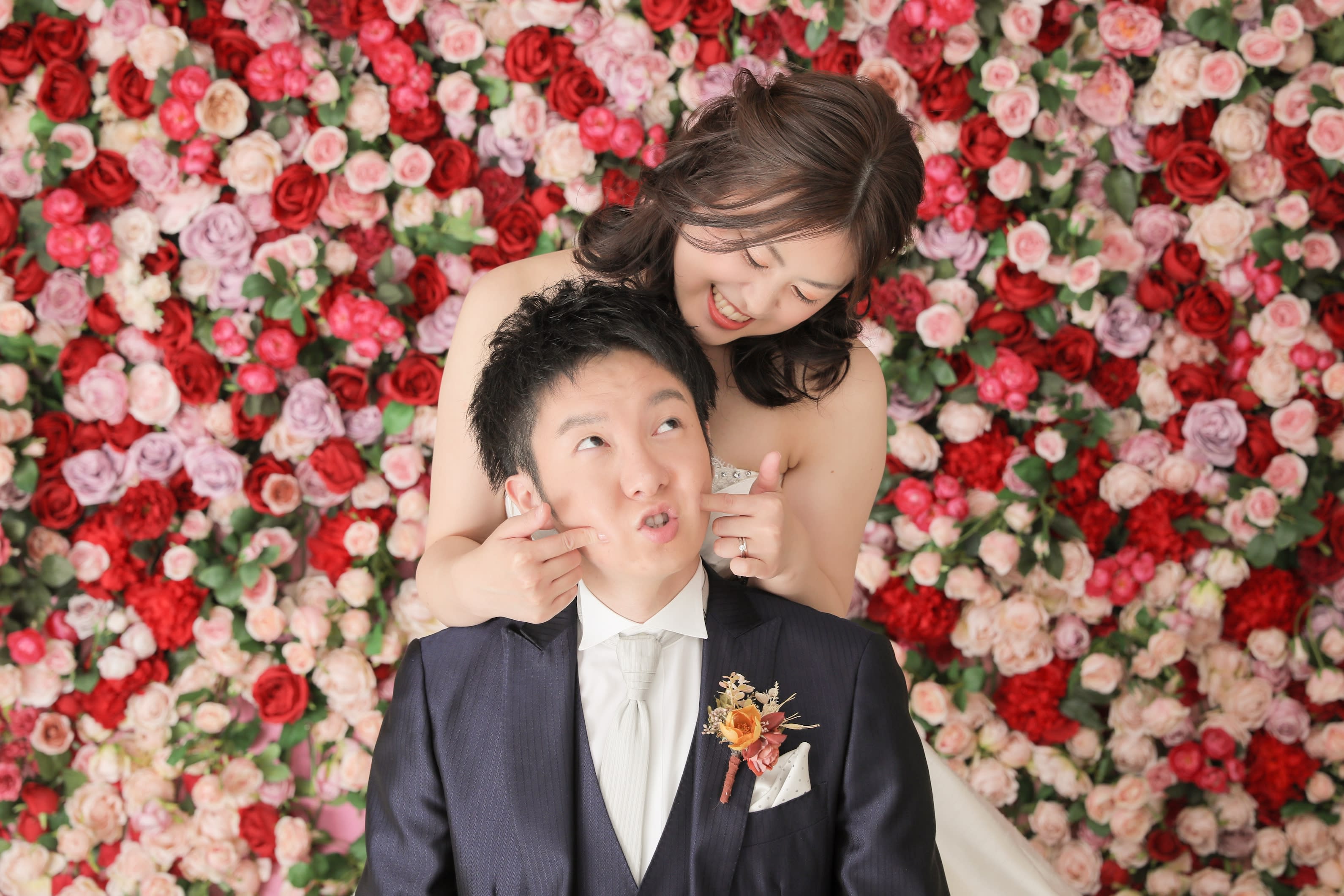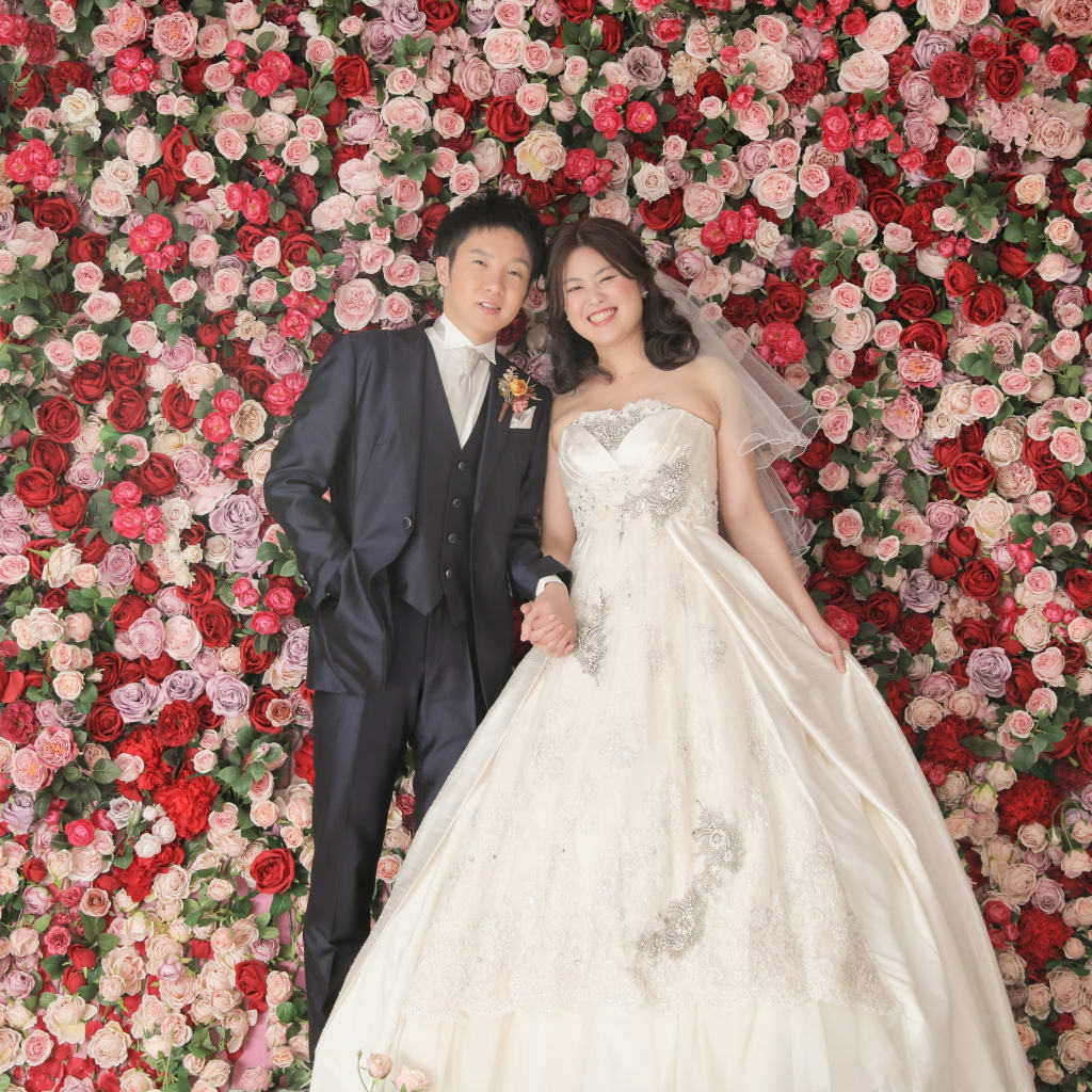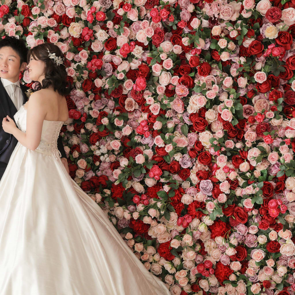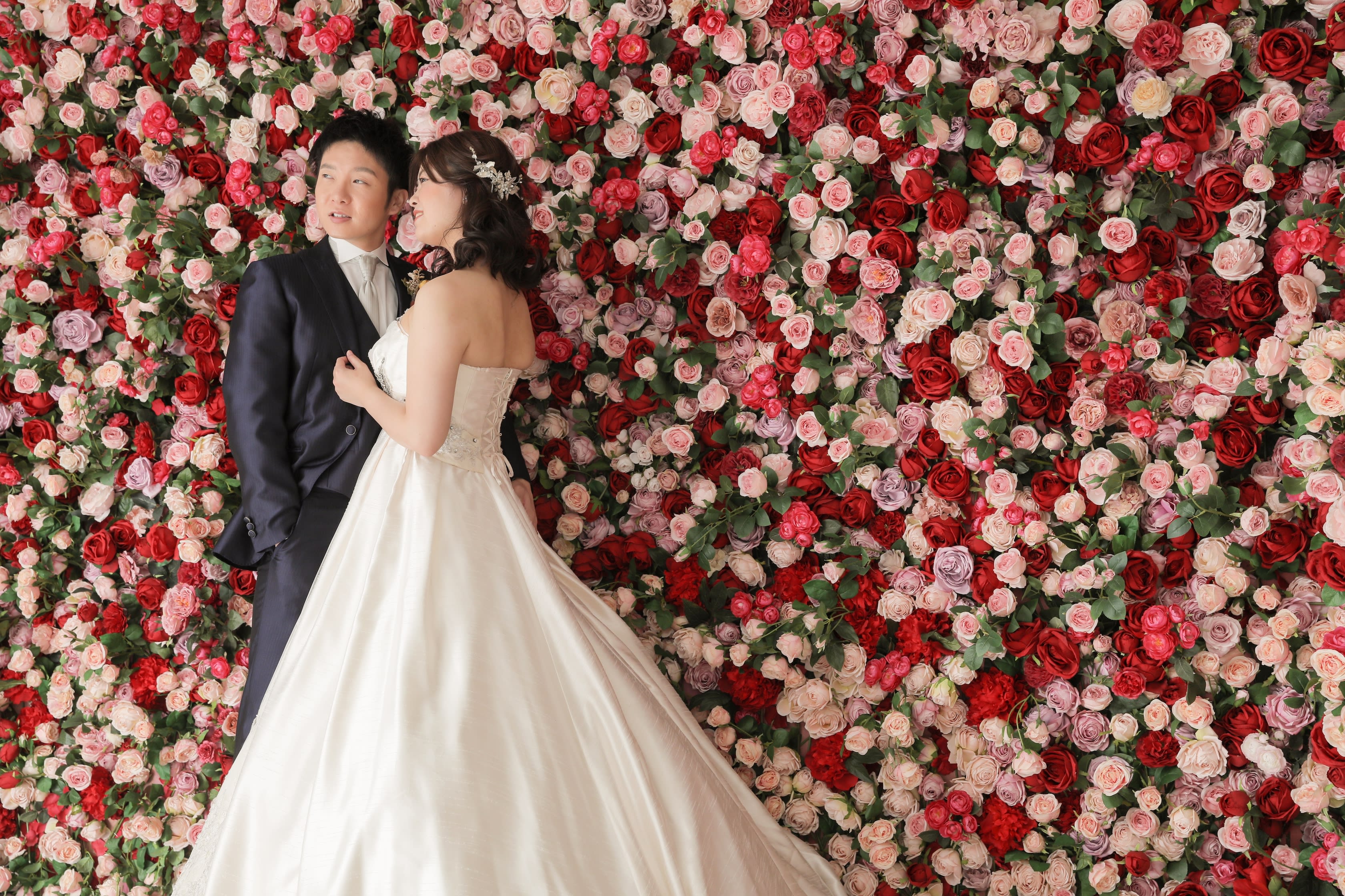 一面お花の壁が登場!新宿店ハウススタジオで撮影する洋装ウェディングフォトプラン