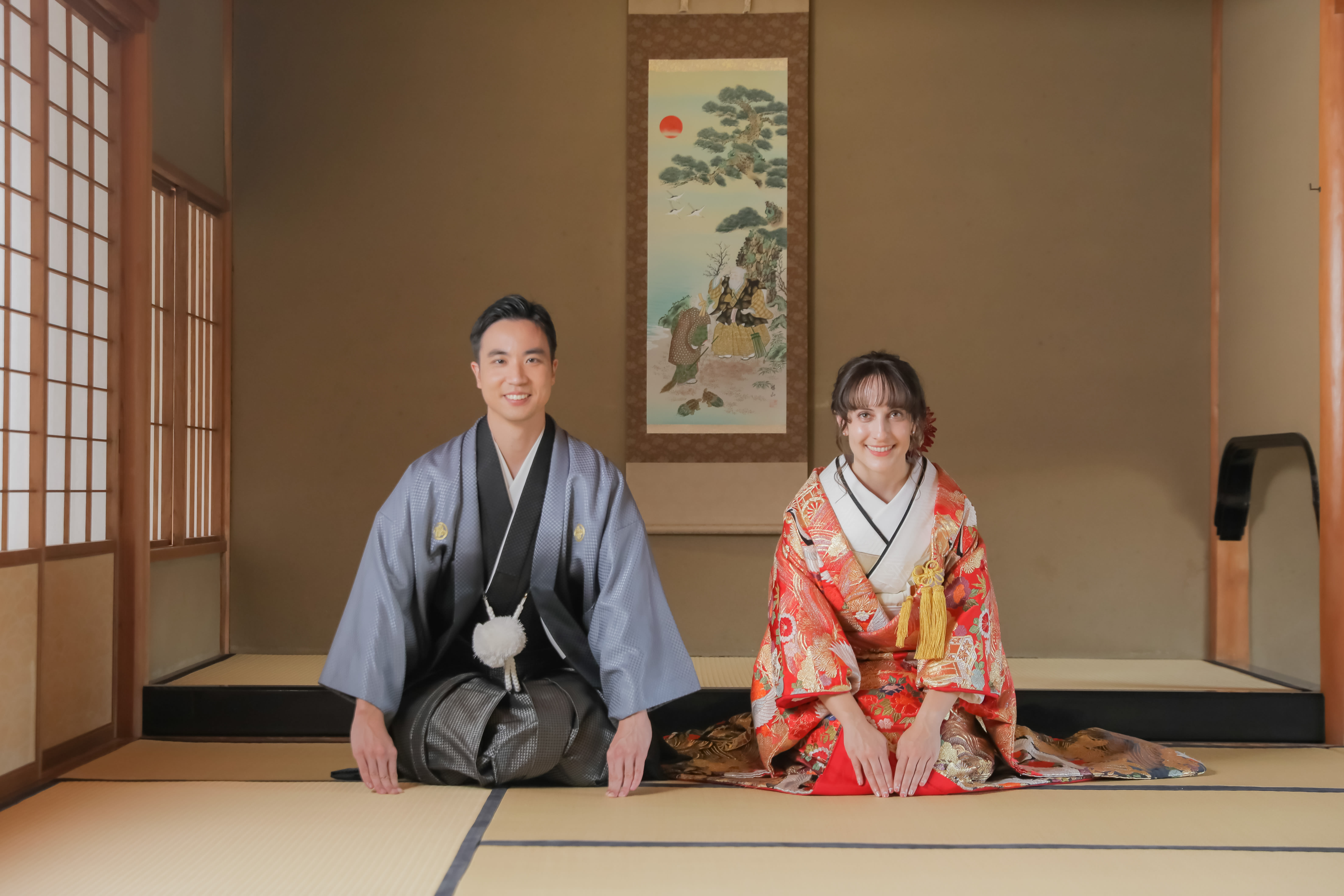 和装の定番といえば、 正座ですよね!!おふたりとも決まってます!