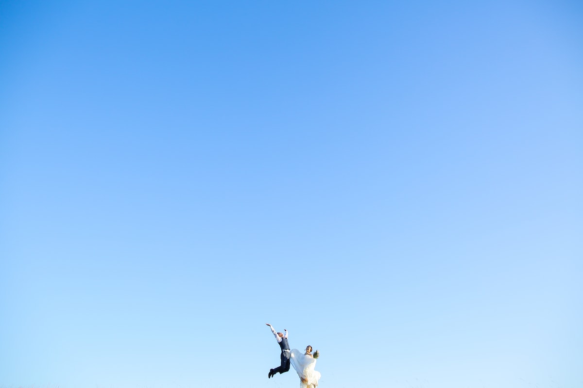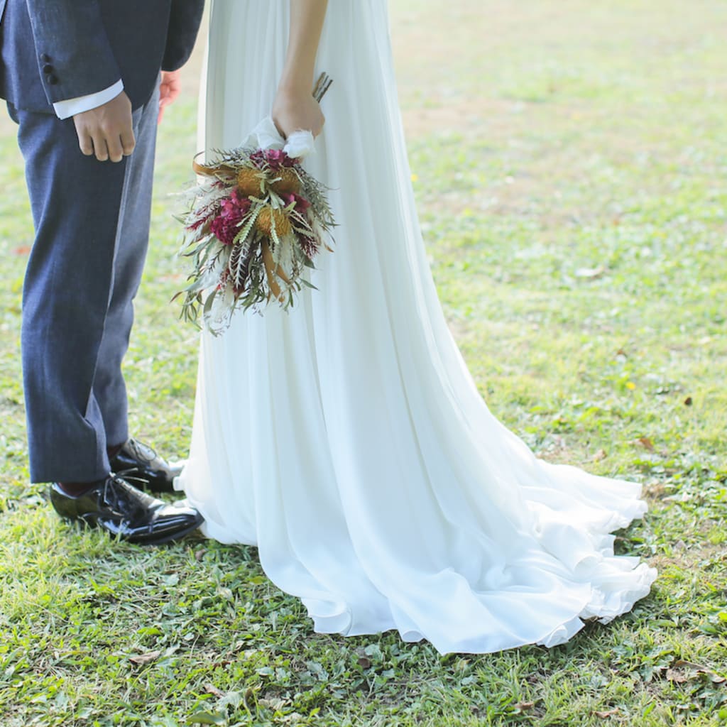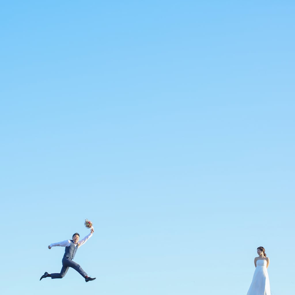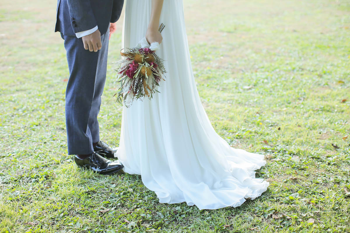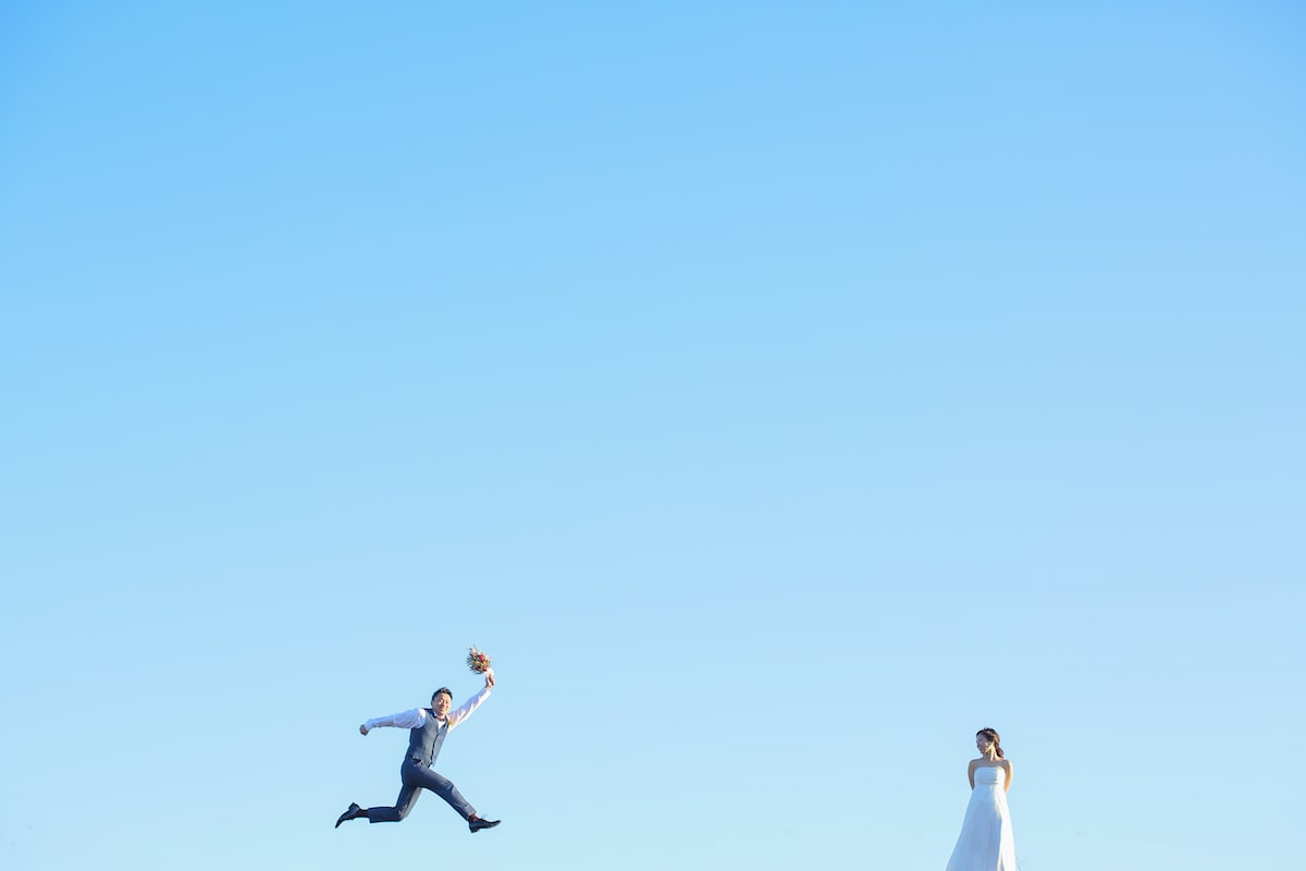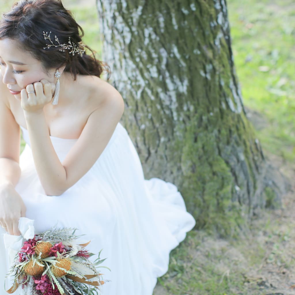 庄内川に面する緑あふれる公園で、自然体のおふたりを映す。