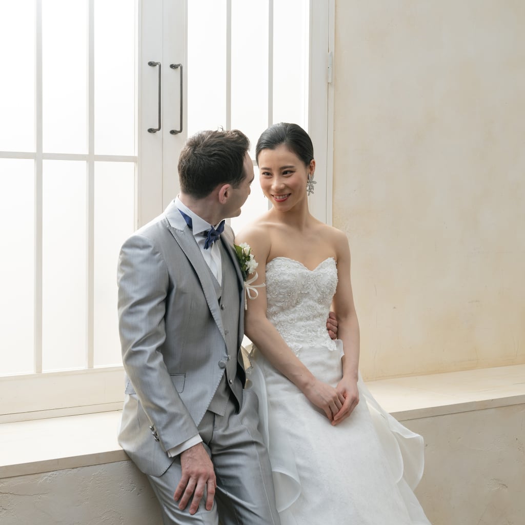 見つめ合うお二人のショットです!照れた笑顔がとても素敵です!